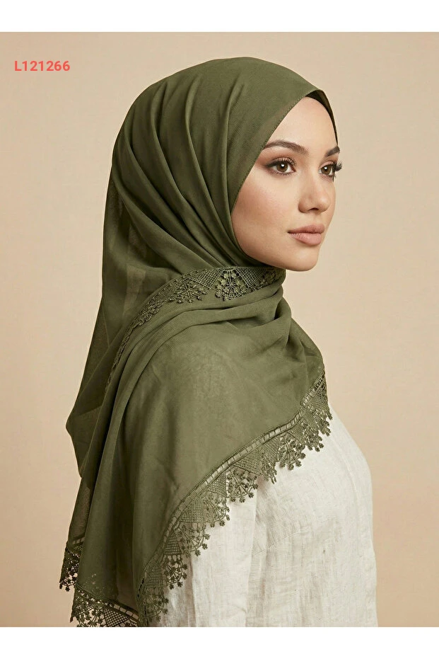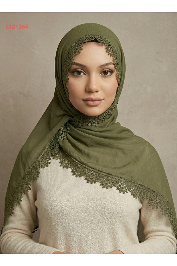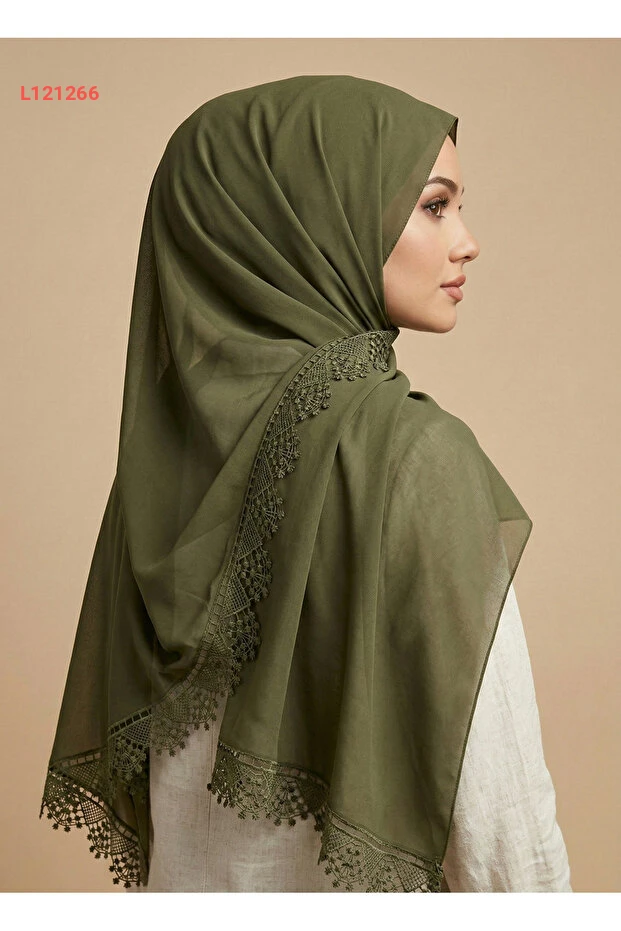 Paciqa Kadın Şifon Dantelli İğne Oyalı Mevlüt Örtüsü Abiye Şal 70x150