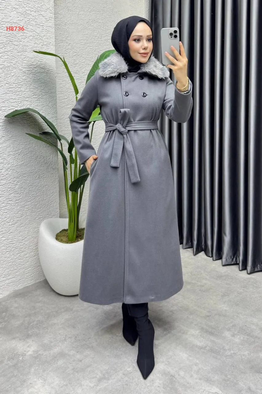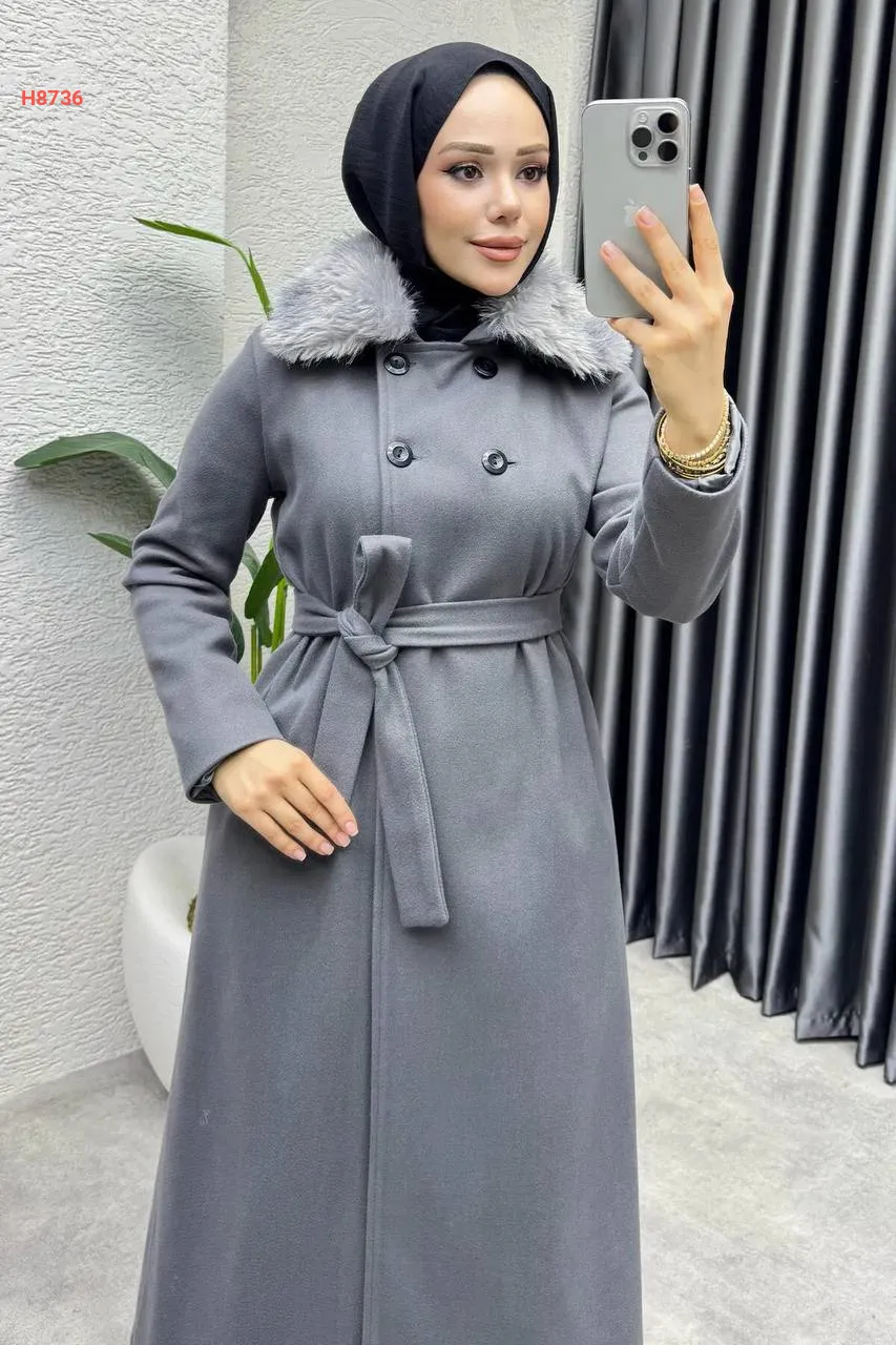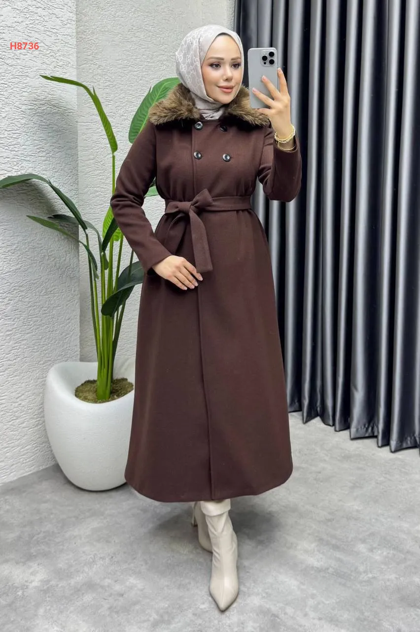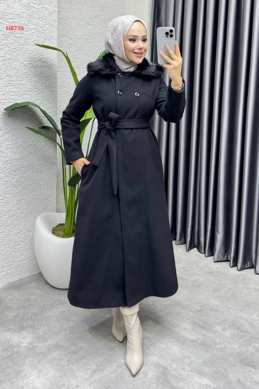 مانطو جوخ مبطن مع ياقة فرو محجبات