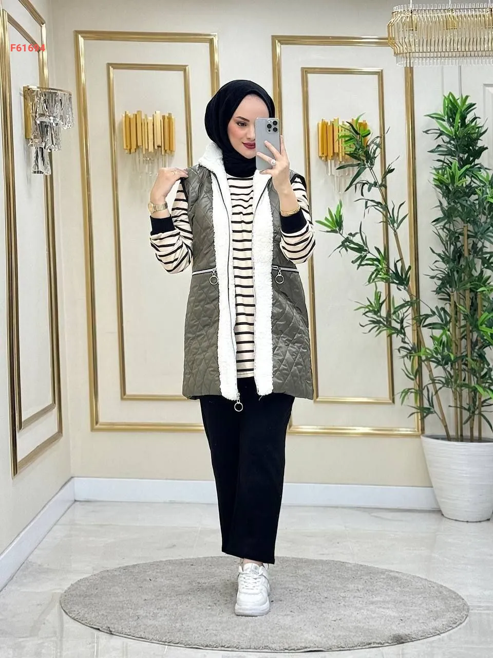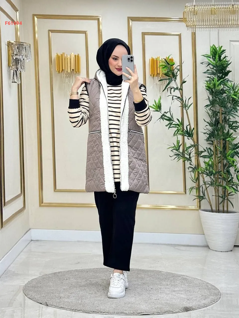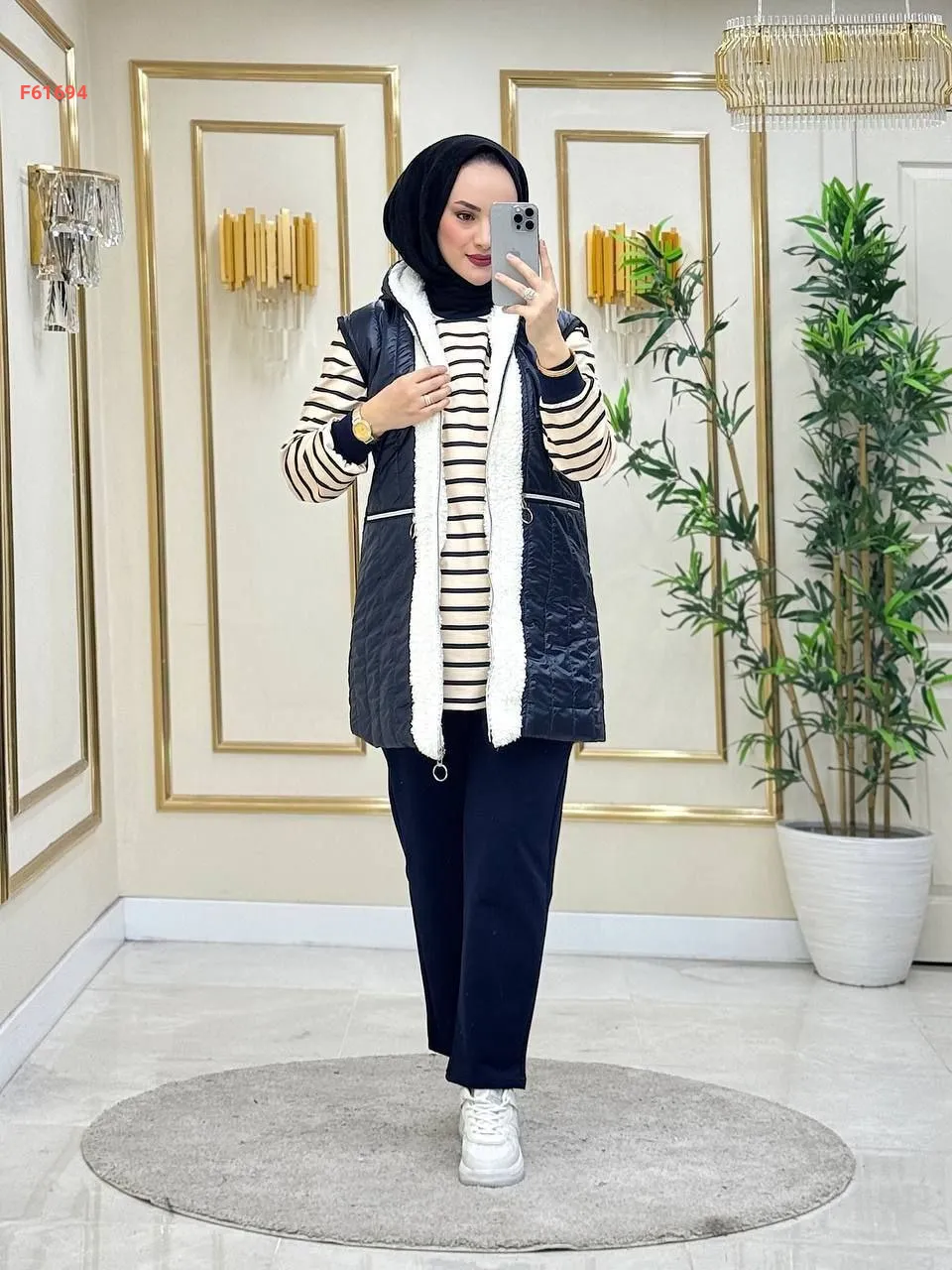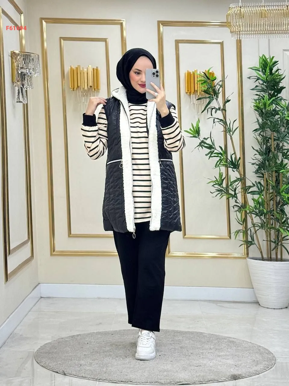 طقم بيجامة ثلاث قطع فيست مع طاقية فرو