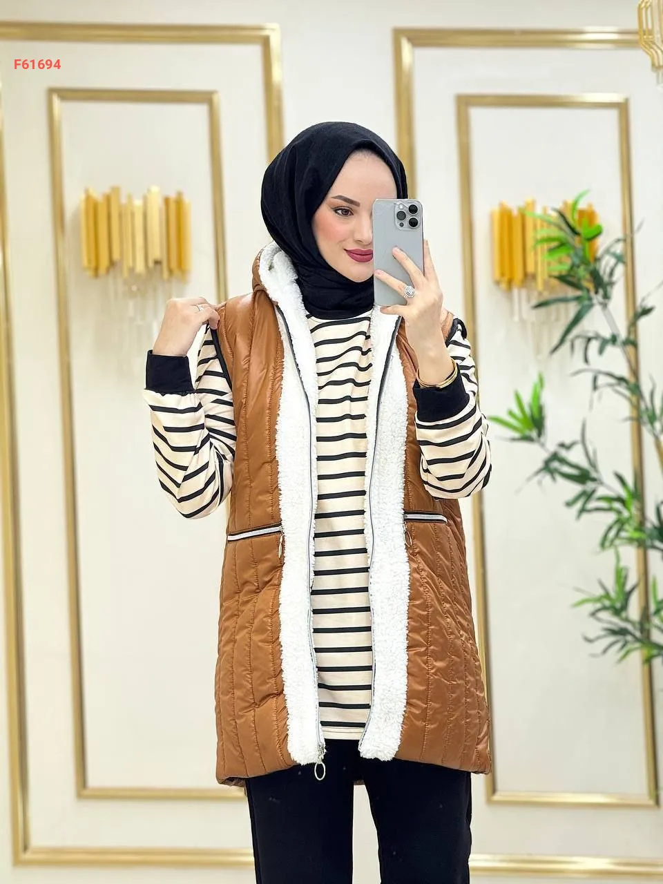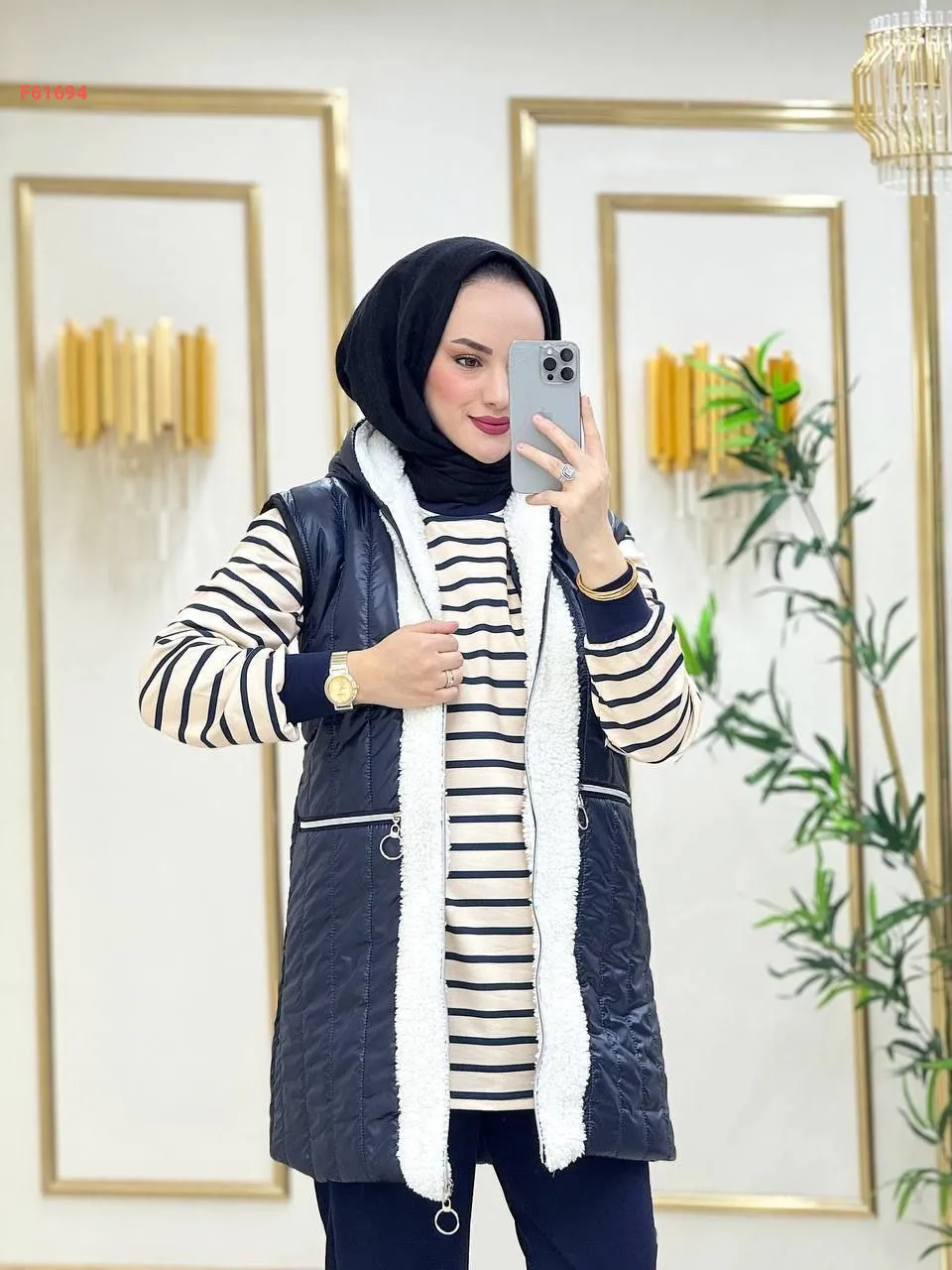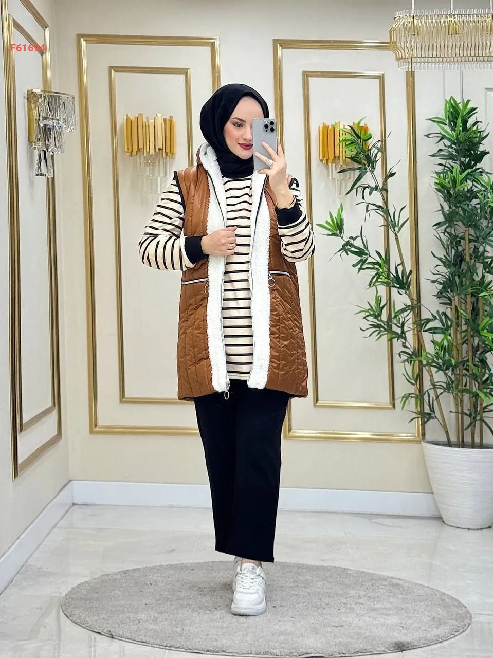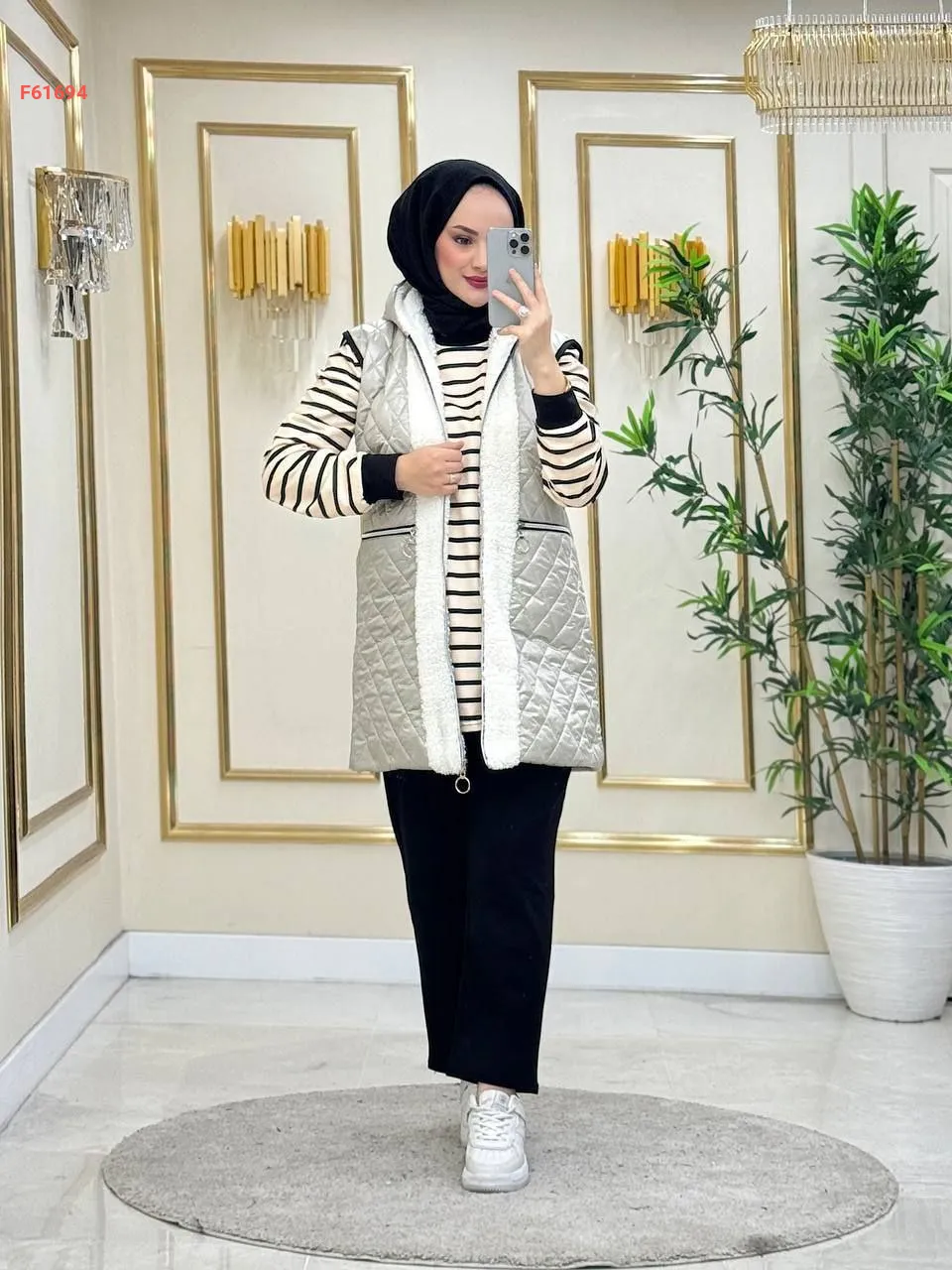 طقم بيجامة ثلاث قطع فيست مع طاقية فرو