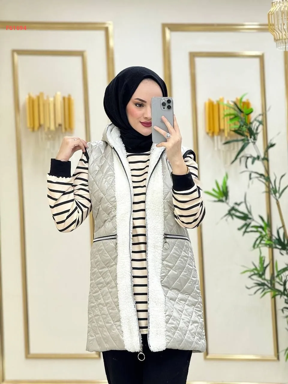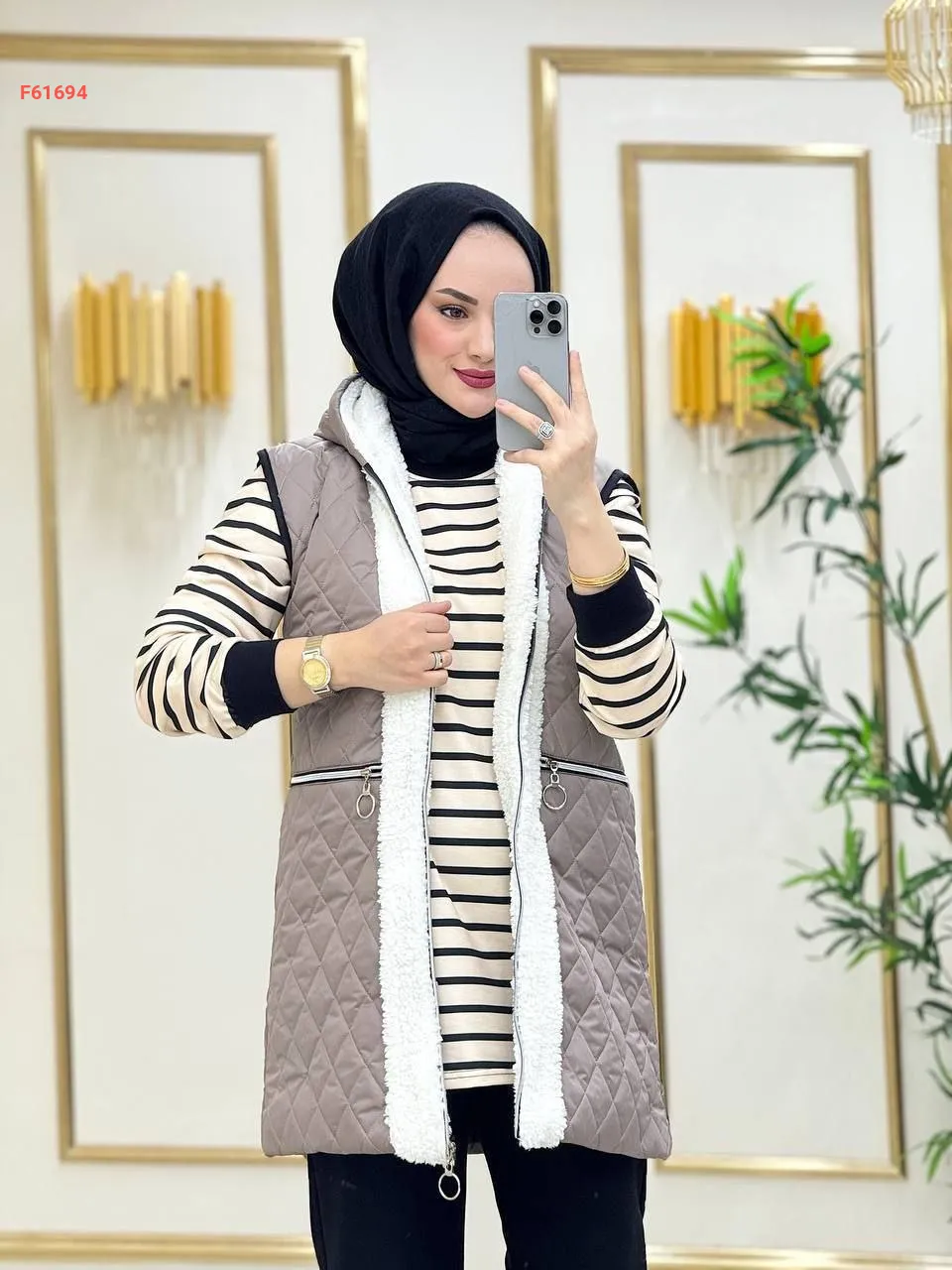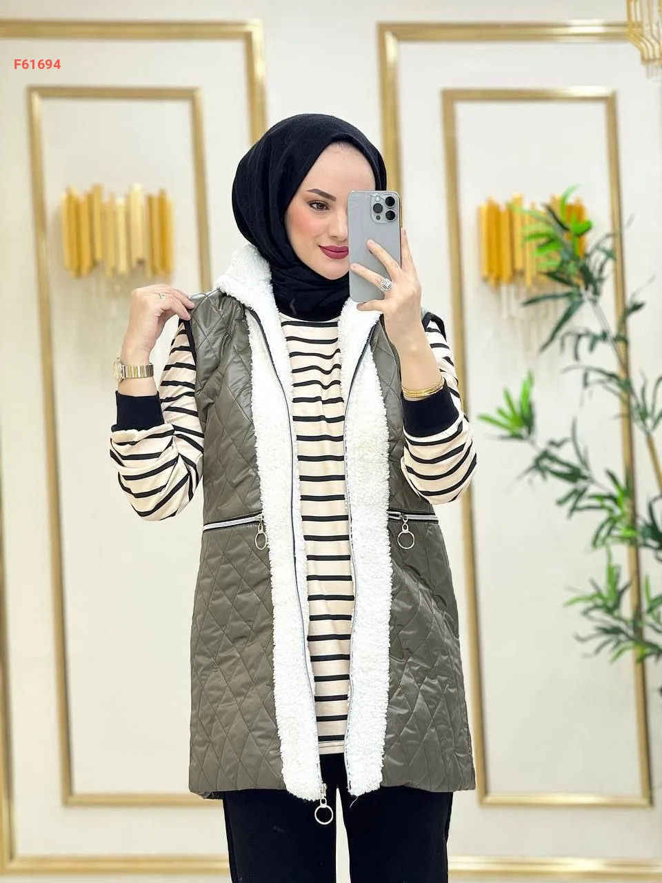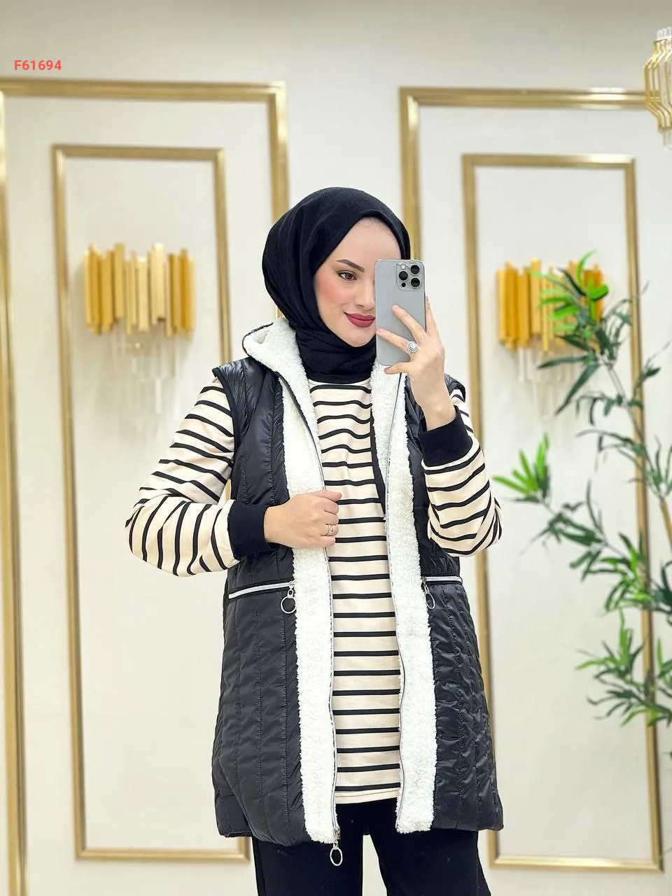 طقم بيجامة ثلاث قطع فيست مع طاقية فرو