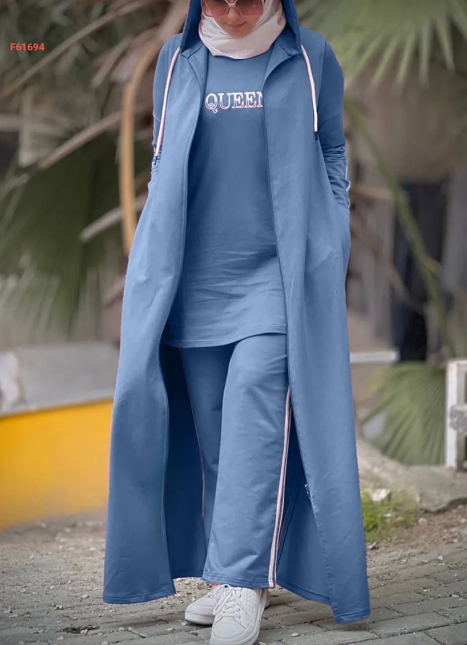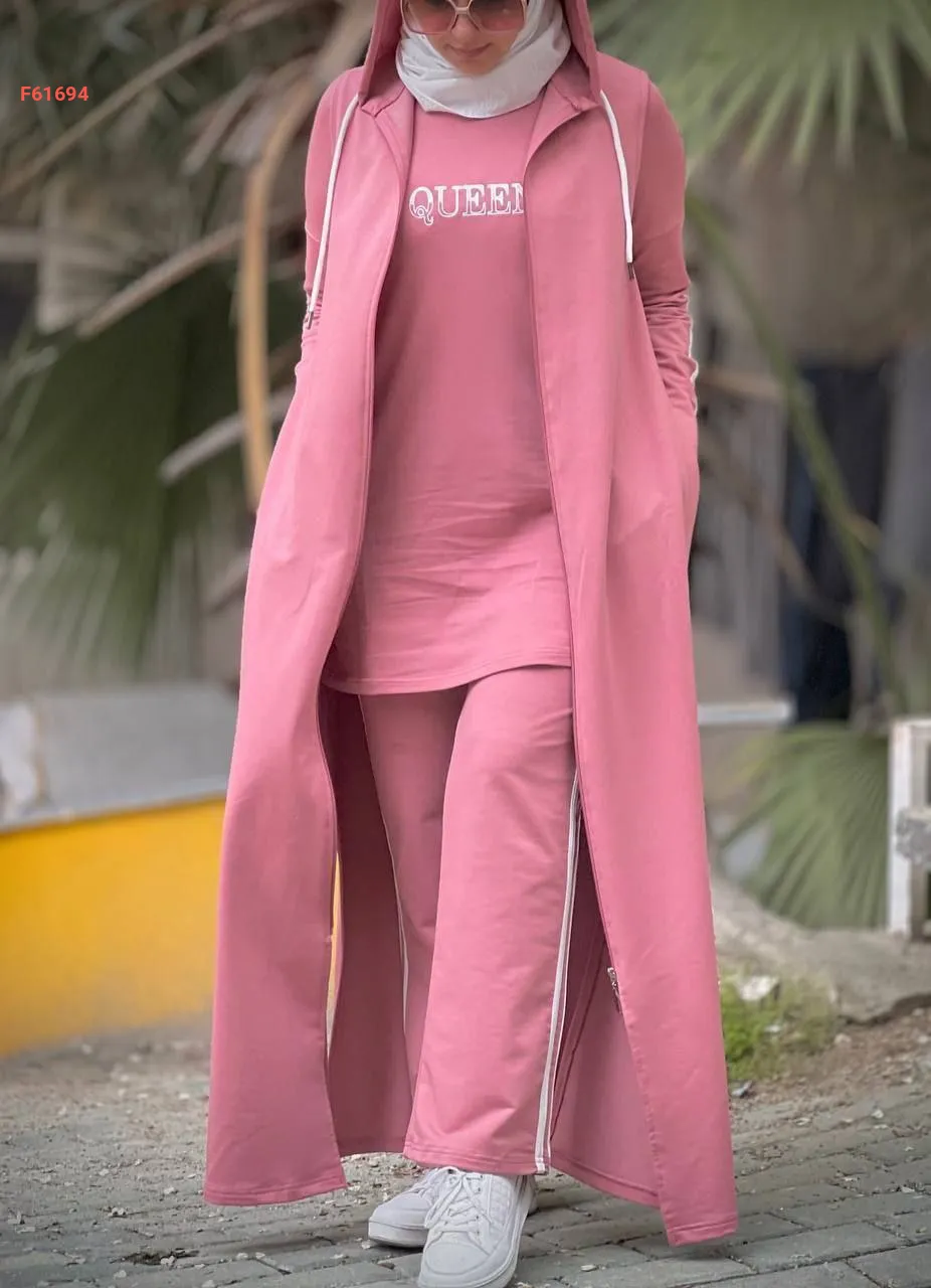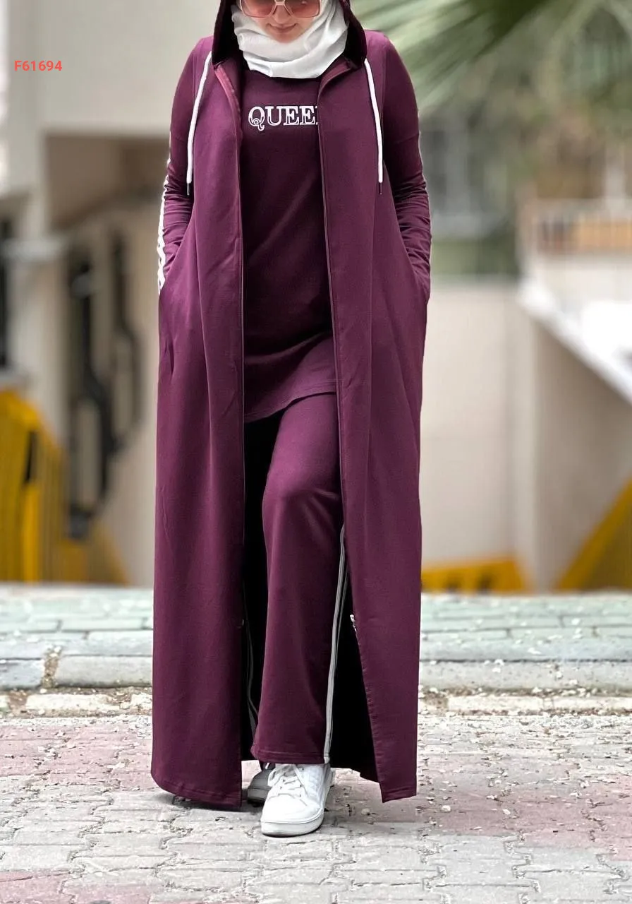 بيجامة 3قطع مع مانطو بسحاب