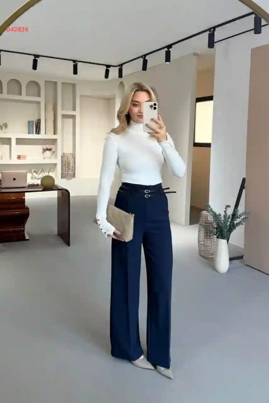بنطال بالازو واسع بجيب وحزام