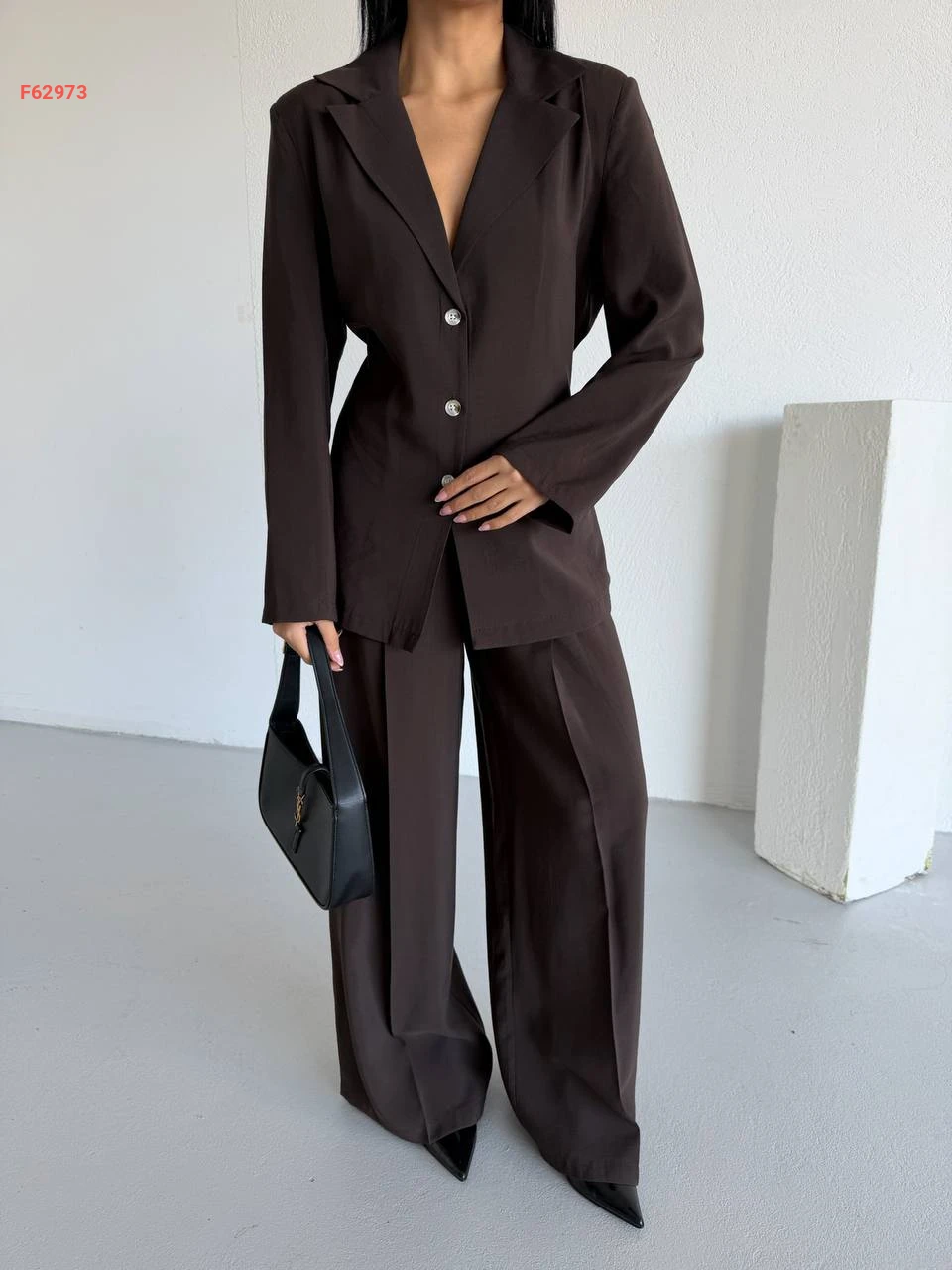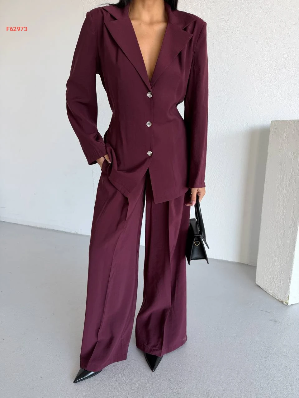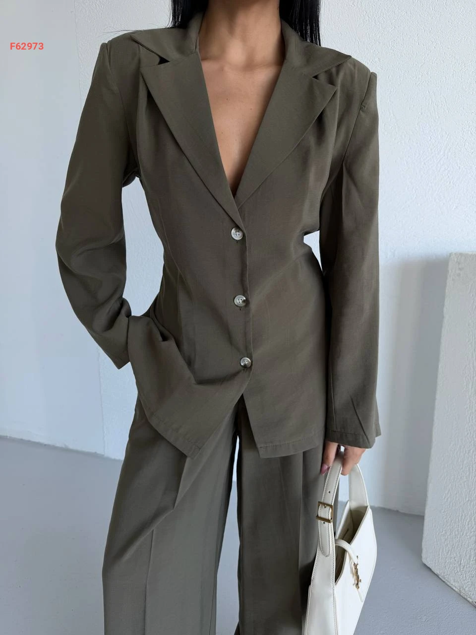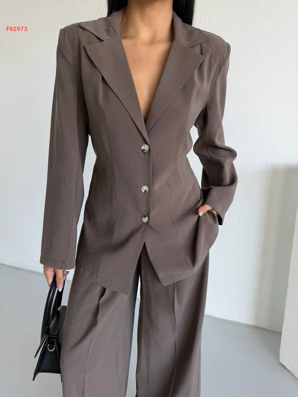 طقم بنطال وبليزر مخصر بزنار خلفي