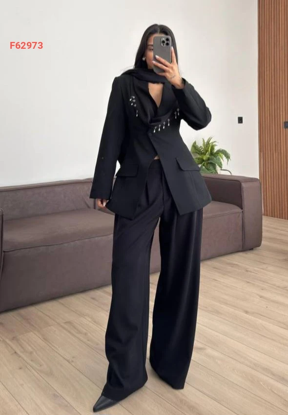 طقم بنطال وبليزر مع وشاح