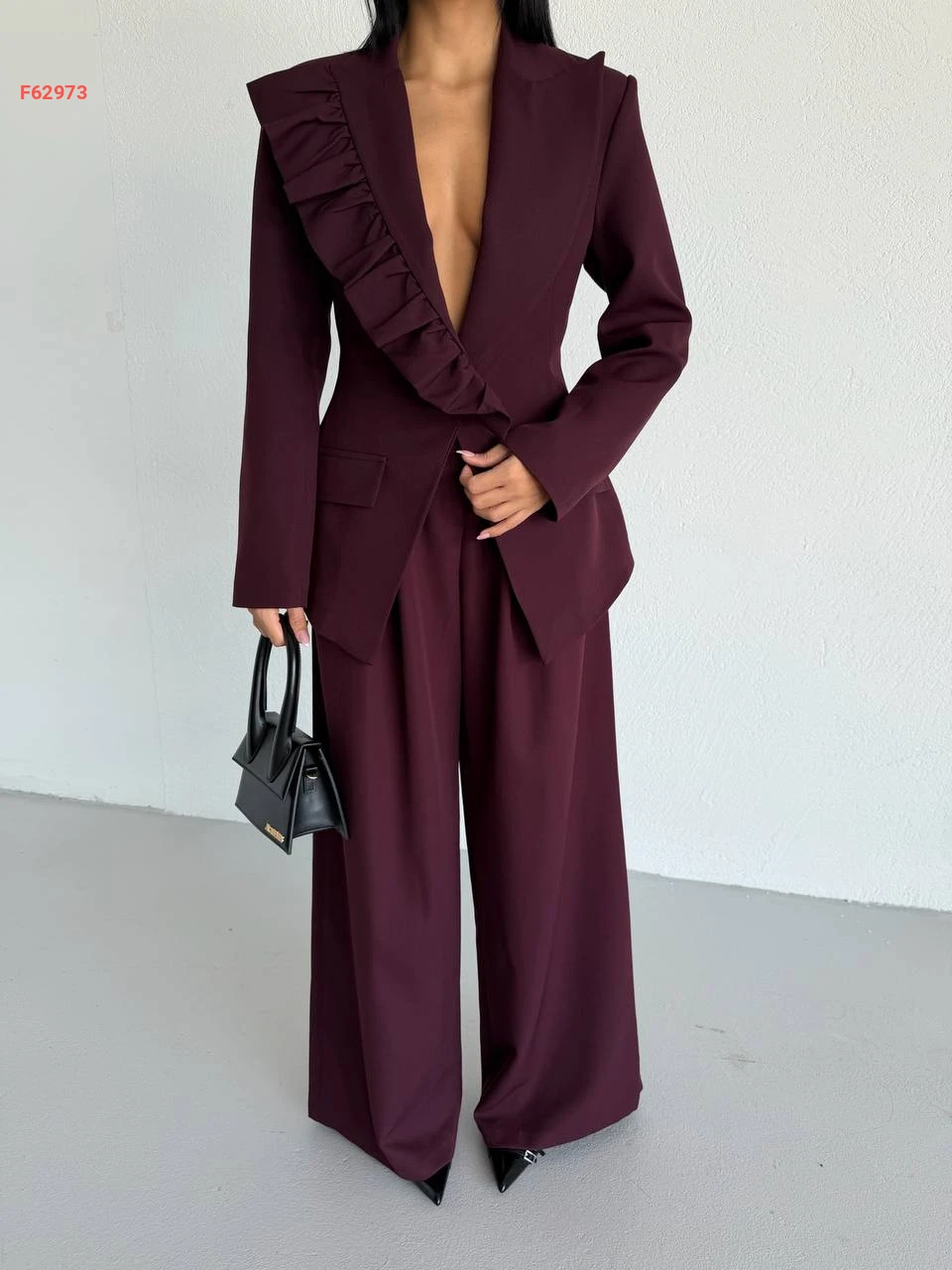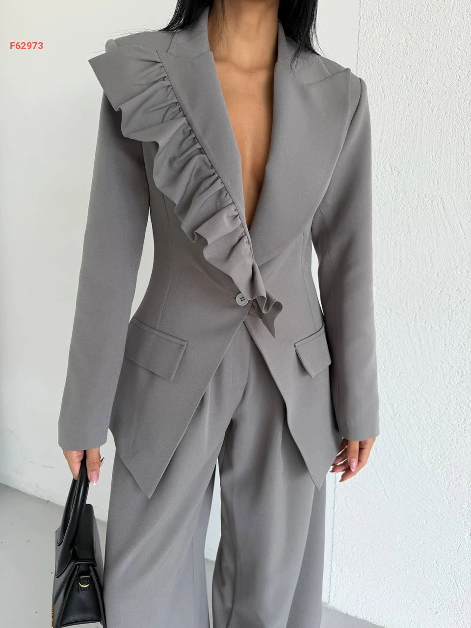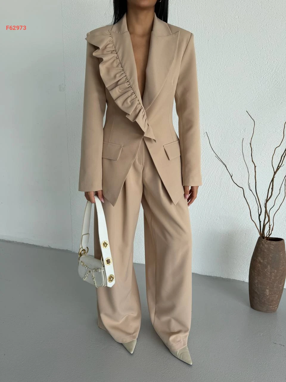 طقم بنطال وبليزر بتفاصيل كشكش