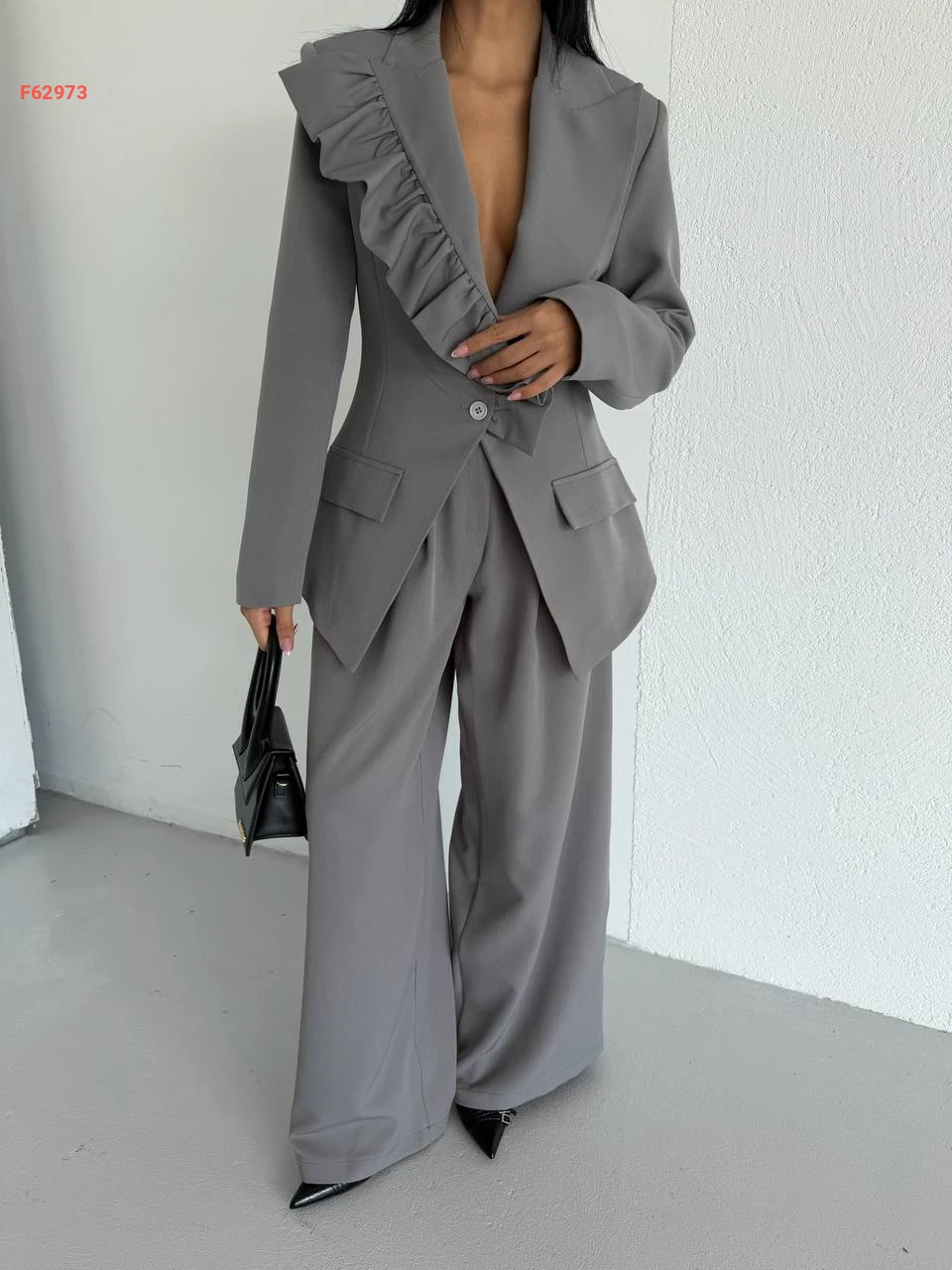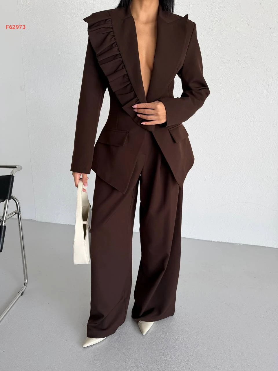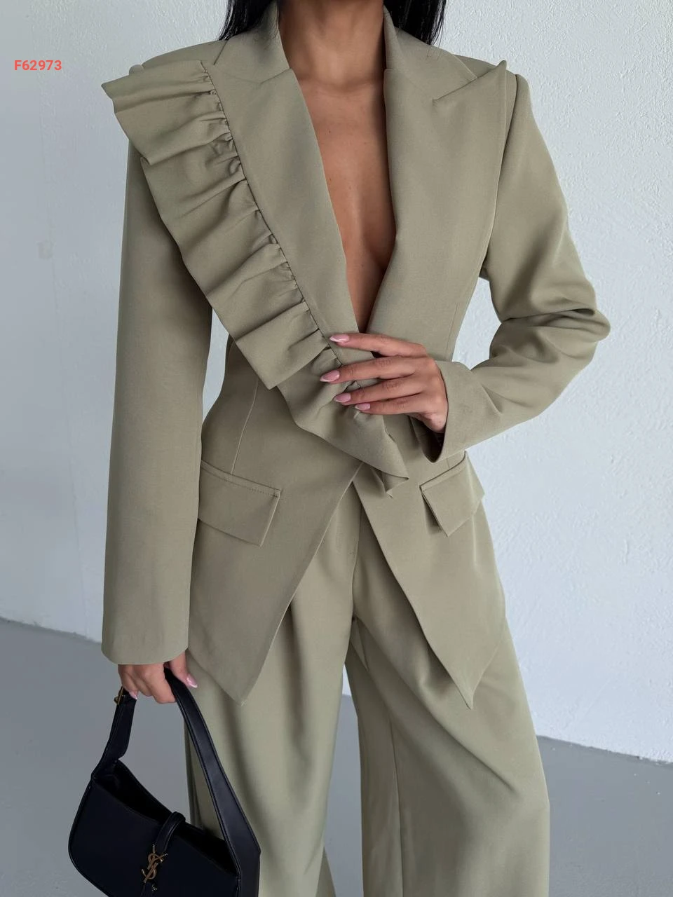 طقم بنطال وبليزر بتفاصيل كشكش