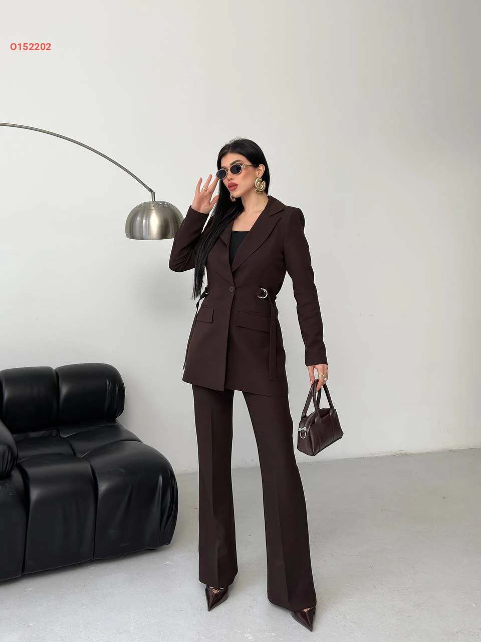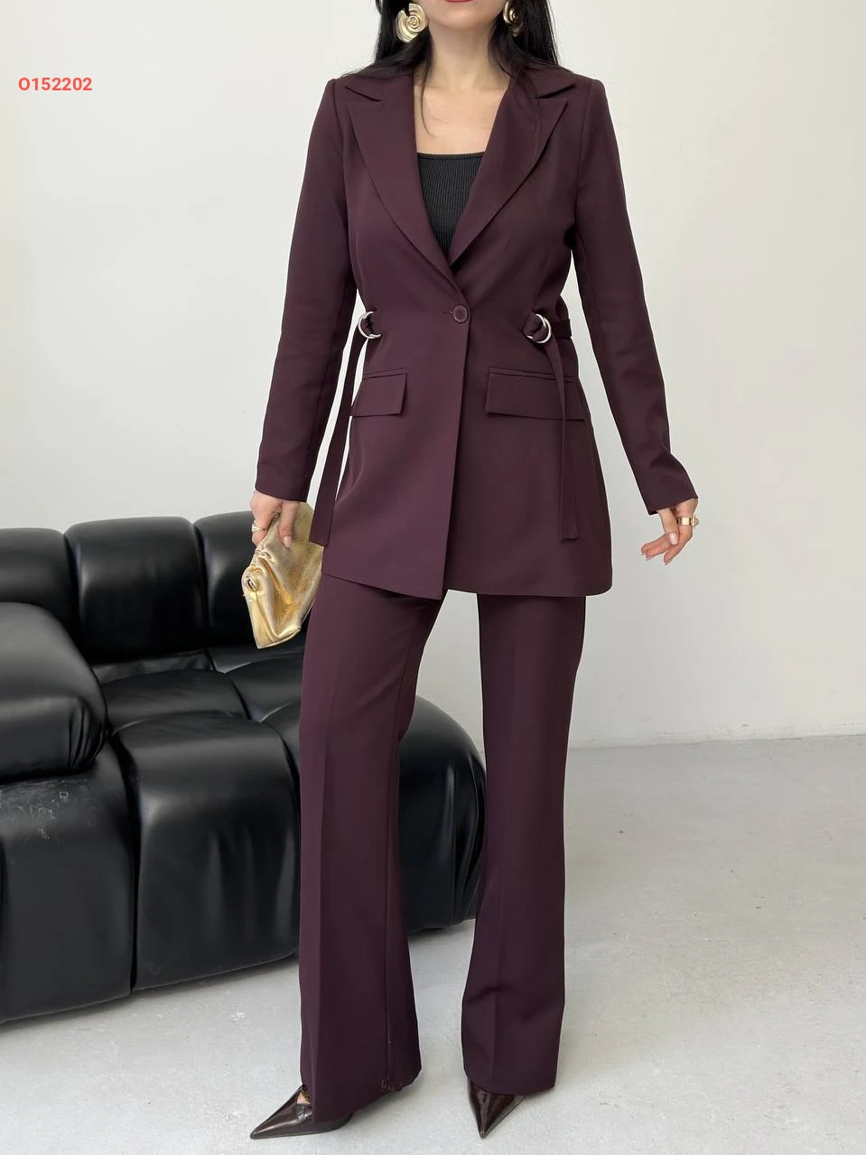 طقم بنطال وبليزر بحزام جانبي