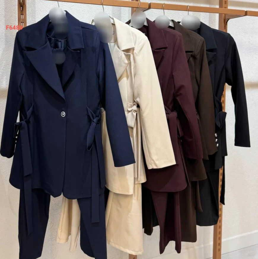 طقم بنطال وبليزر بربطات جانبية عالخصر