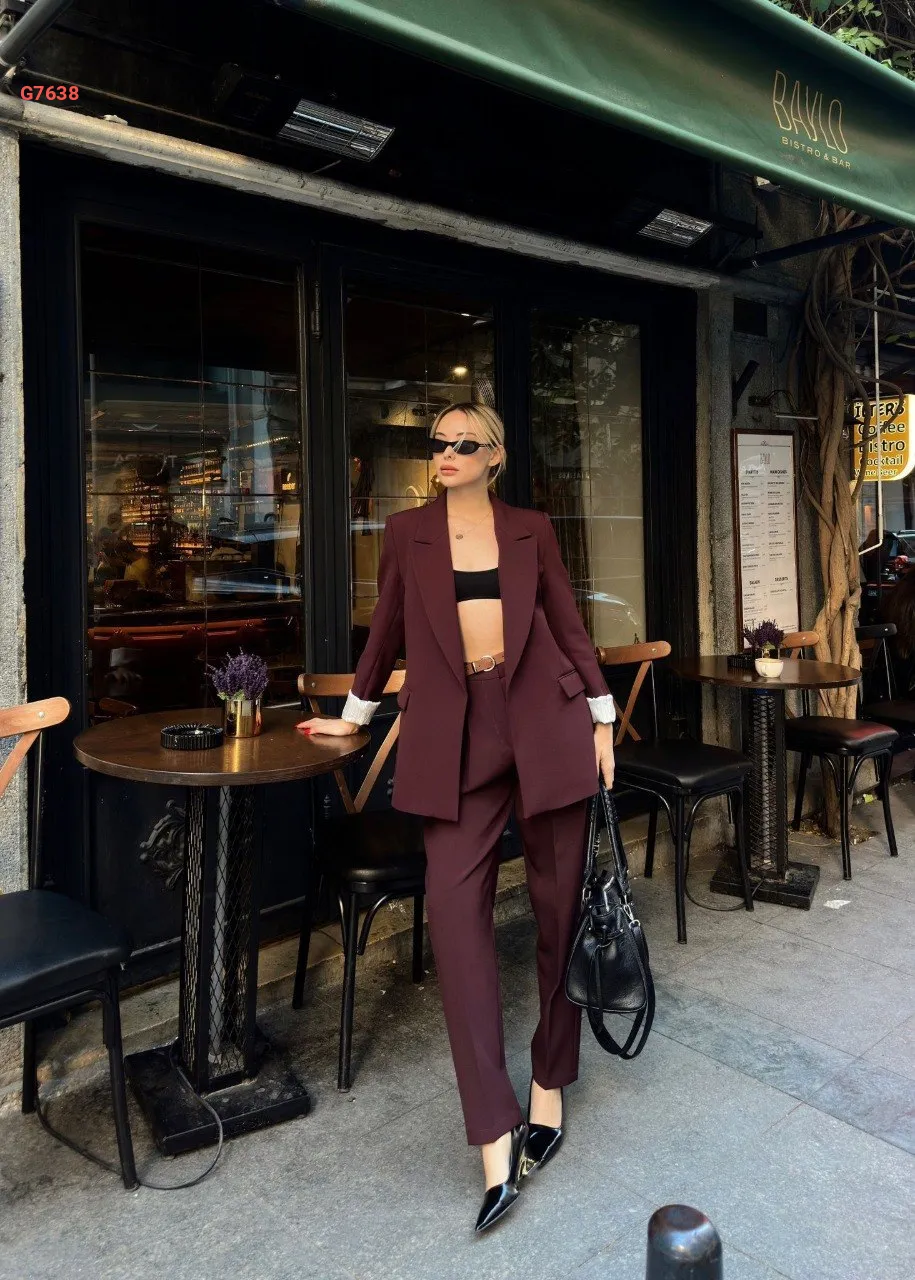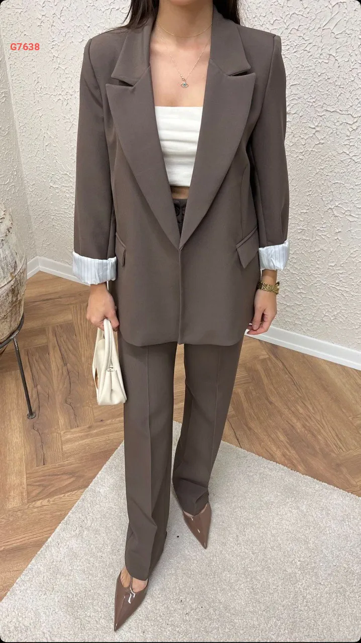 طقم بنطال وبليزر بلا أزرار