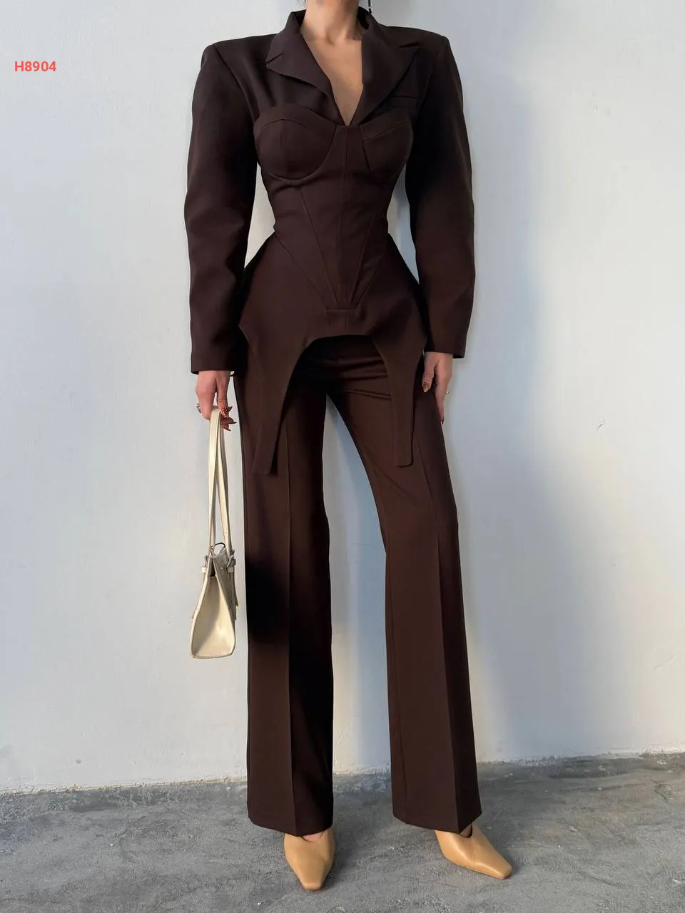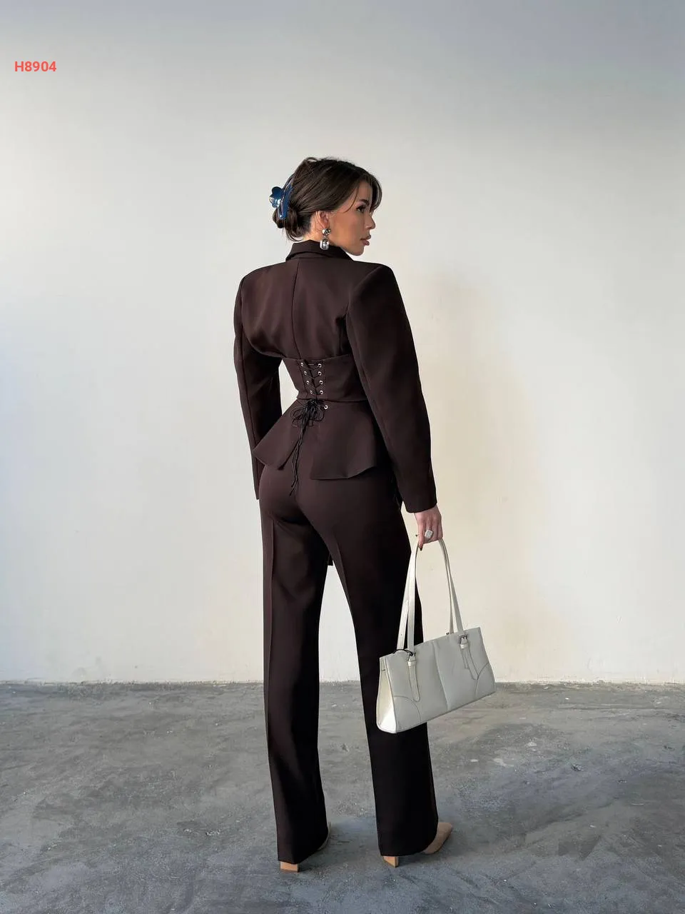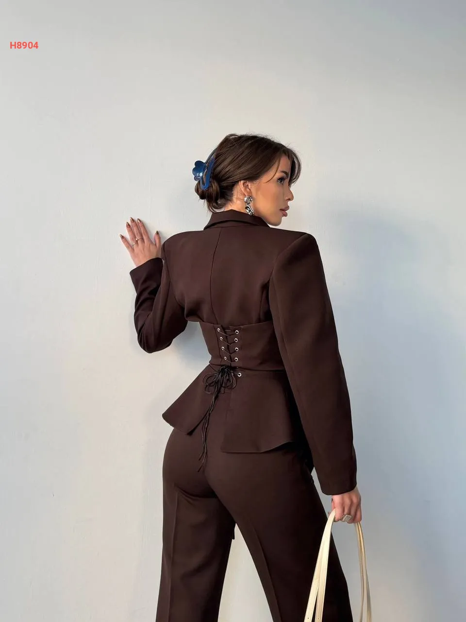 طقم بنطال وبلوزة بربطات خلفية