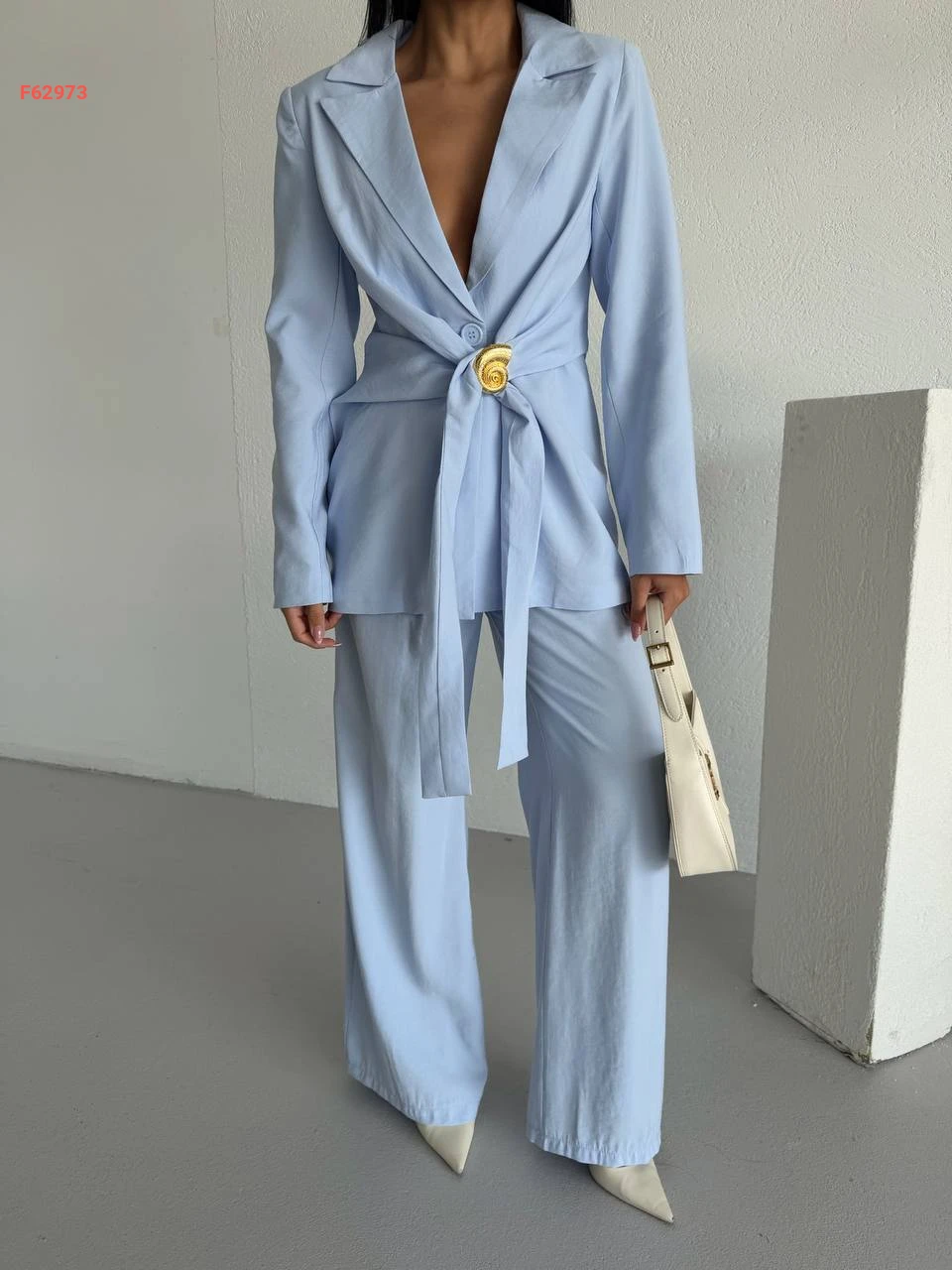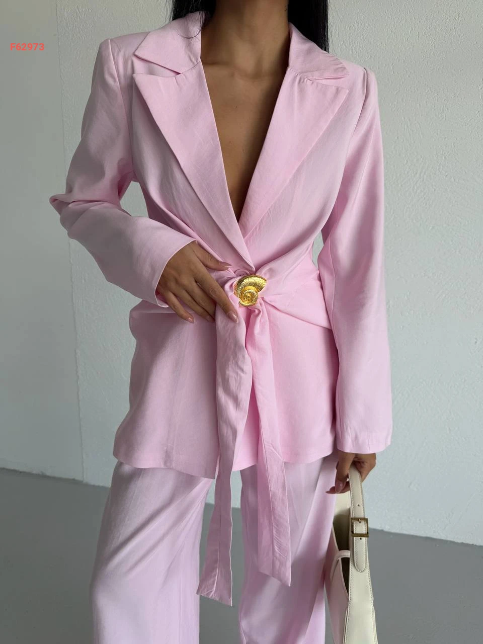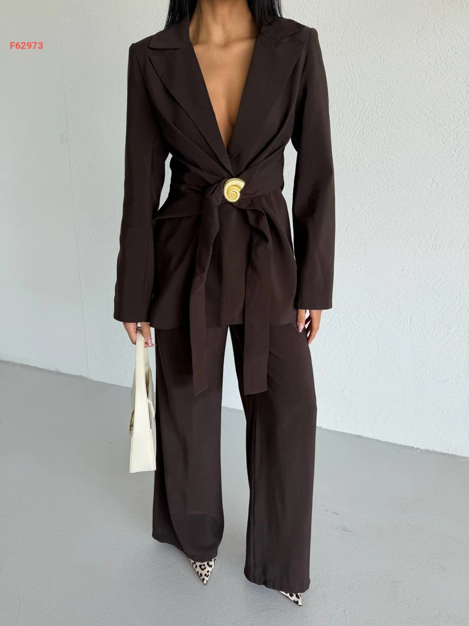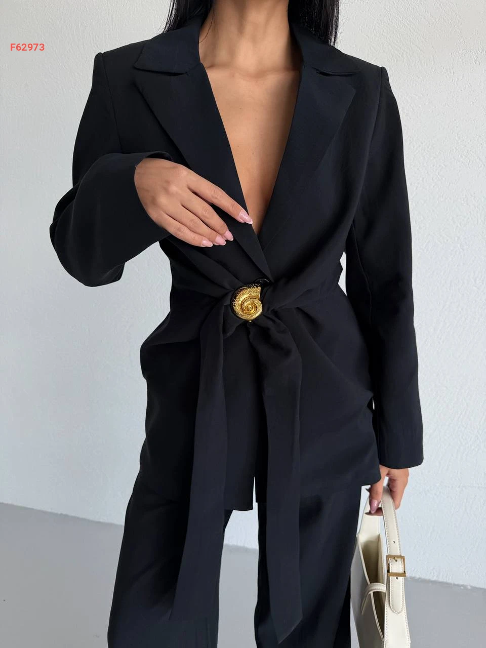 طقم بنطال وجاكيت بزنار وبروش دهبي