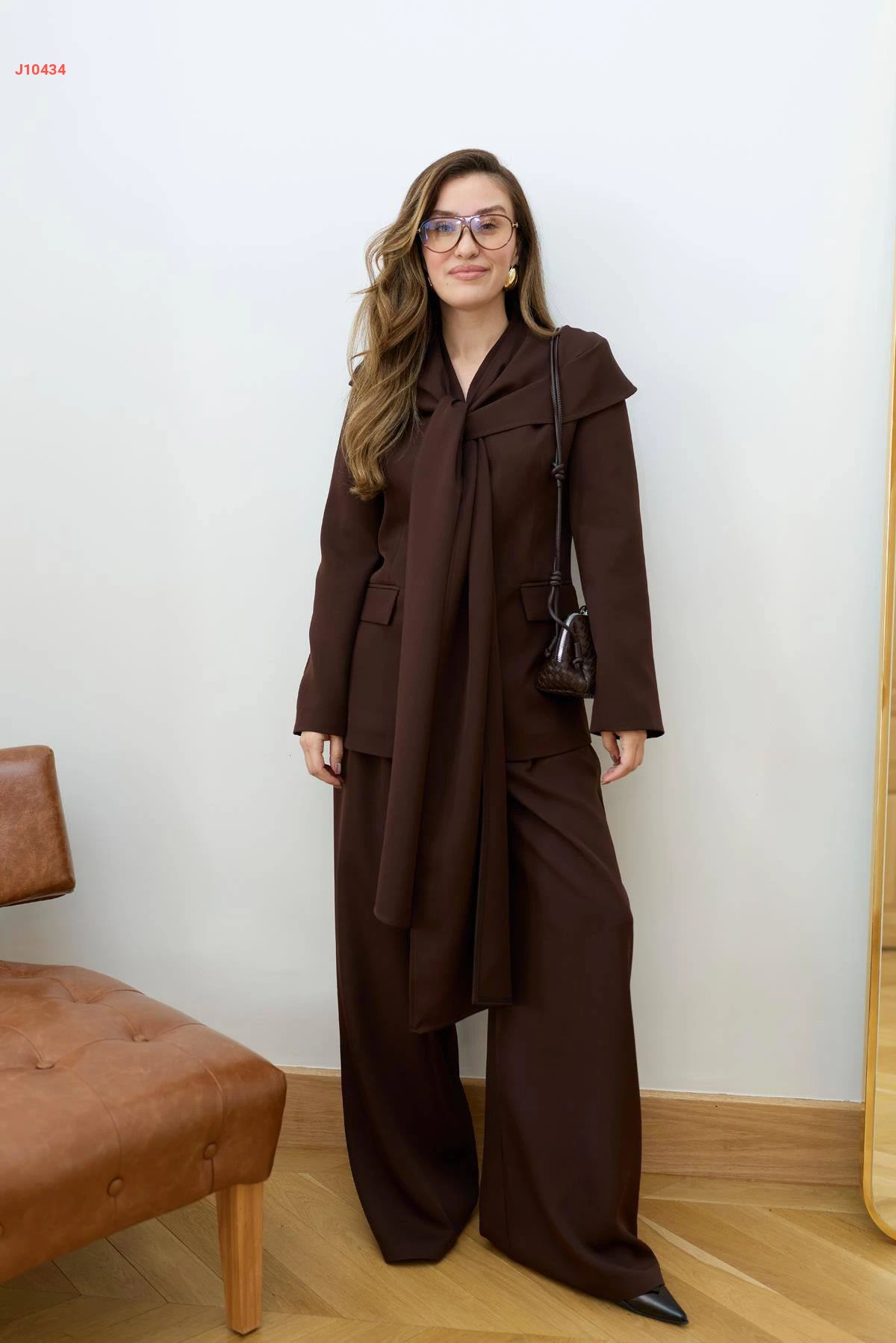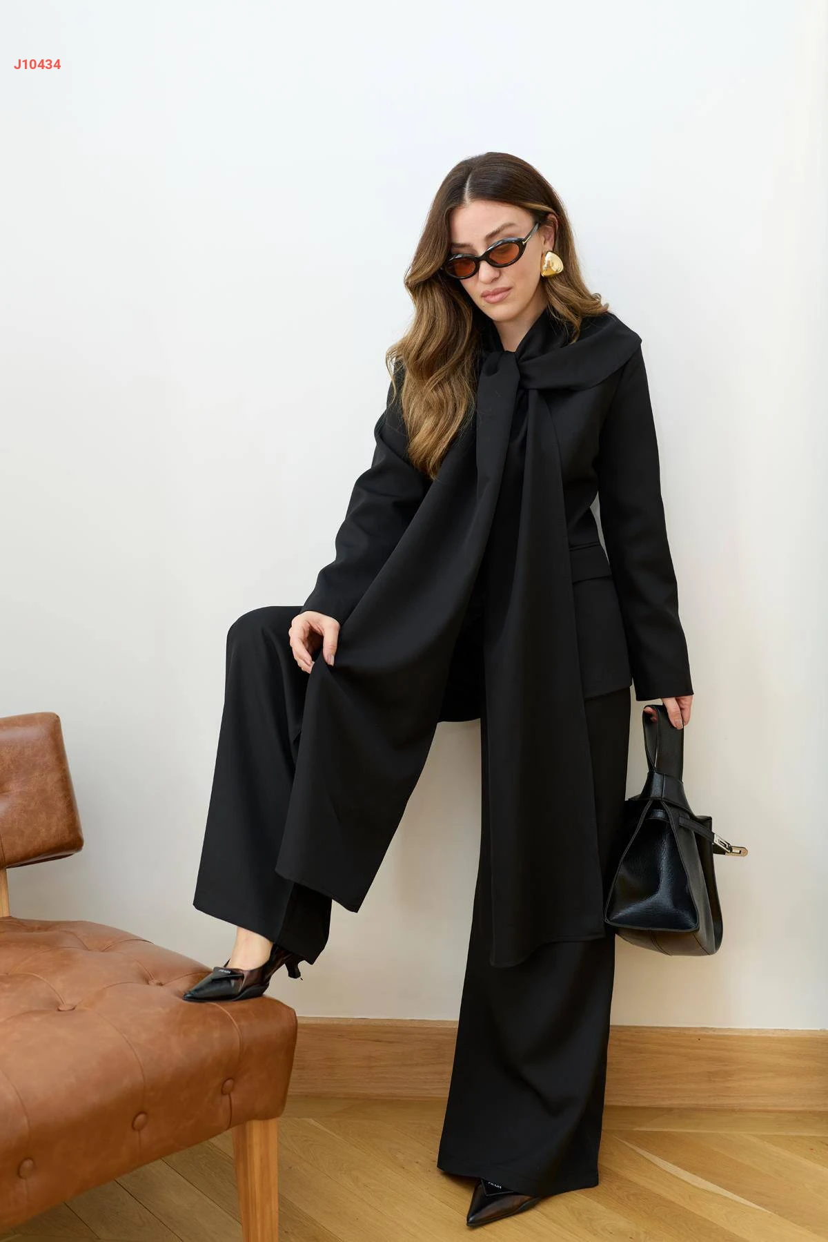 طقم بنطال وجاكيت مع وشاح