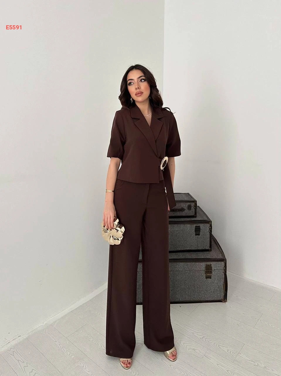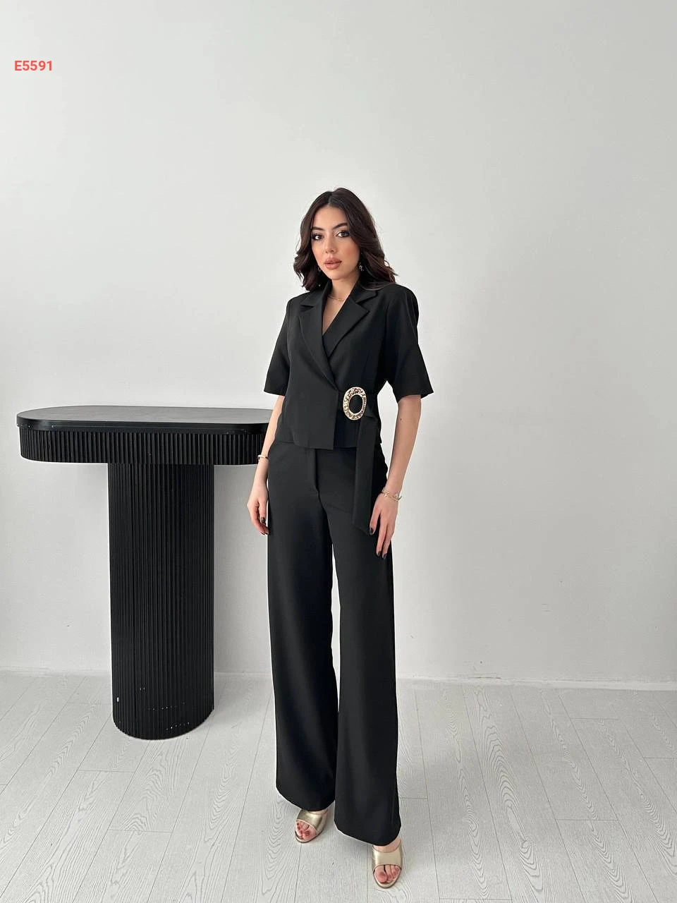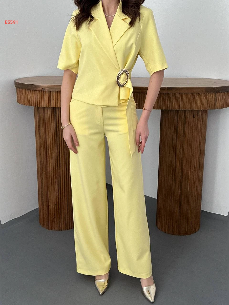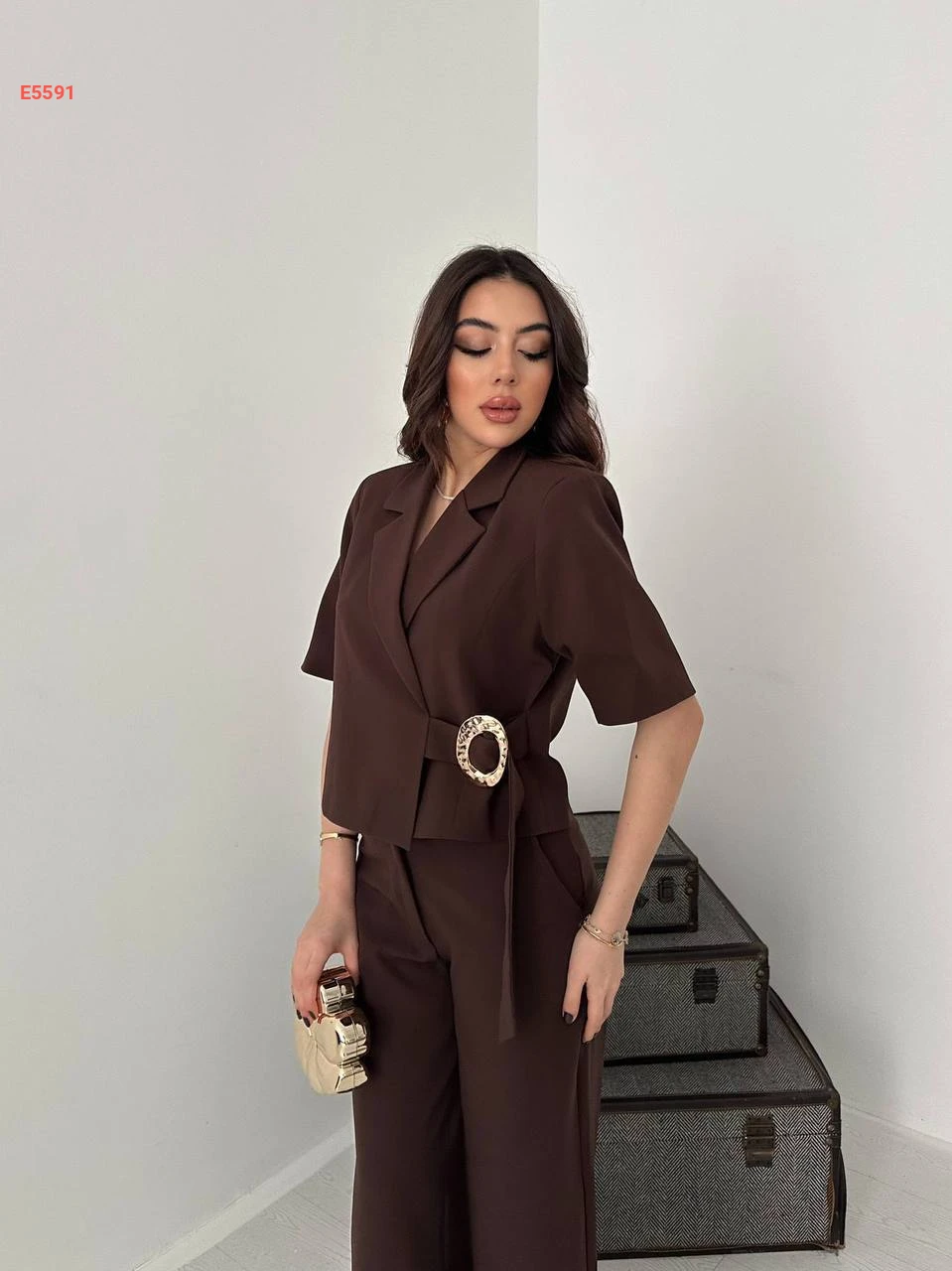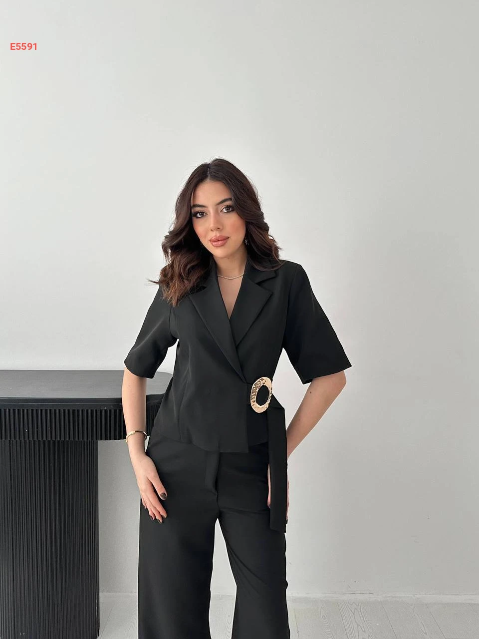 طقم بنطال وجاكيت بأبزيم جانبي