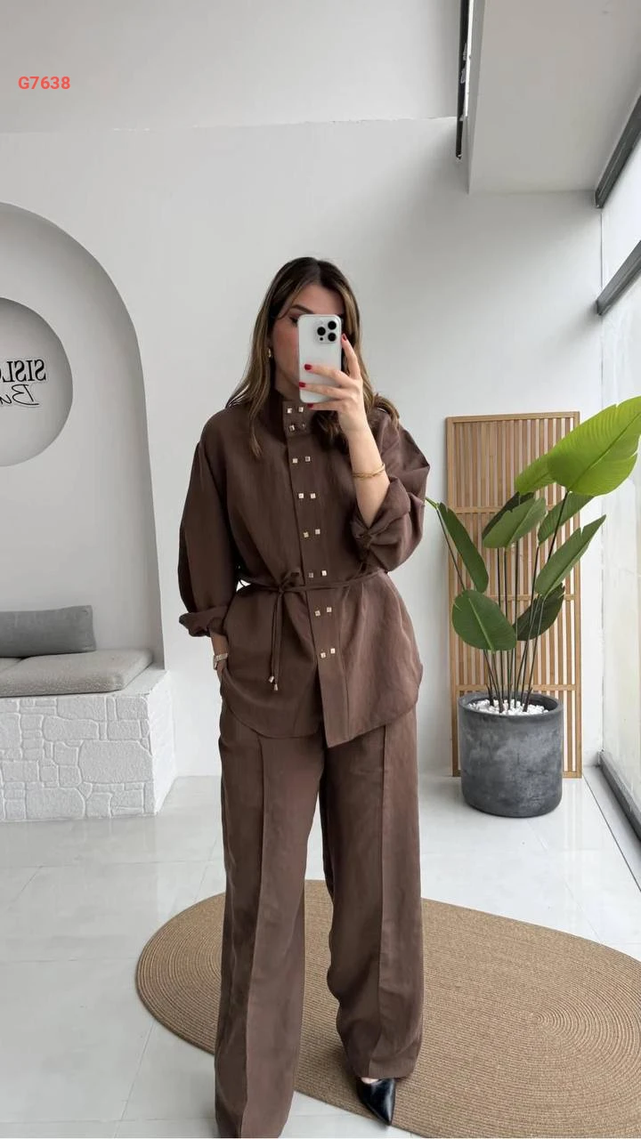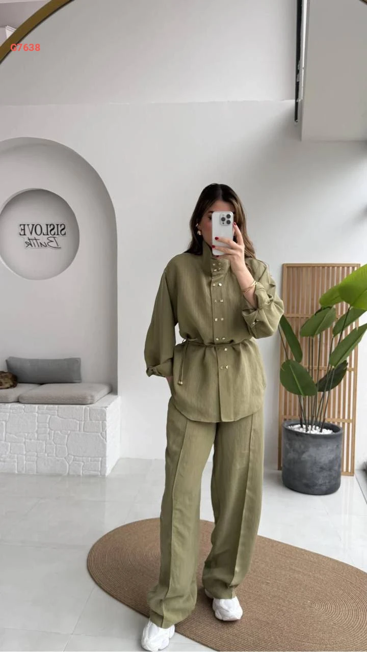 طقم بنطال وجاكيت مع زنار رفيع