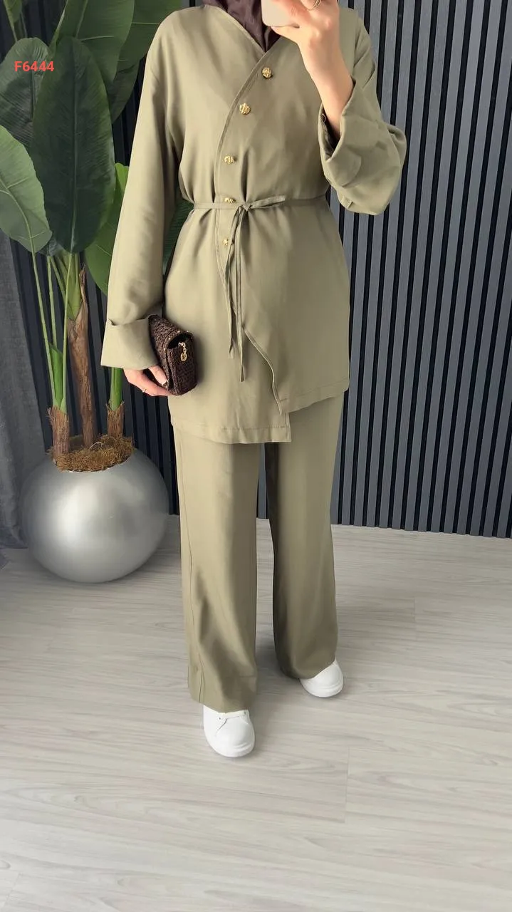 طقم بنطال وجاكيت مع زنار ربط
