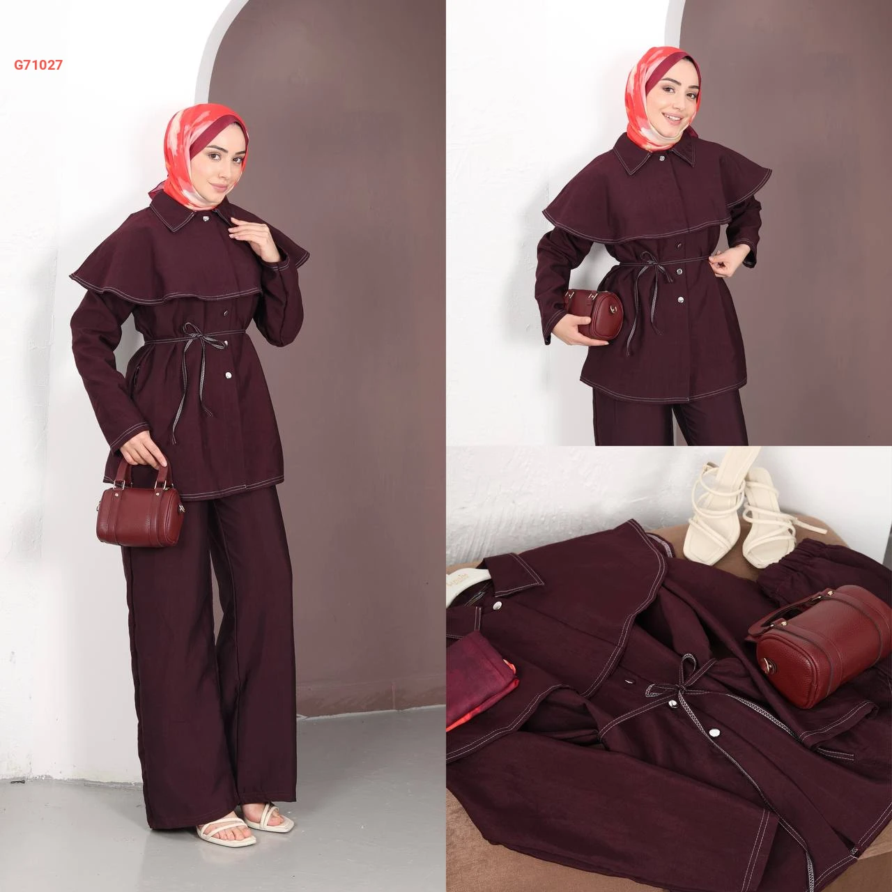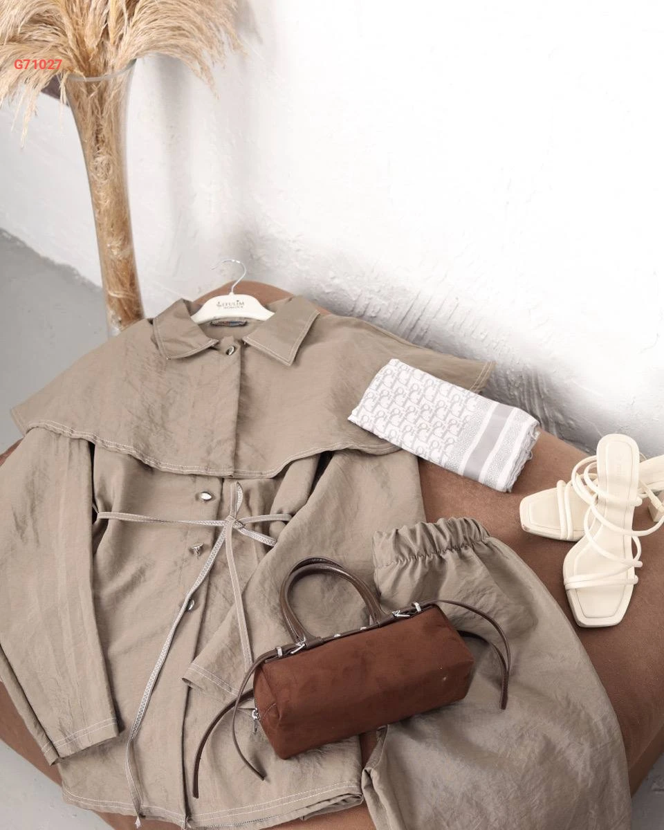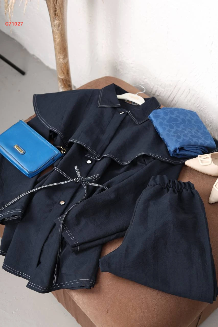 طقم بنطال وجاكيت بتفاصيل كاب