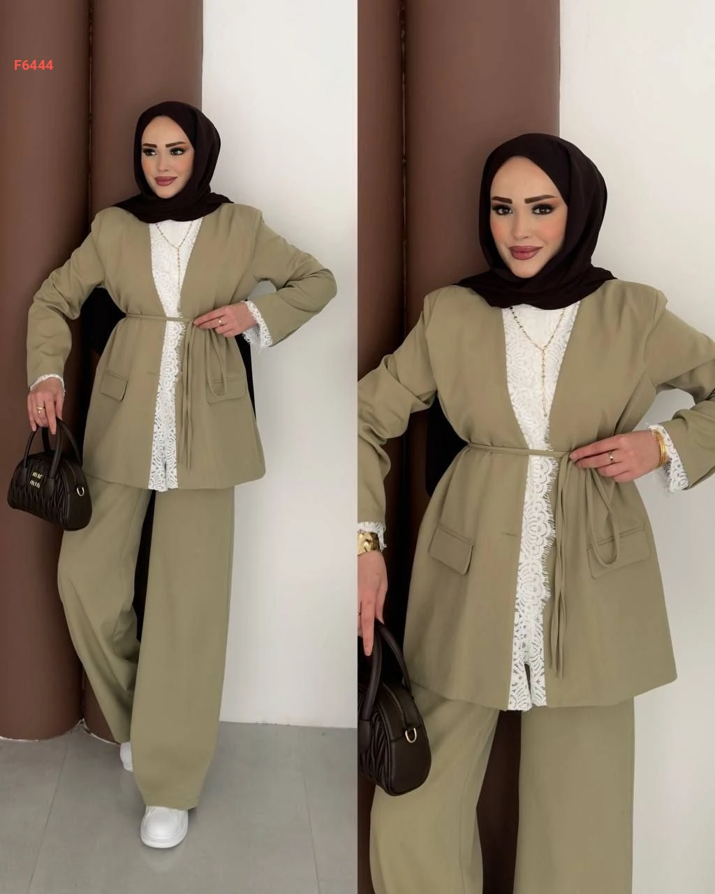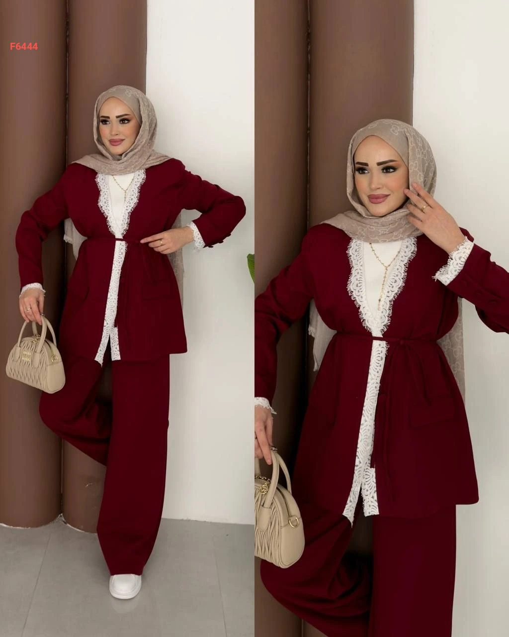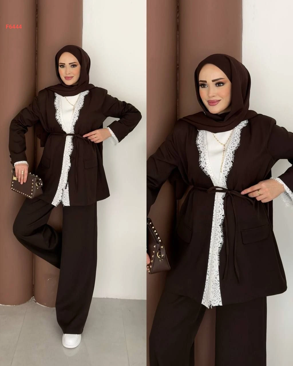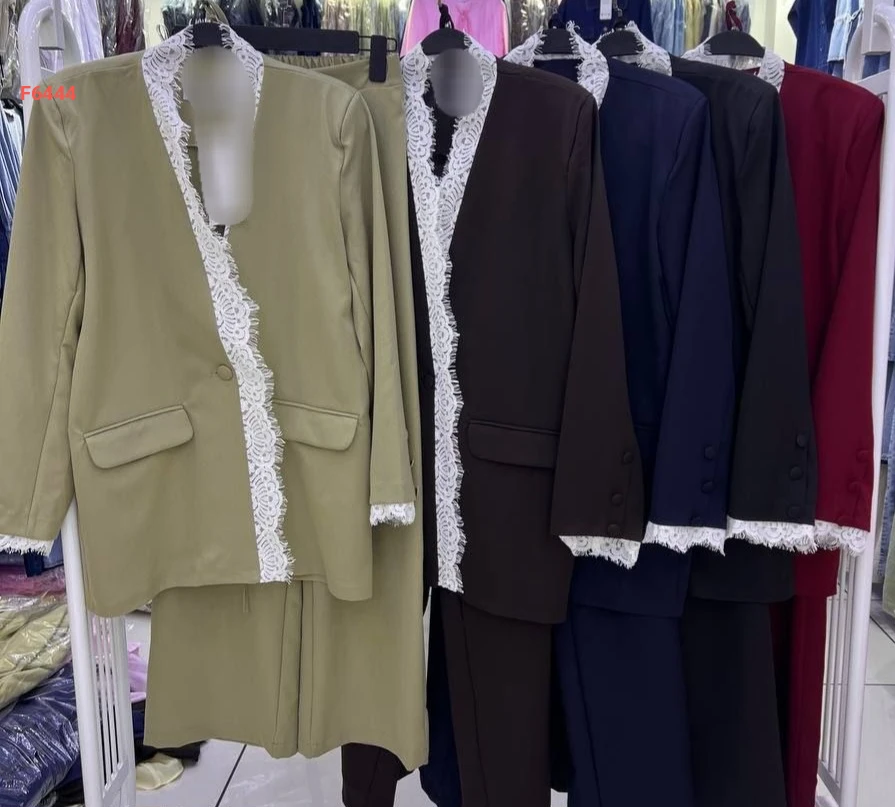 طقم بنطال وجاكيت بتفاصيل دانتيل