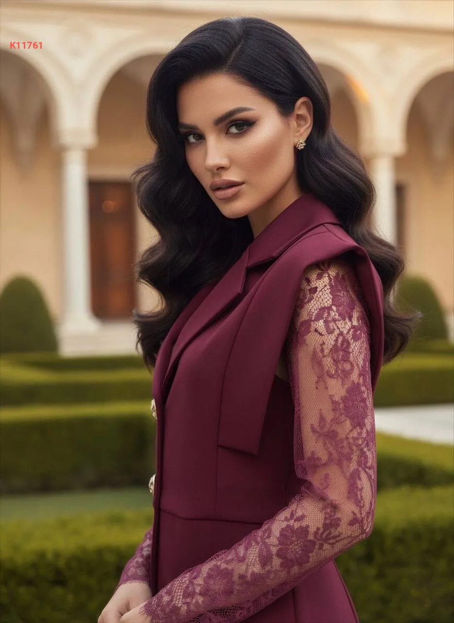 طقم بنطال وجاكيت بأكمام دانتيل