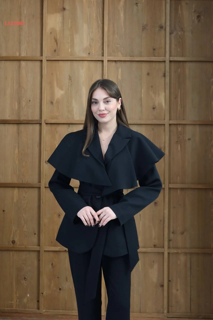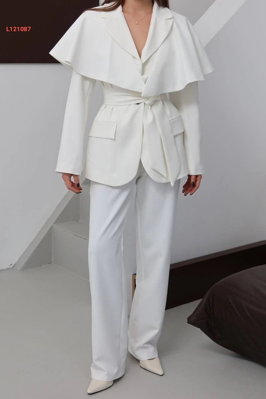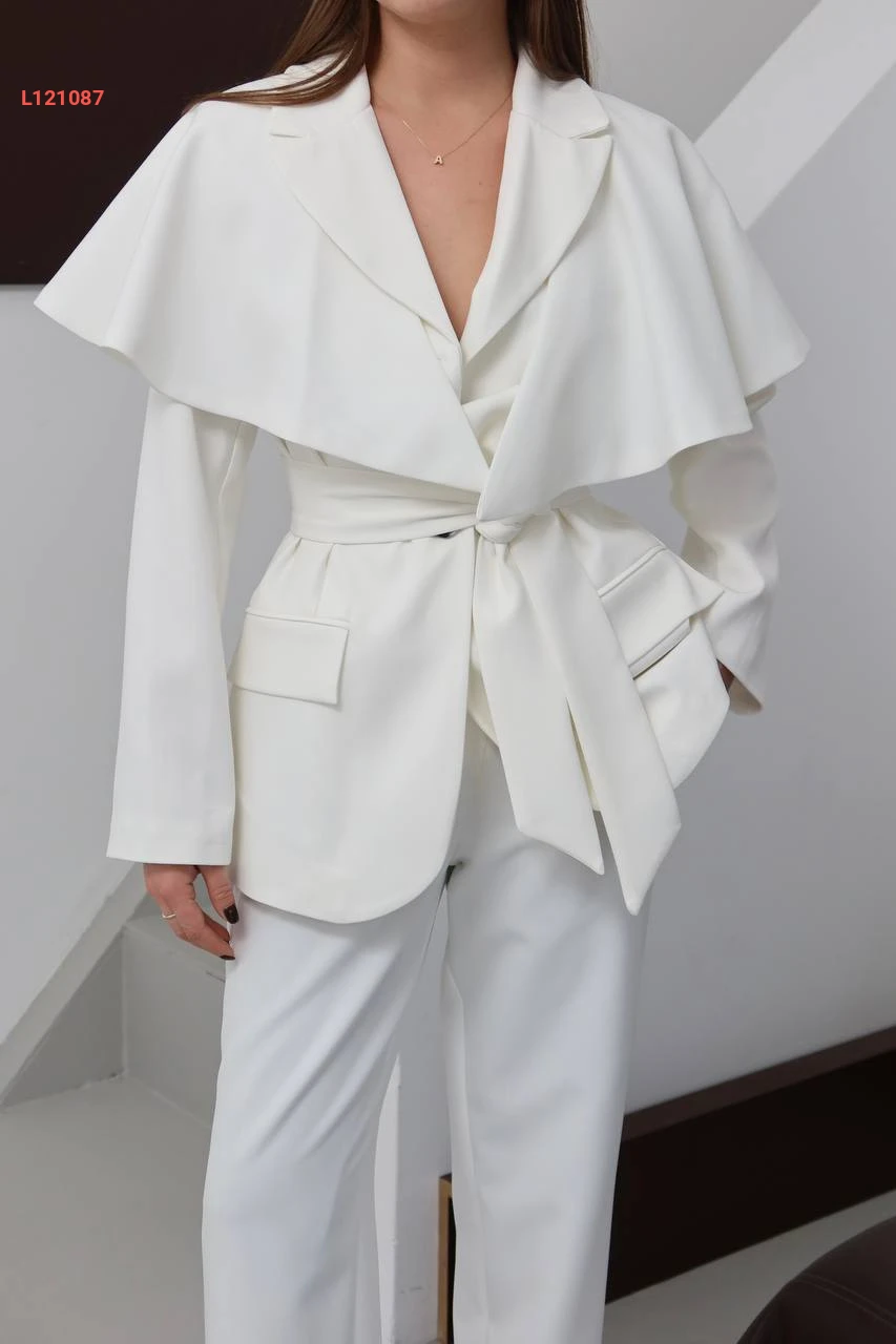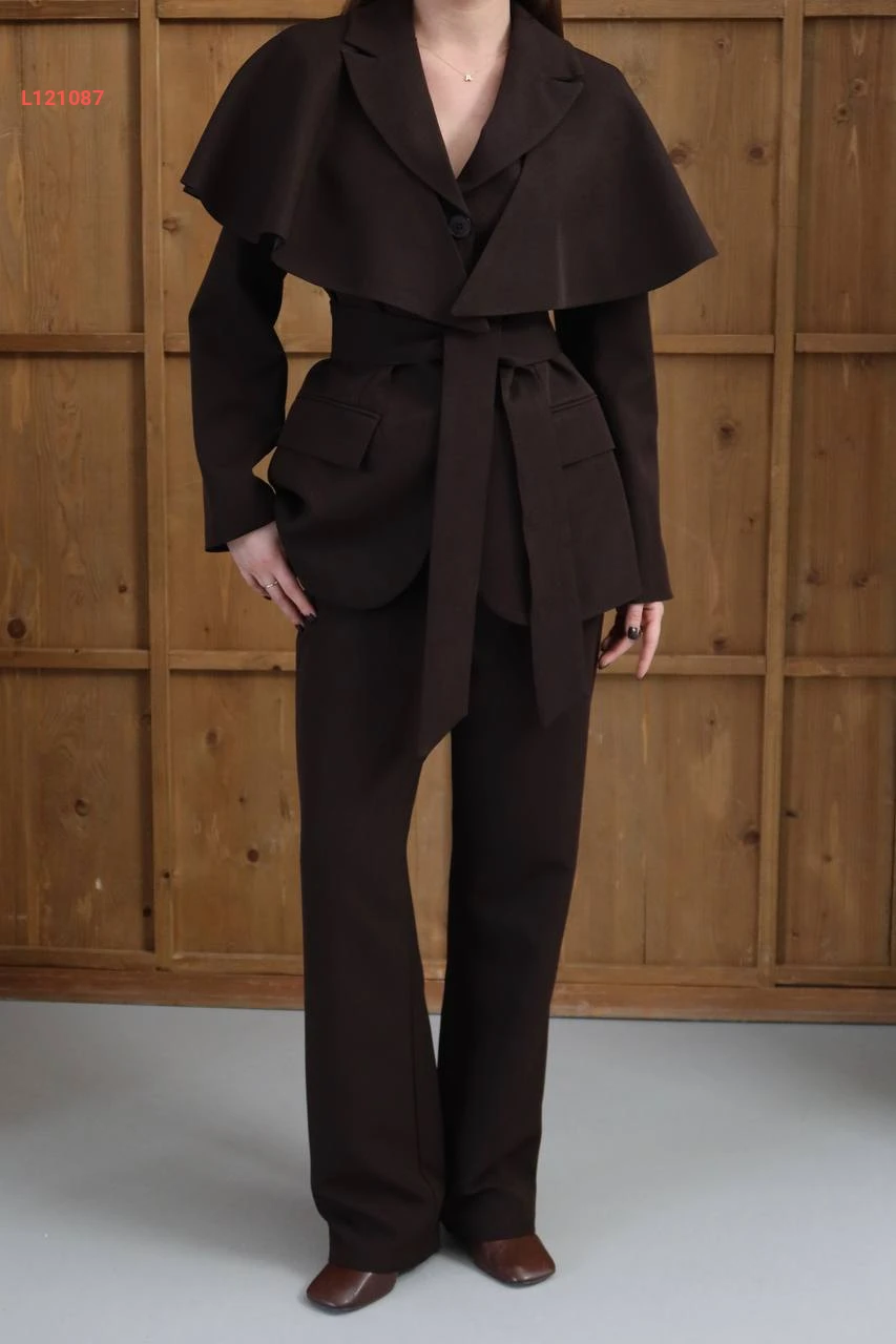 طقم بنطال وجاكيت مع تفاصيل كاب كتف