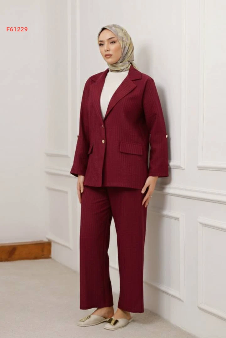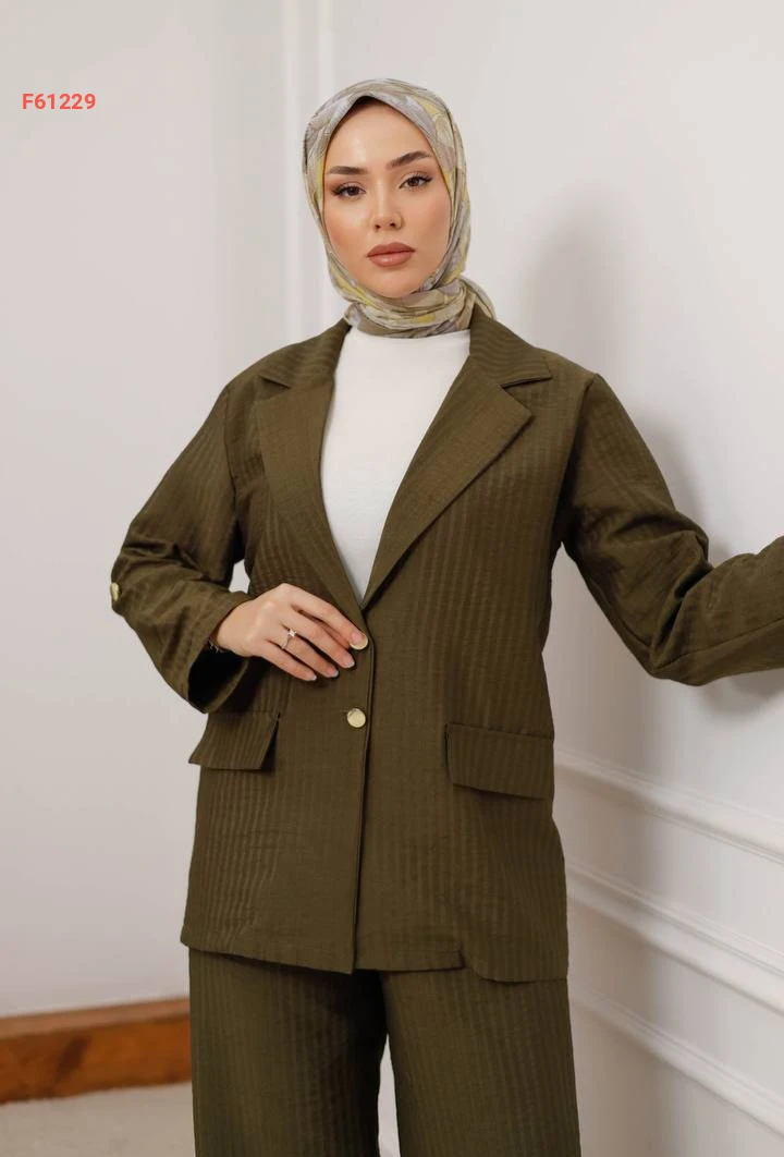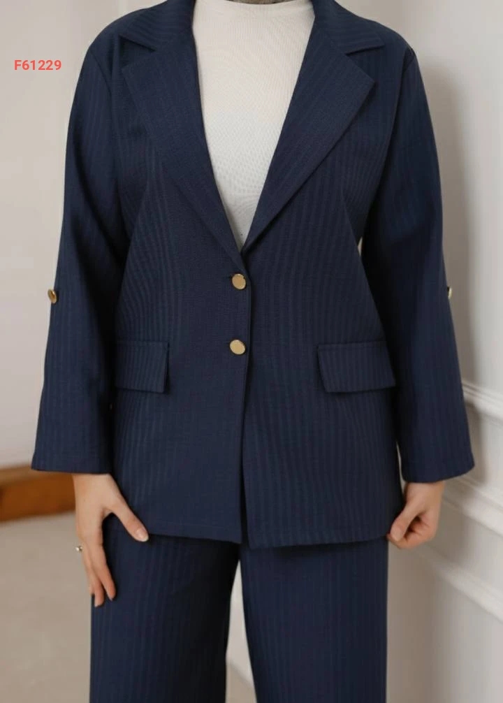 طقم بنطال وجاكيت بتفاصيل مقلمة