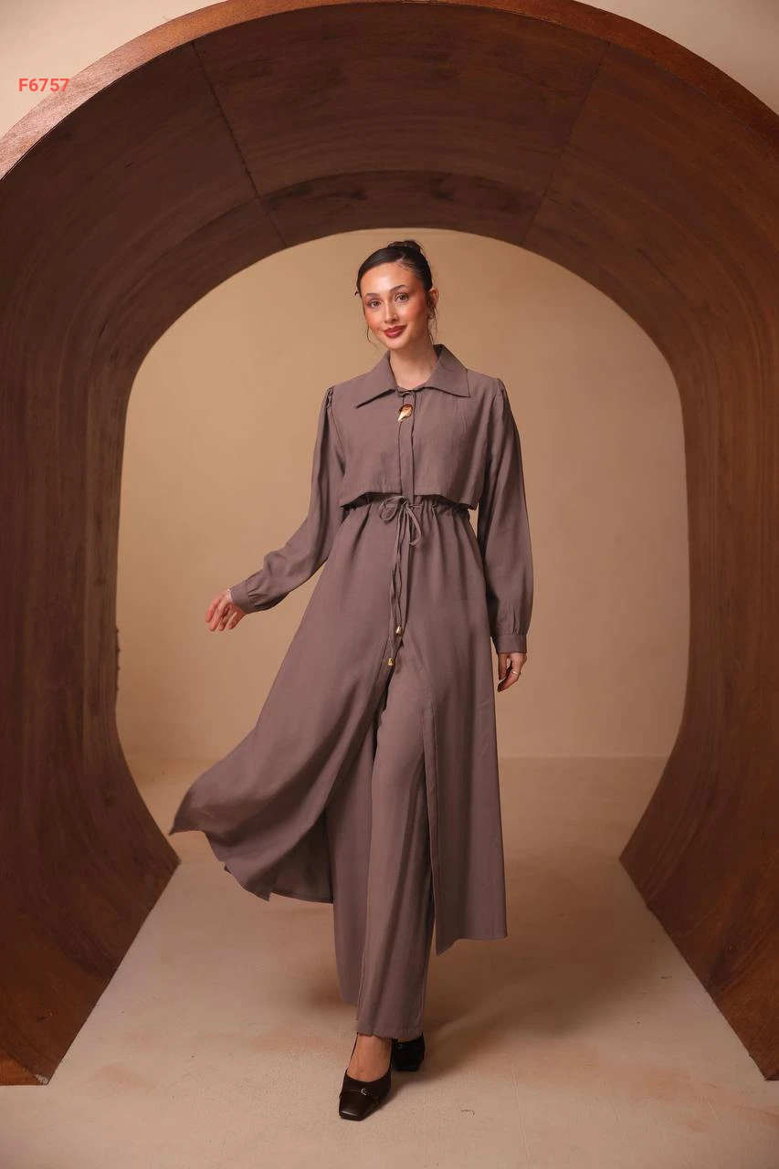 طقم بنطال وقميص طويل ببروش
