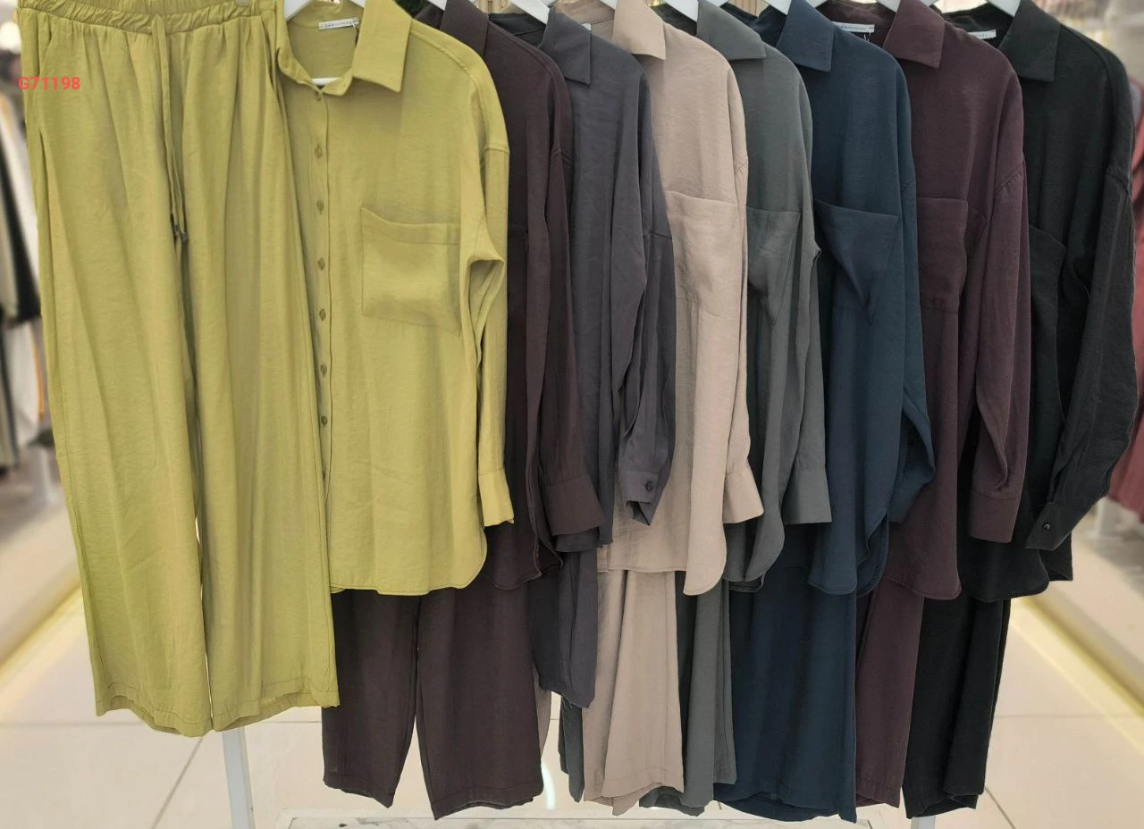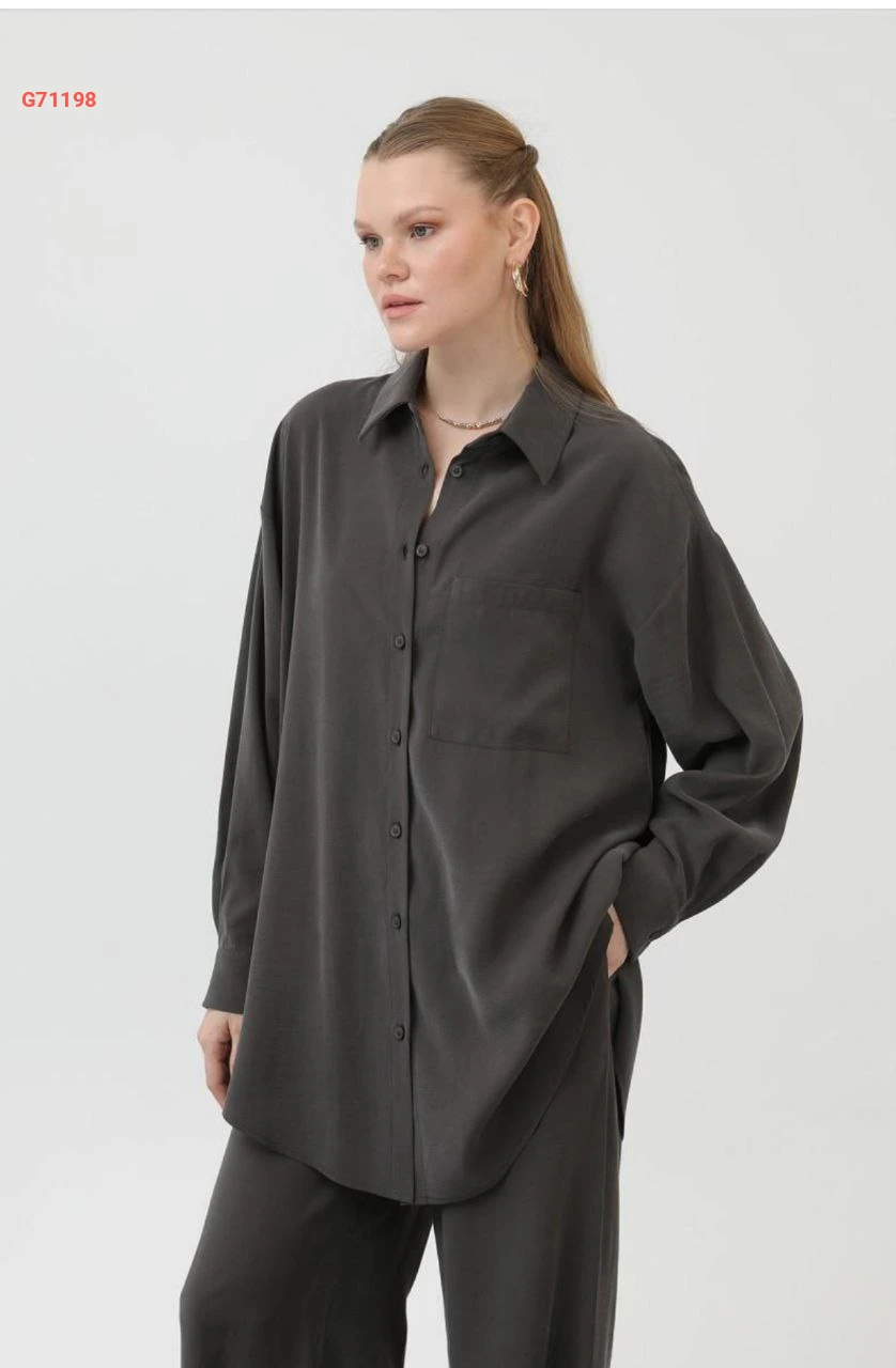 طقم بنطال وقميص طويل بجيب