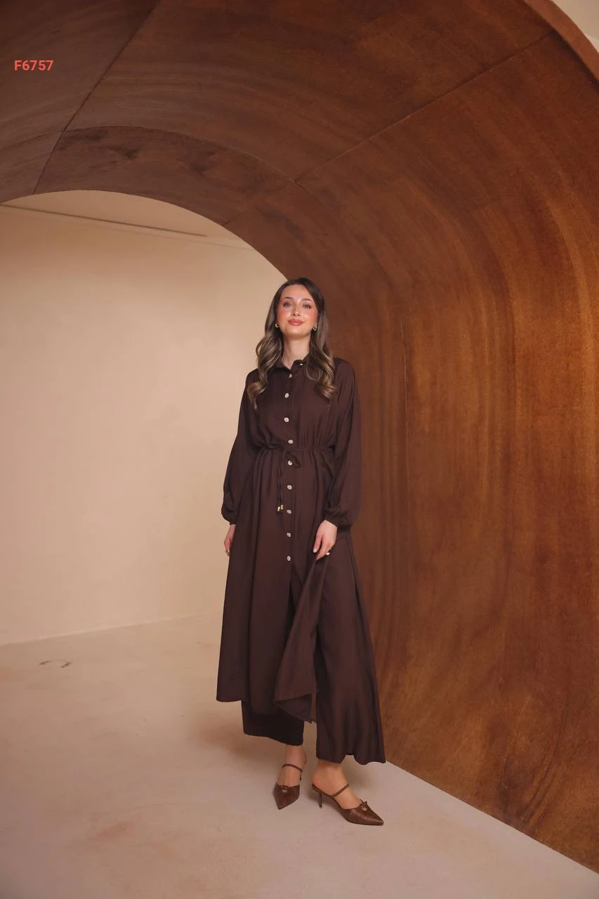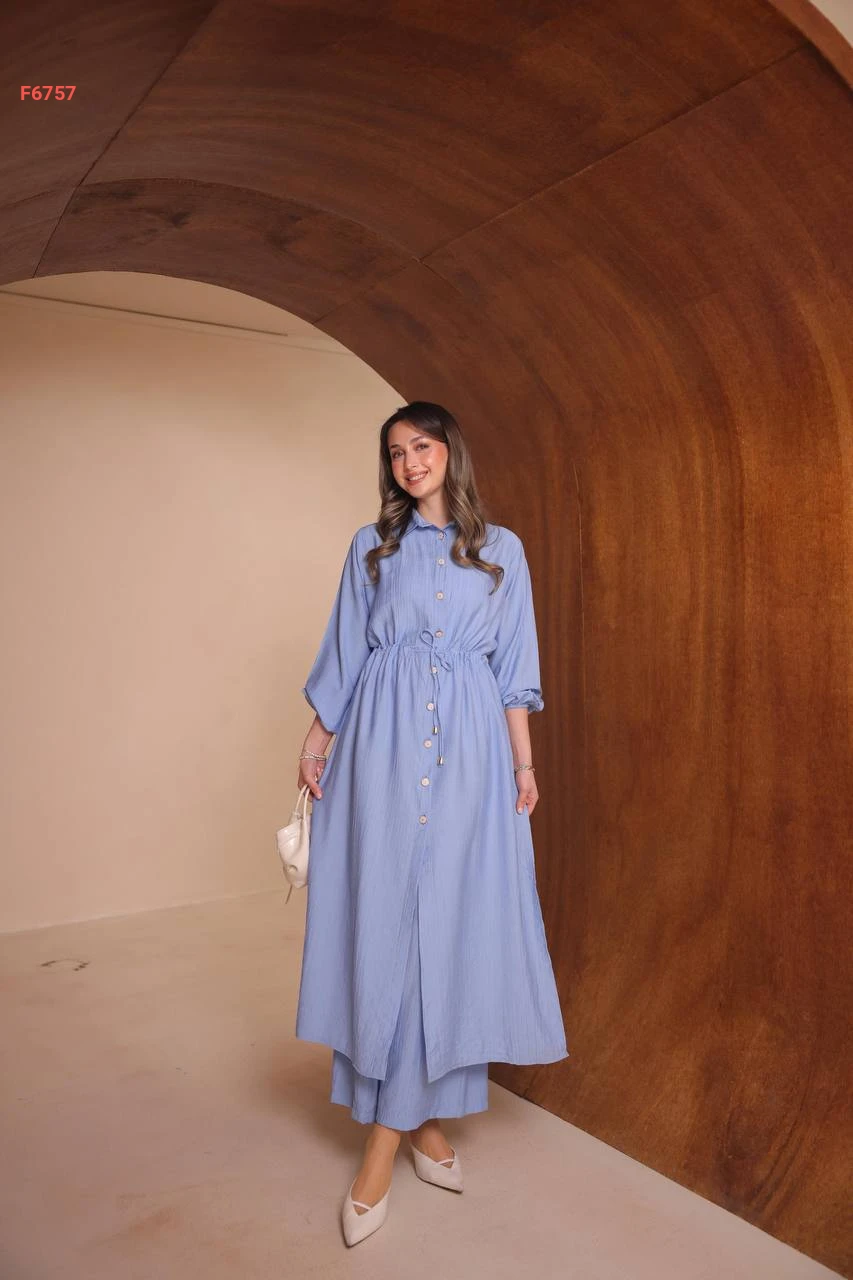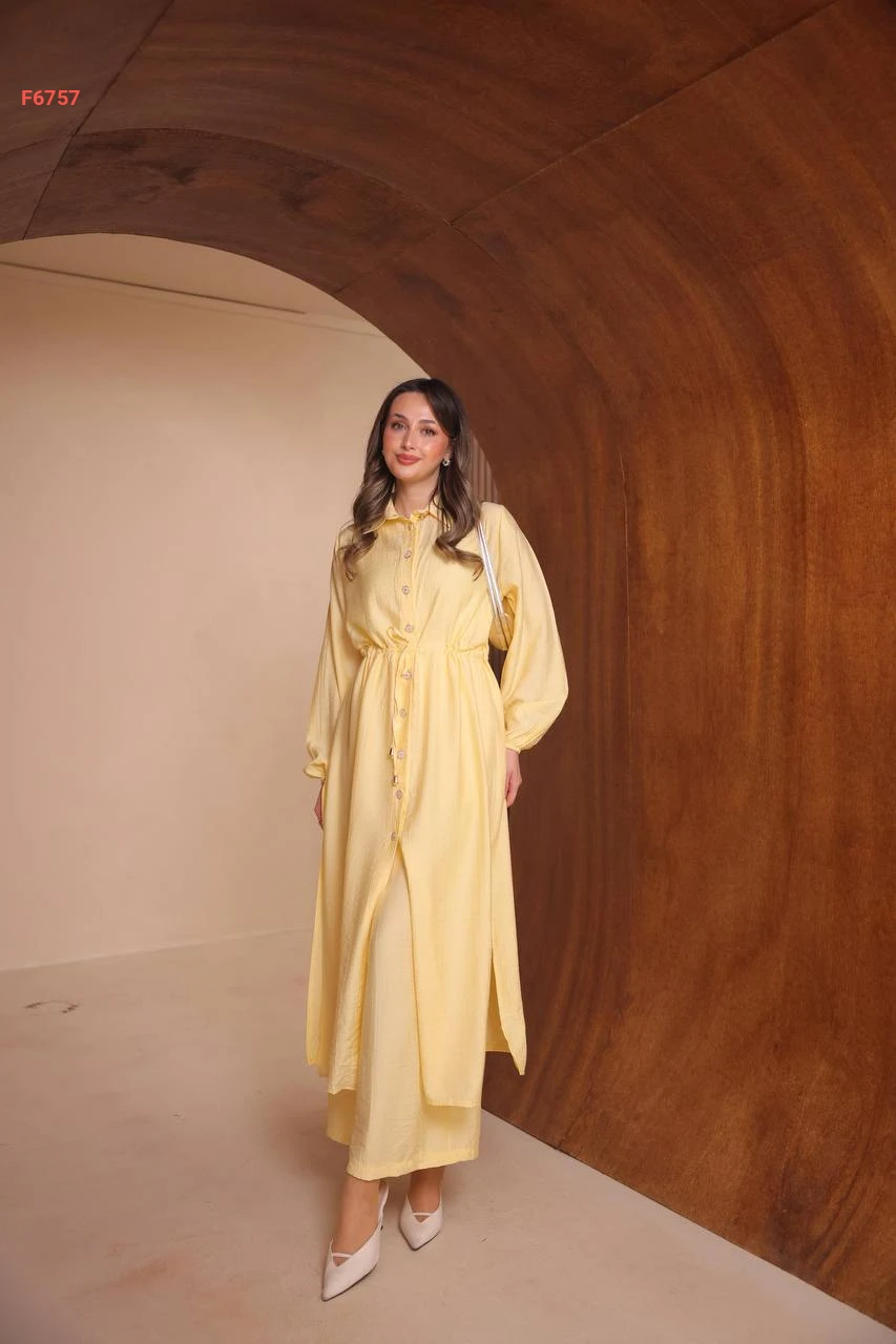 طقم بنطال وقميص طويل بفتحات جانبية