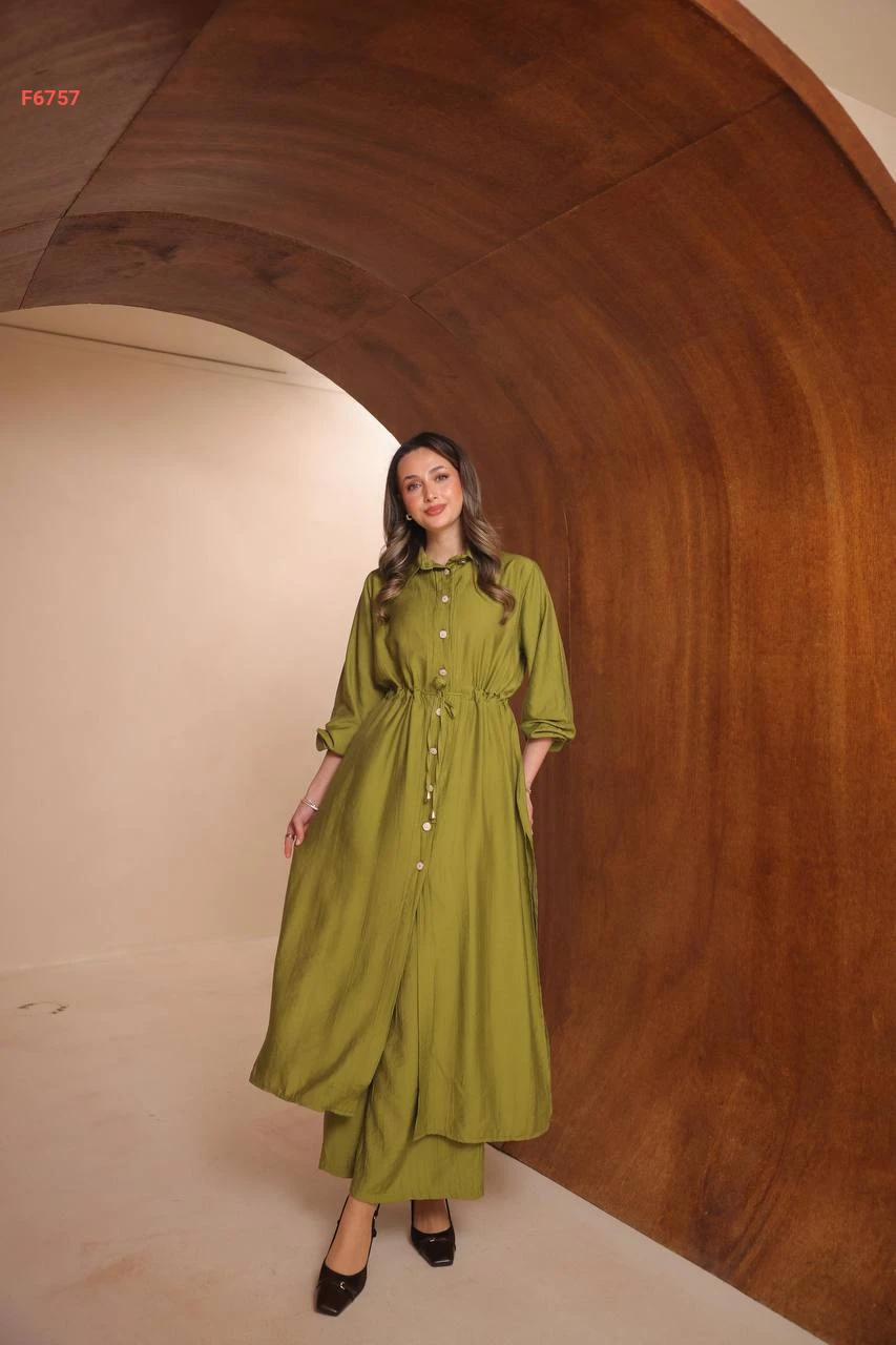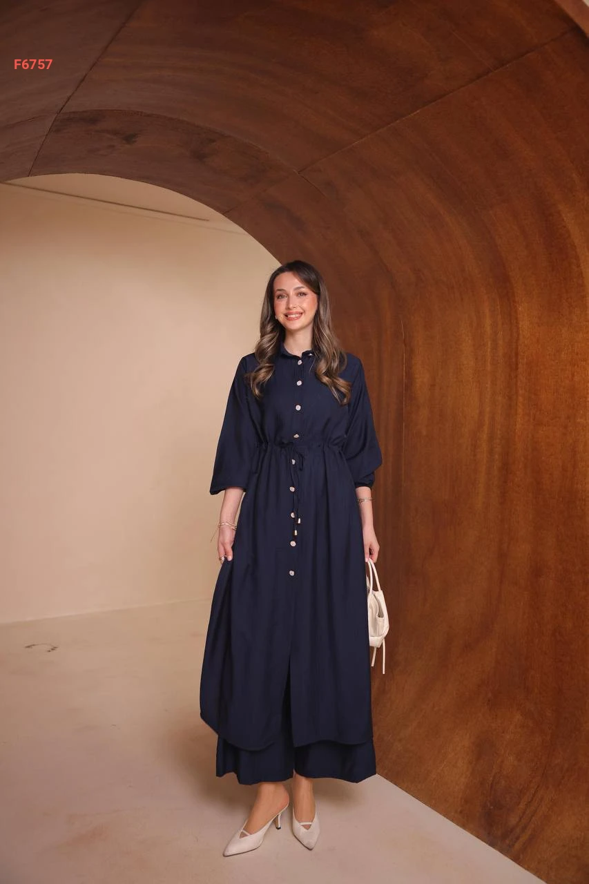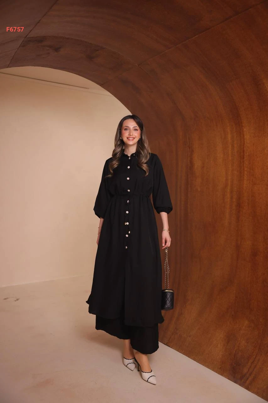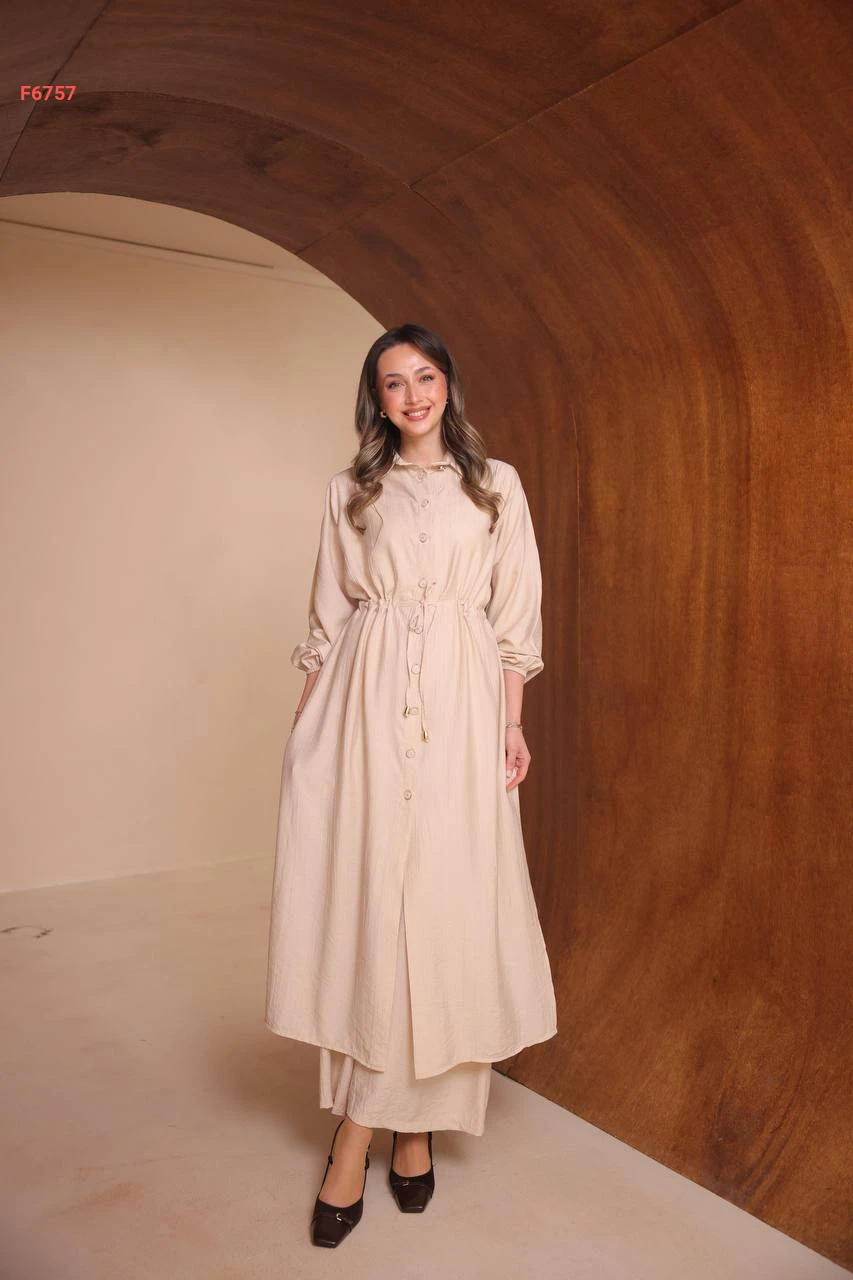 طقم بنطال وقميص طويل بفتحات جانبية