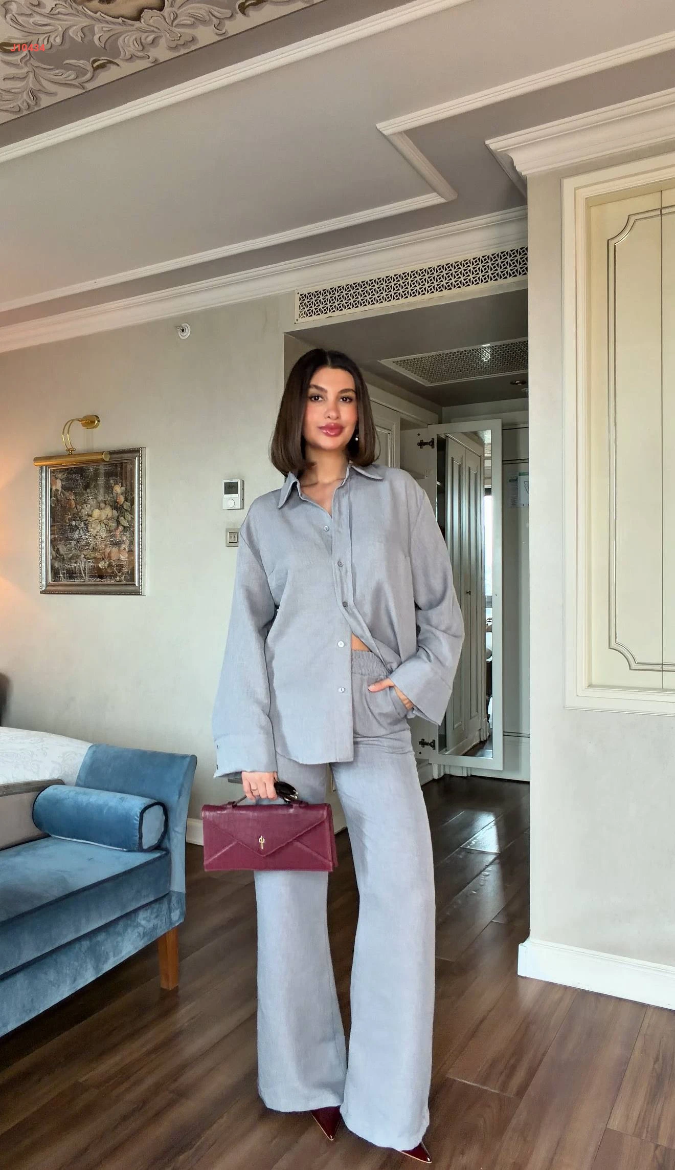 طقم بنطال وقميص كم طويل