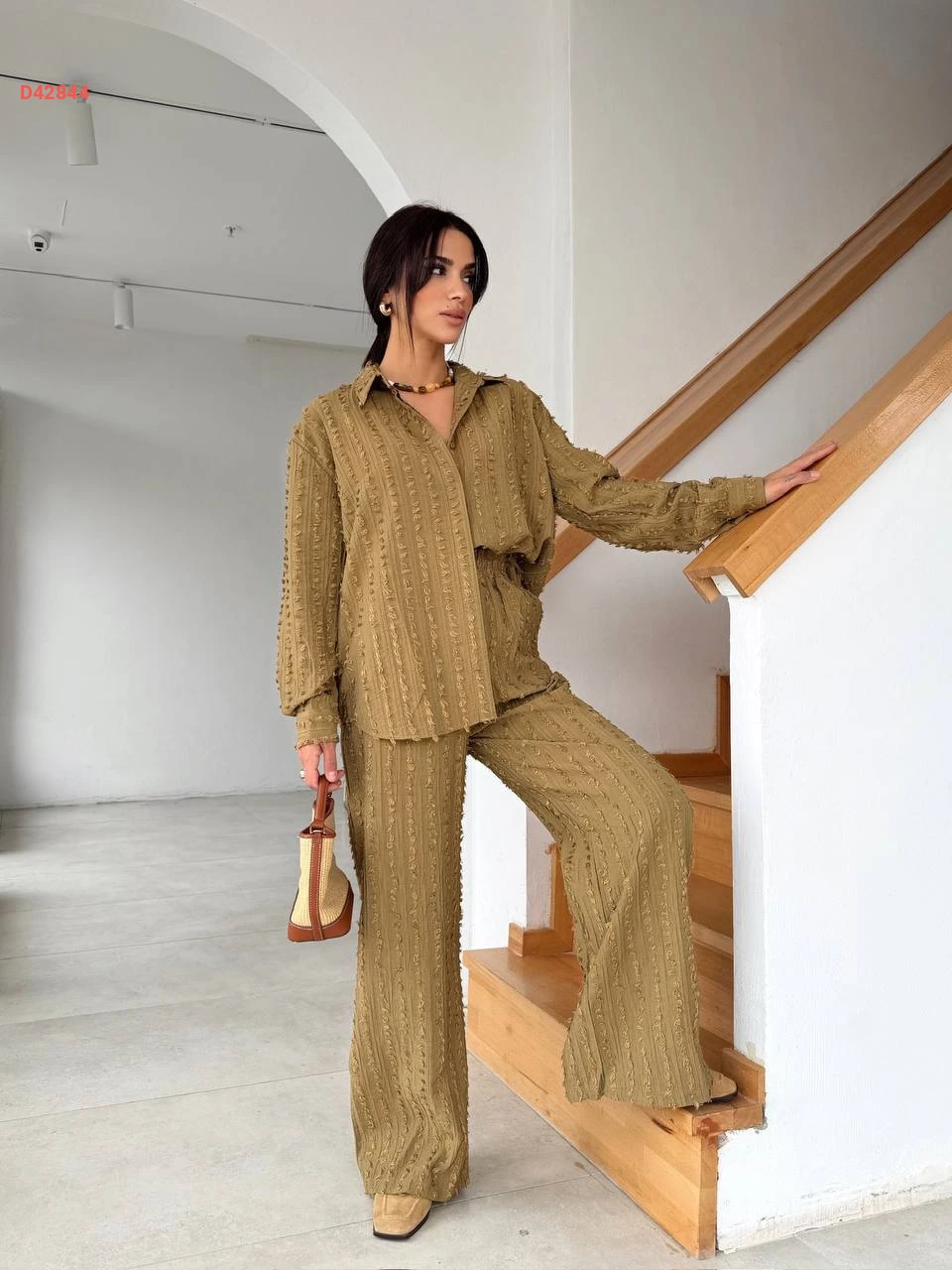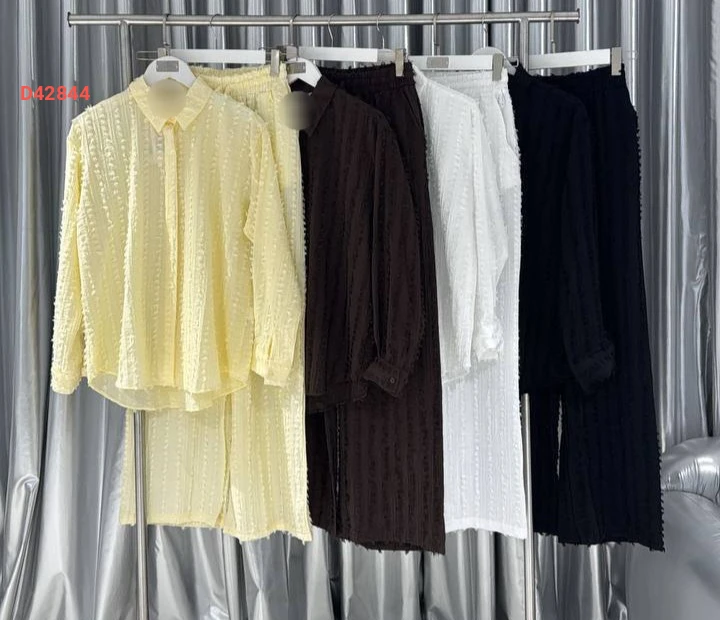 طقم بنطال وقميص كم طويل