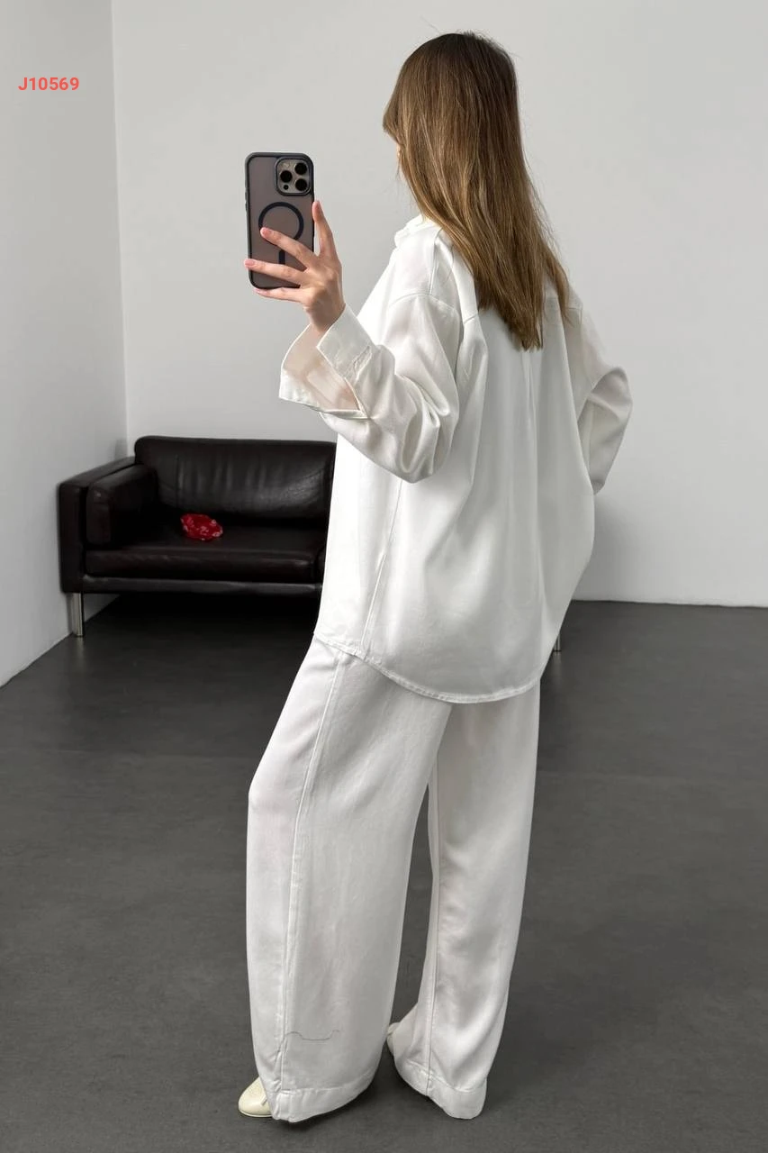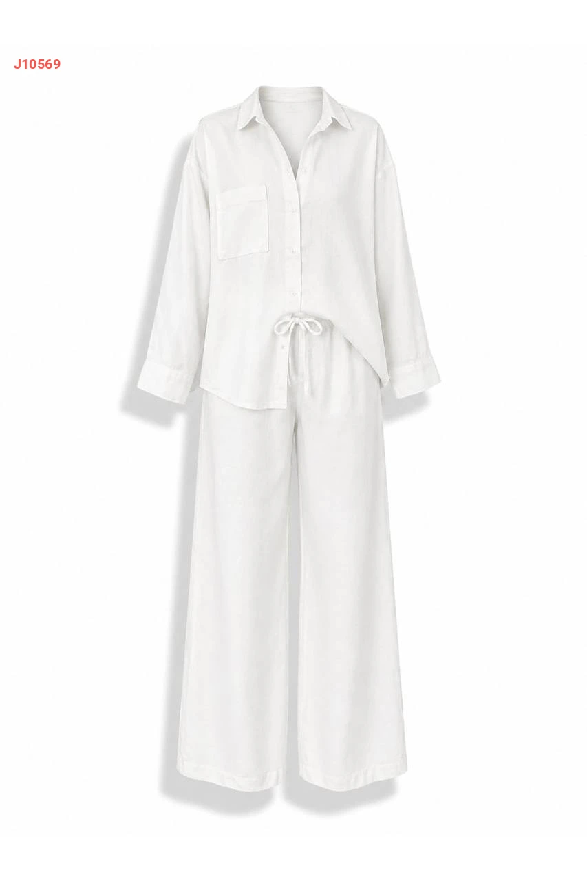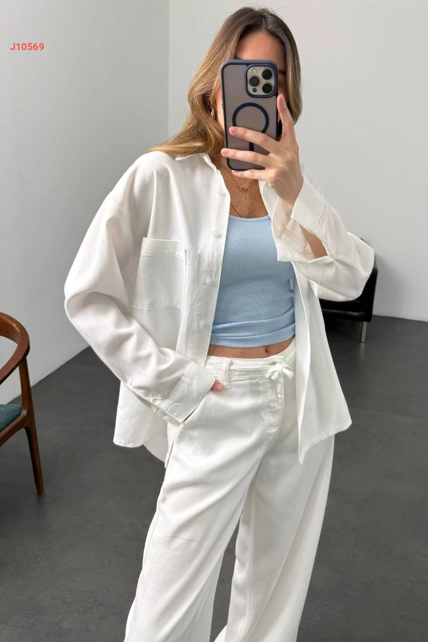 طقم بنطال وقميص كم طويل