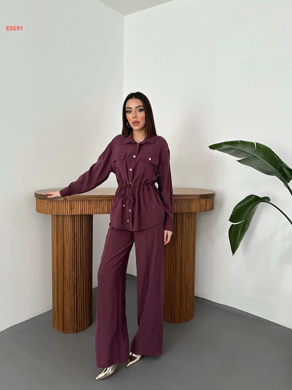 طقم بنطال وقميص بزنار زم