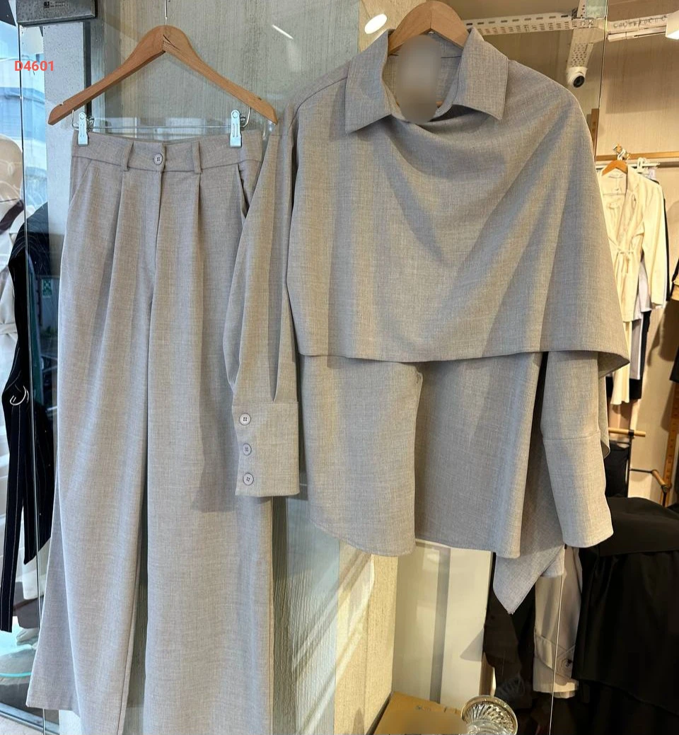 طقم بنطال وقميص مع وشاح