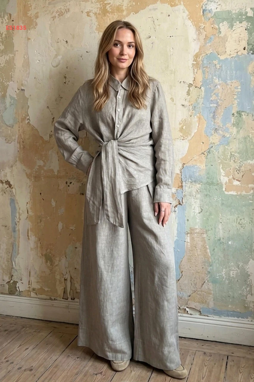 طقم بنطال وقميص بربطة جانبية