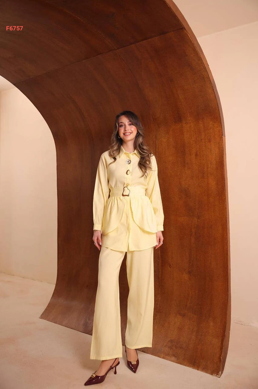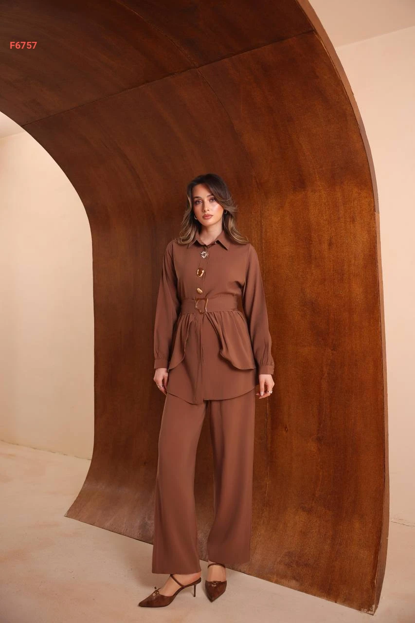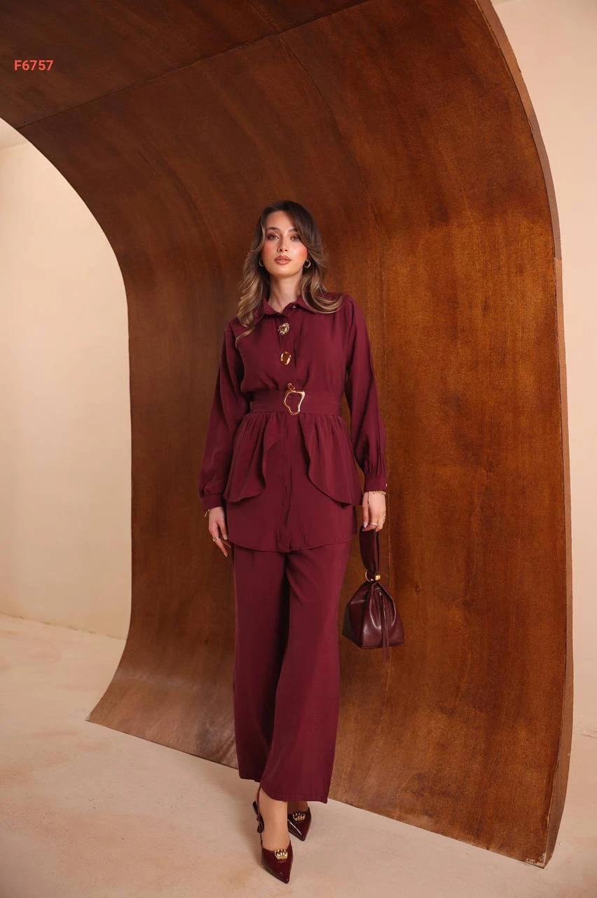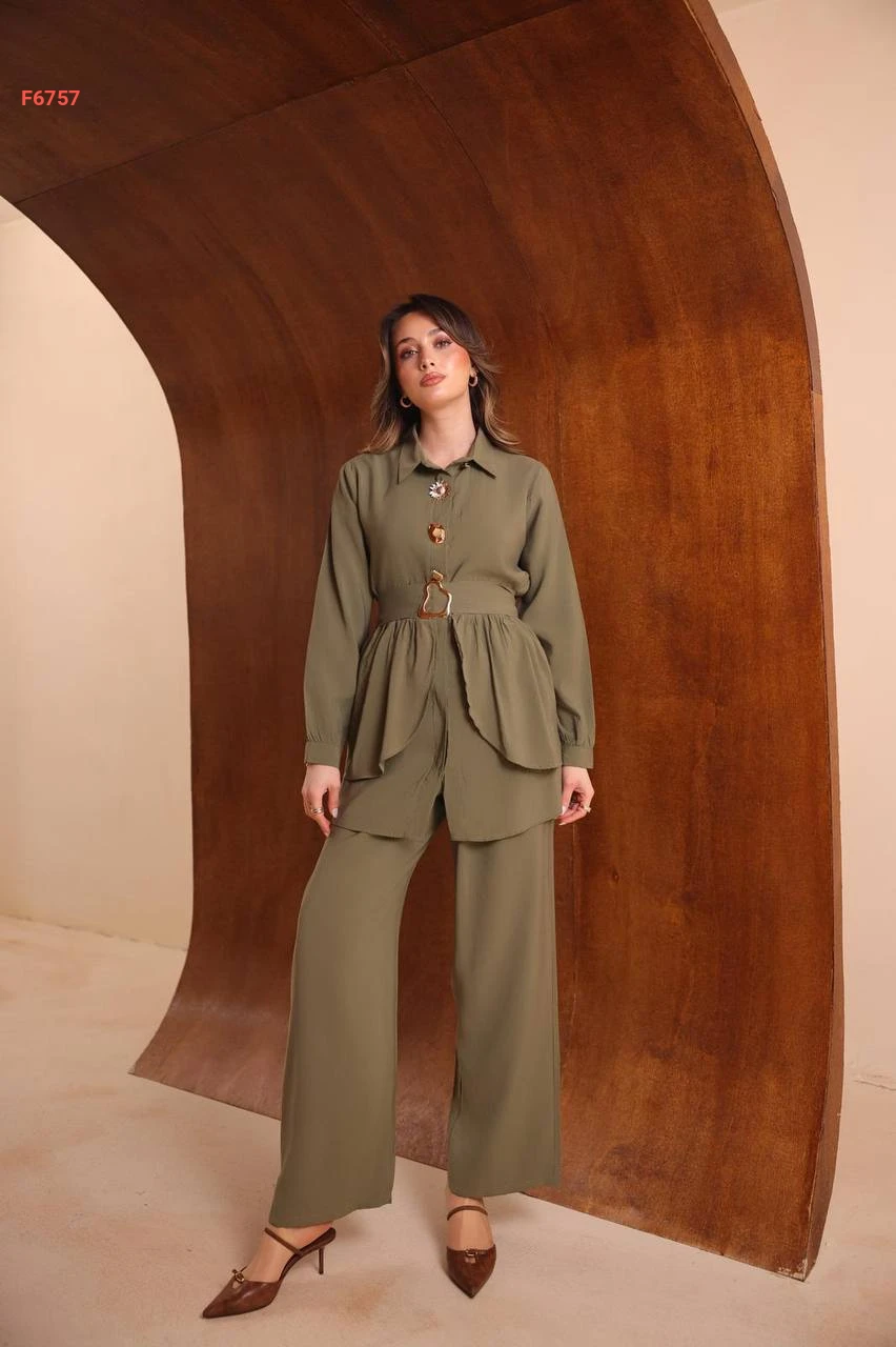 طقم بنطال وقميص باكسسوار دهبي وزنار