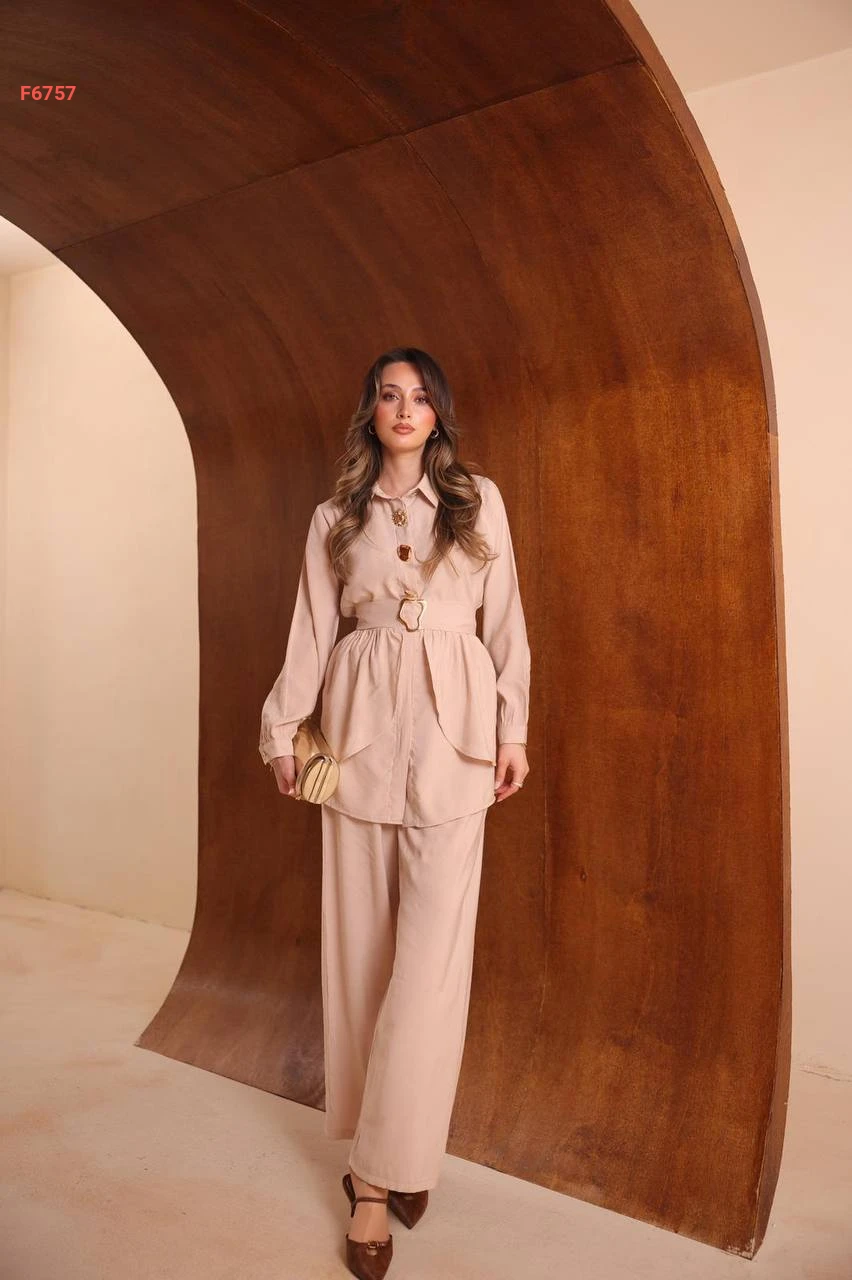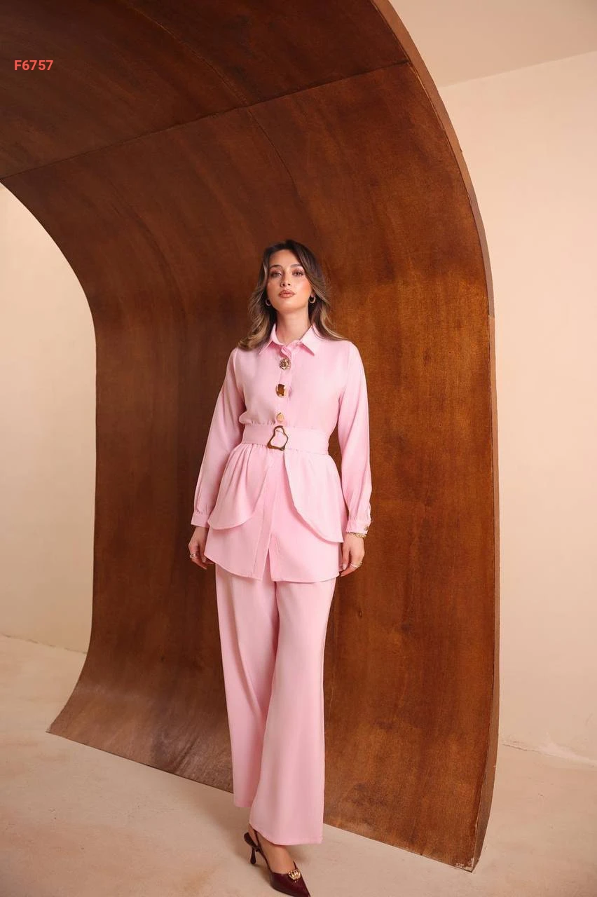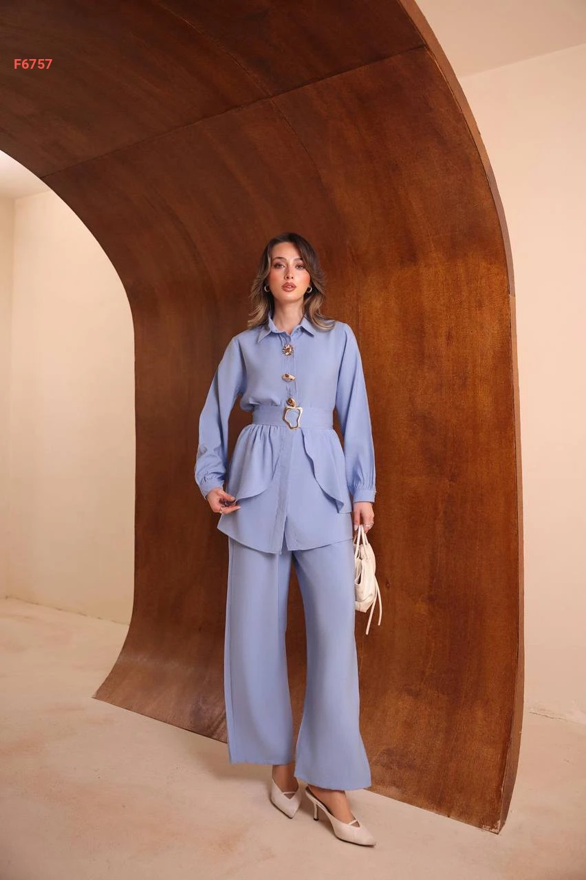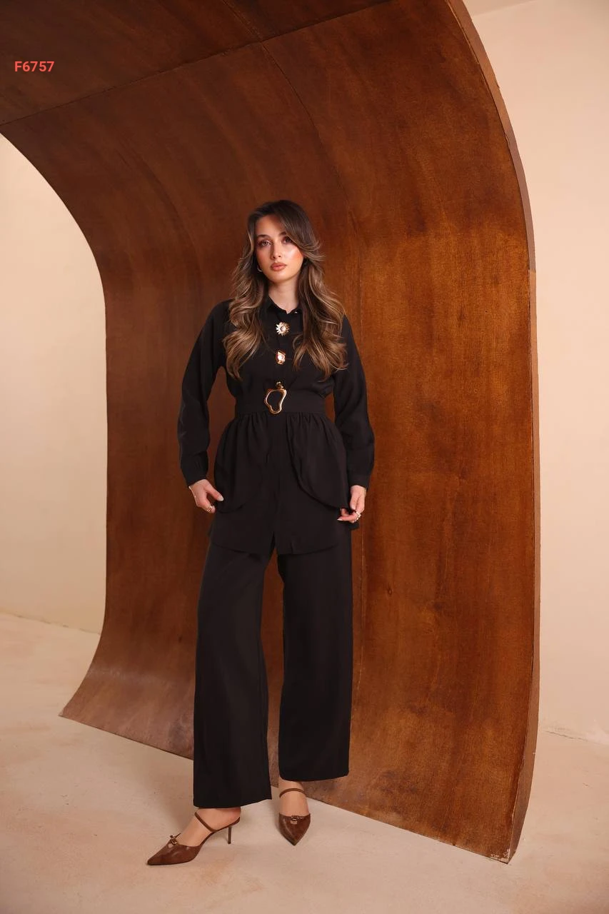 طقم بنطال وقميص باكسسوار دهبي وزنار