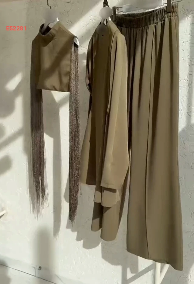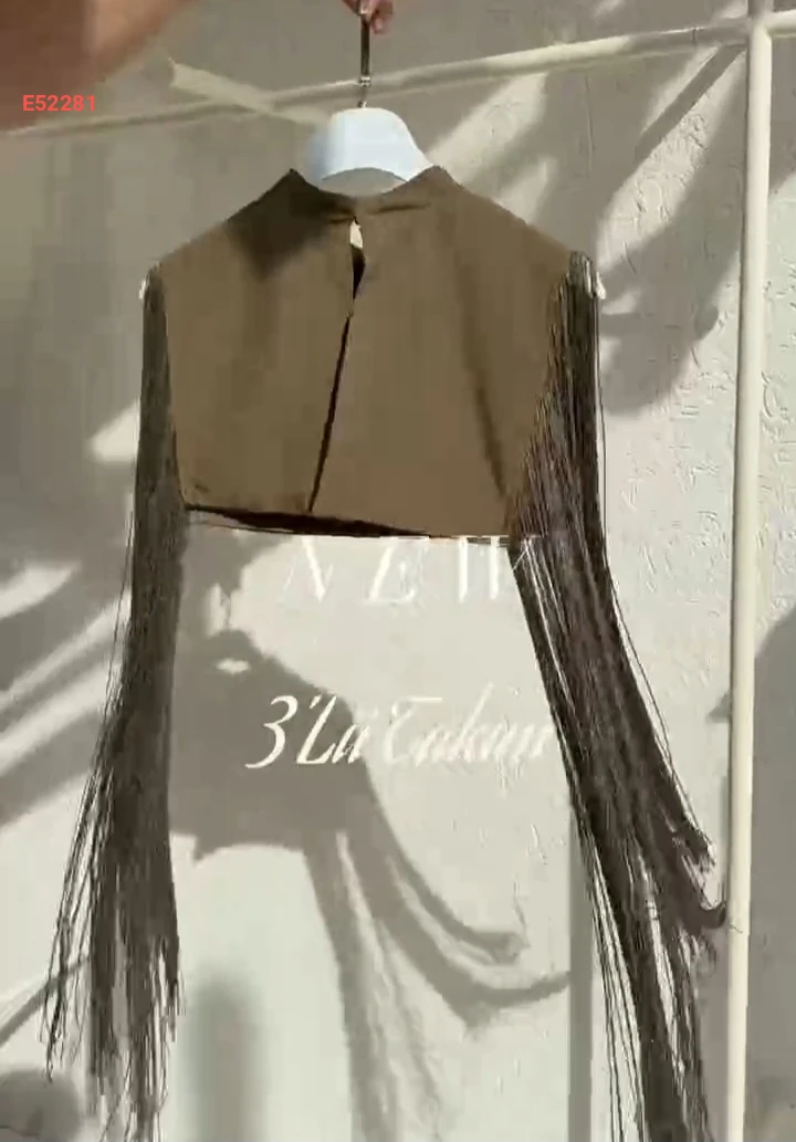 طقم بنطال وبلوزة مع يلك قصير بشراشيب