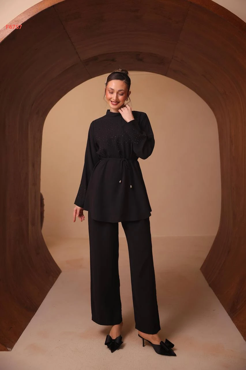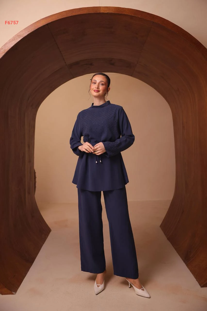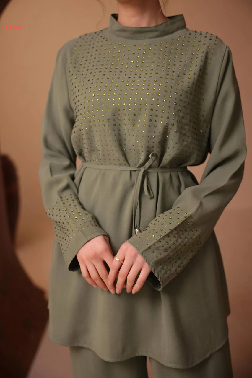 طقم بنطال وتونيك مرصع ستراس