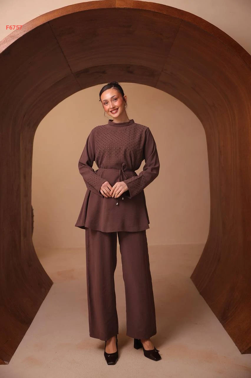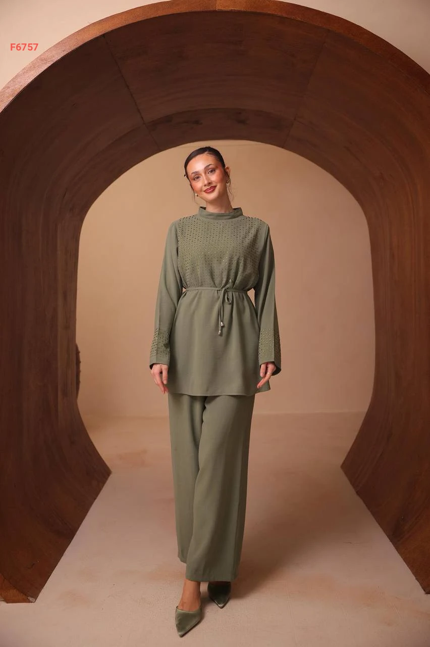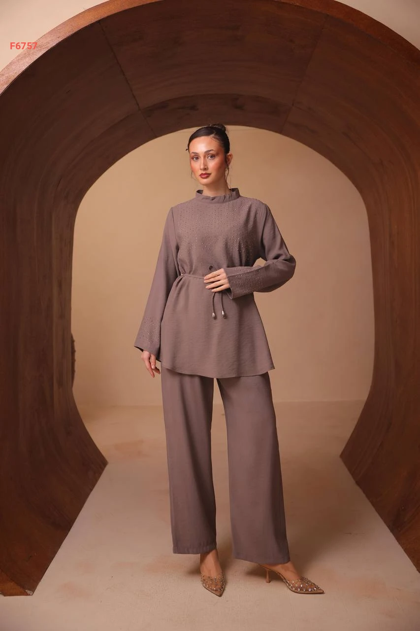 طقم بنطال وتونيك مرصع ستراس