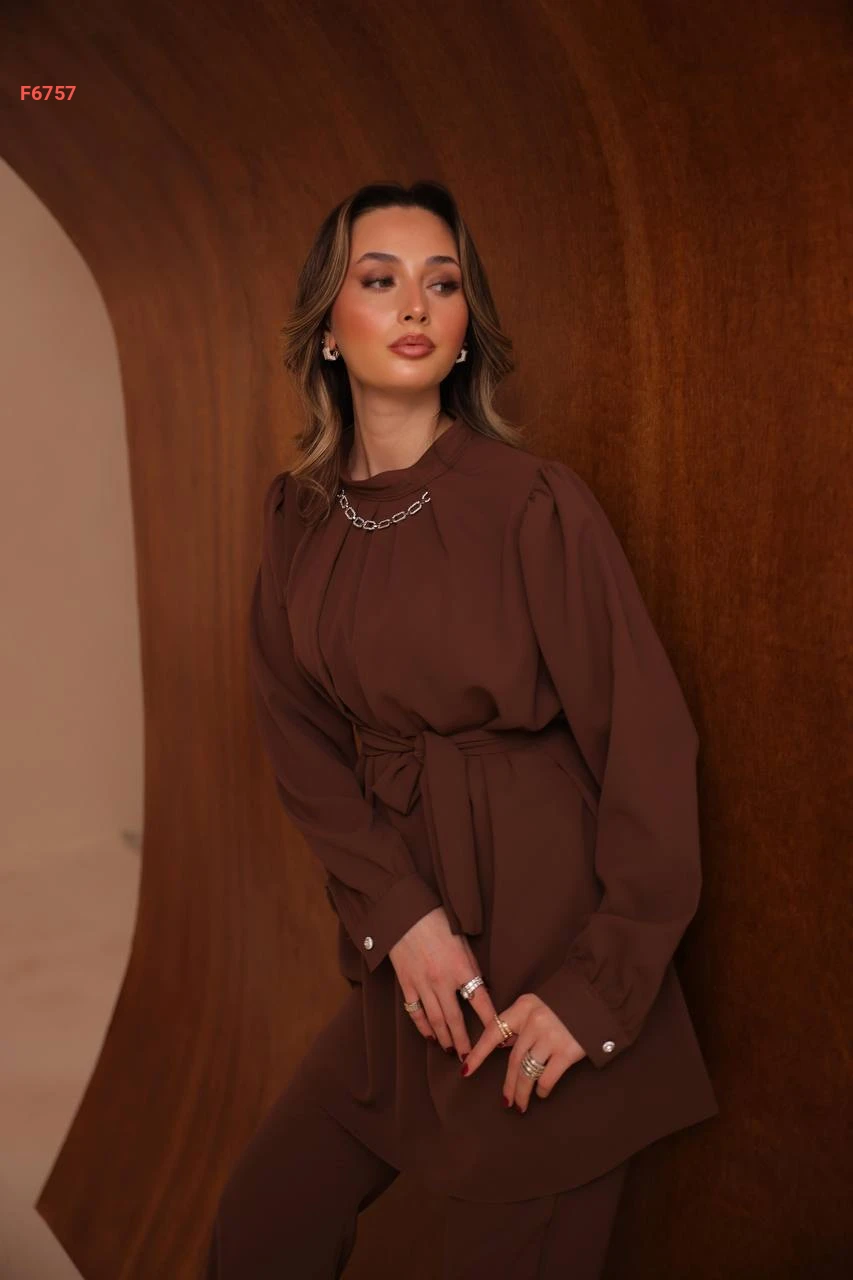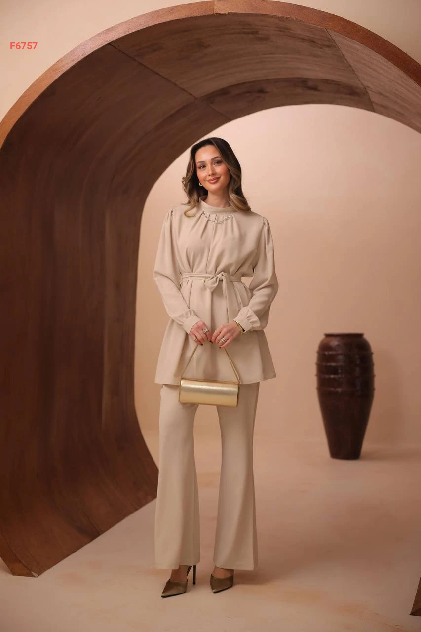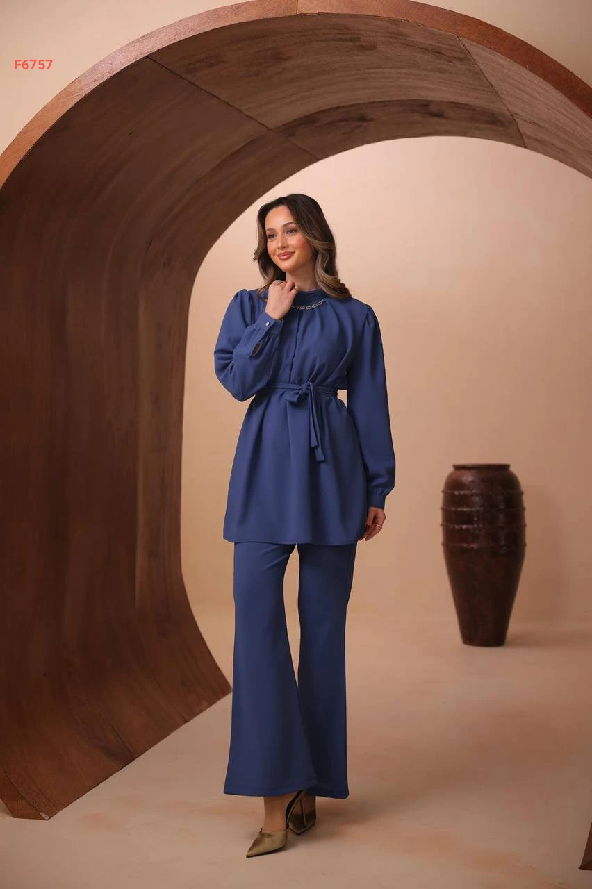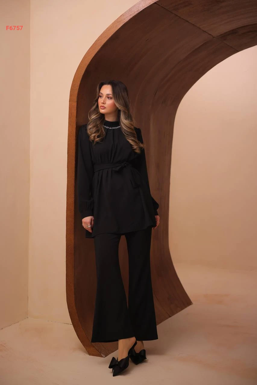 طقم بنطال وتونيك بزنار وسلسلة عالقبة
