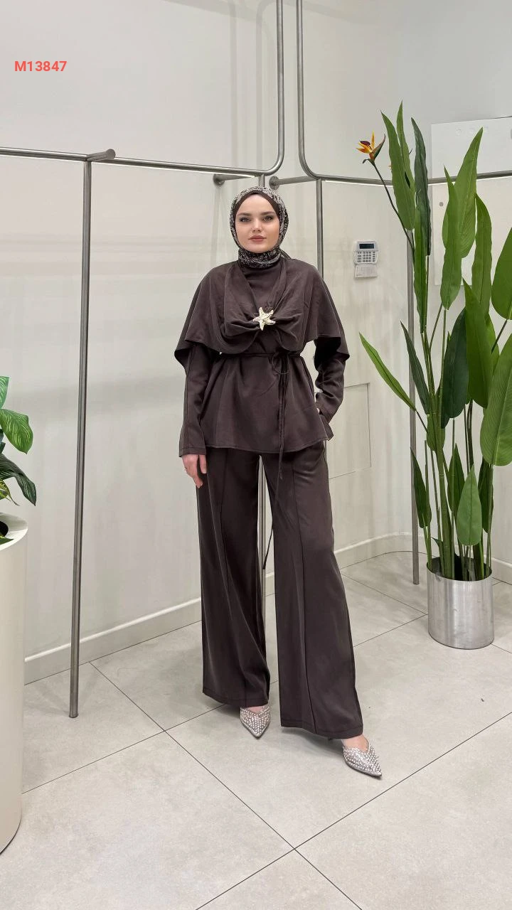 طقم بنطال وتونيك ببروش دهبي
