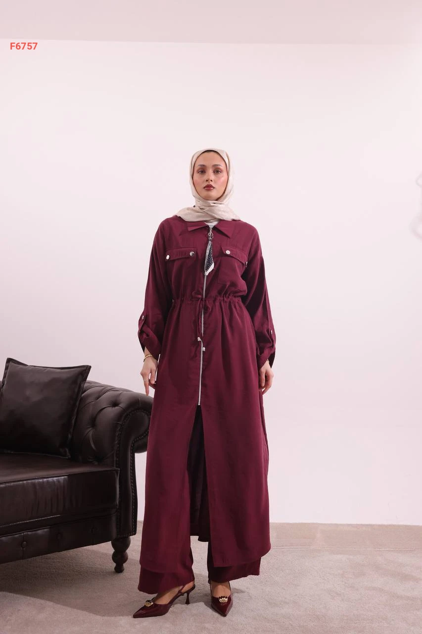 طقم بنطال وجاكيت بسحاب وفولار