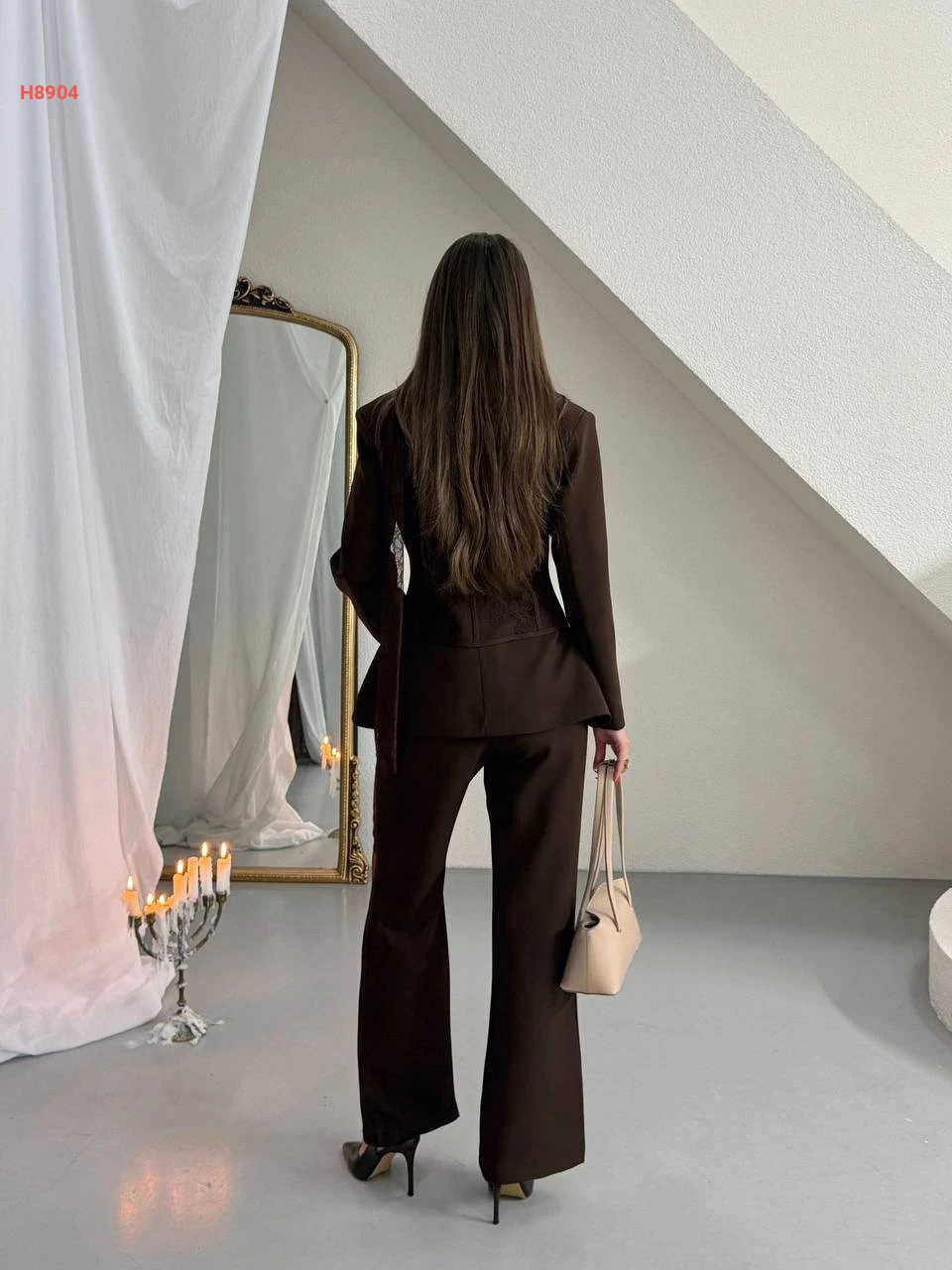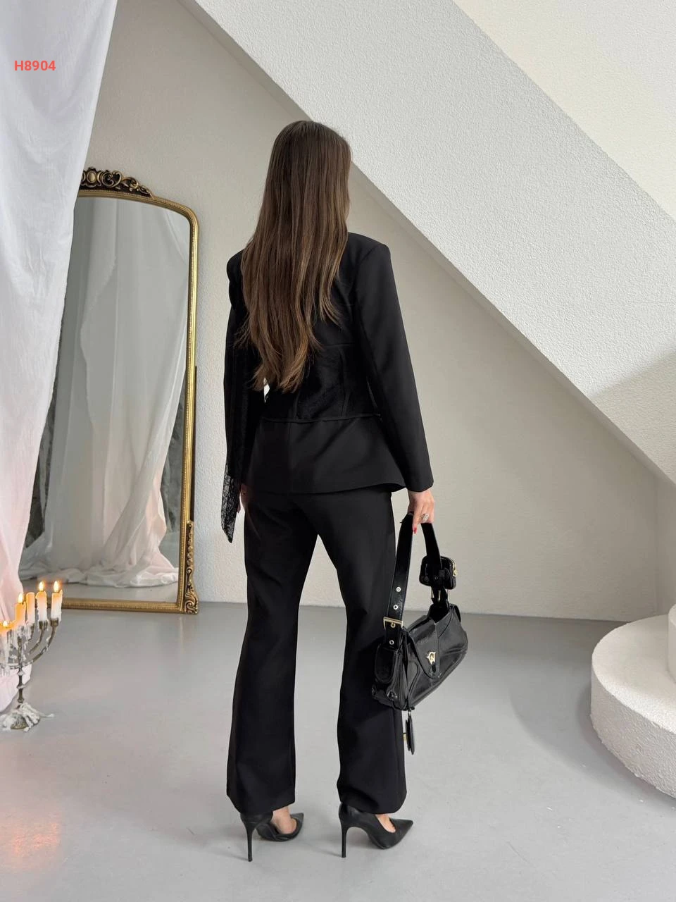 طقم بنطال مع بليزر بتفاصيل دانتيل