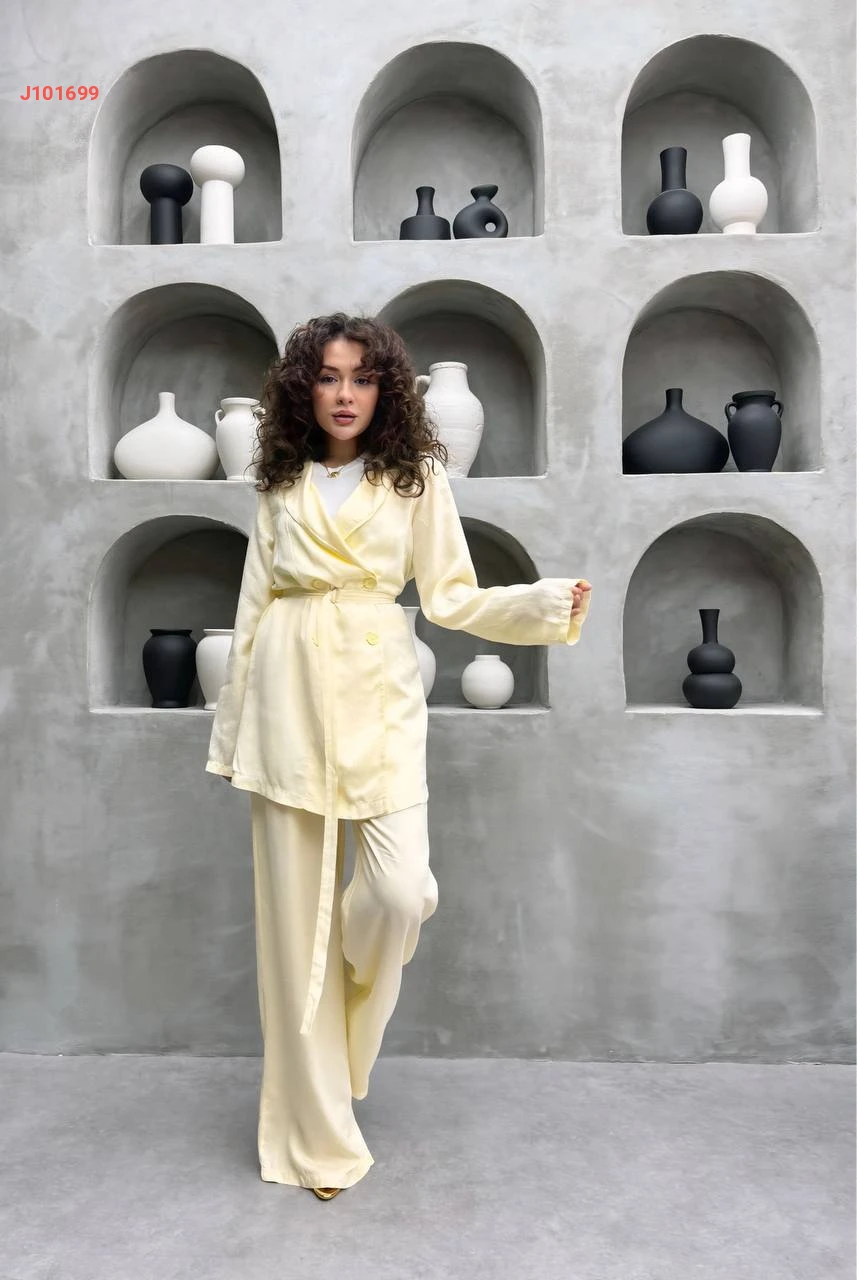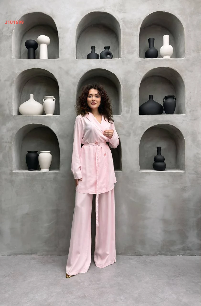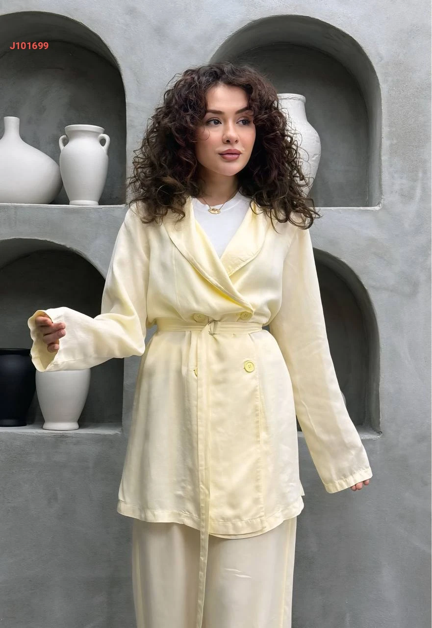 طقم بنطال تنسل وجاكيت بزنار