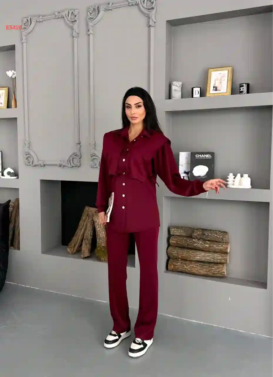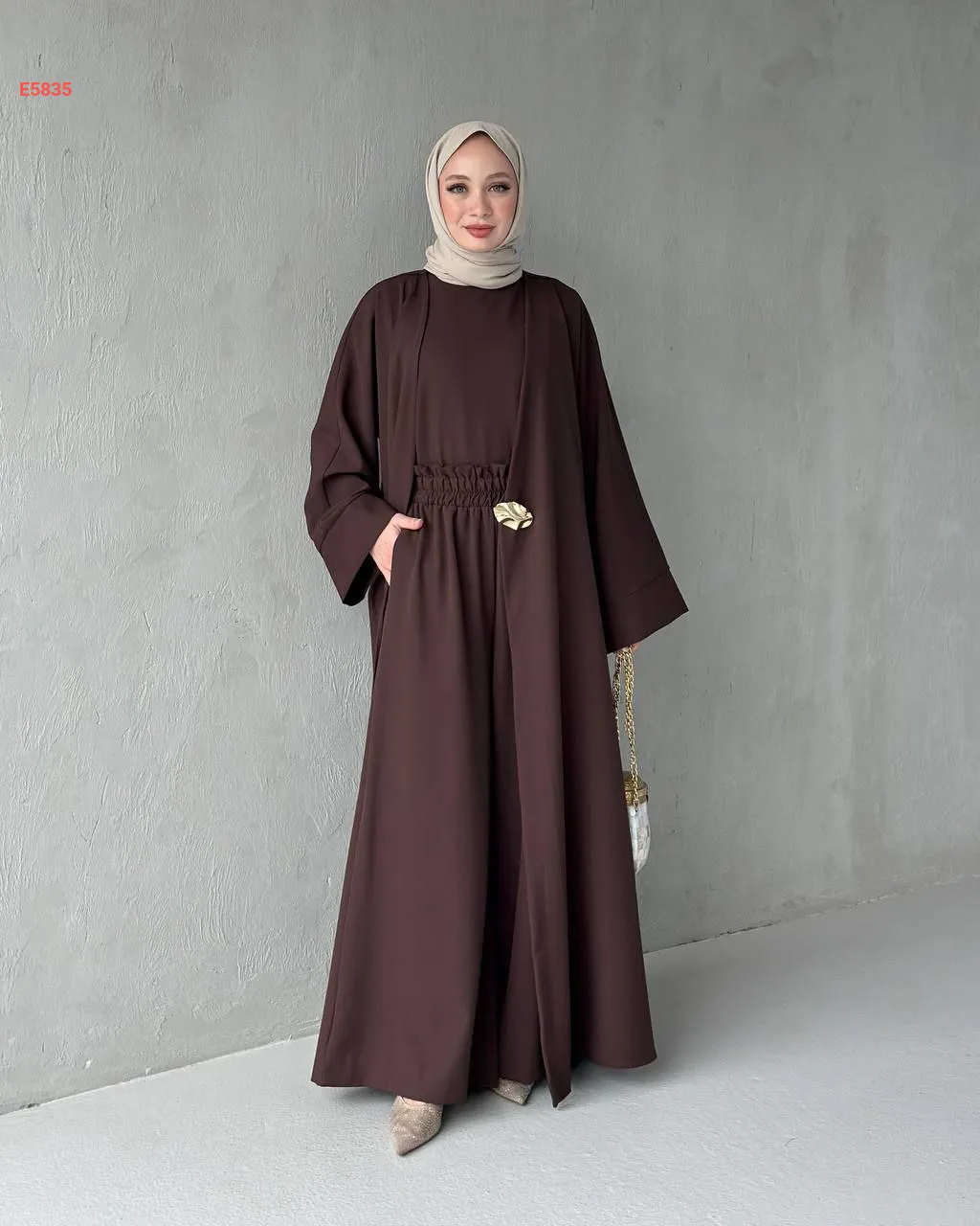 🔸52144 Üçlü Takım 🔸Seri 5 adet 🔸Bedenler/ 36,38,38,40,42 🔸Kumaş/ Dable 🔸Üst Boy/ 60 cm 🔸Pantolon Boy/ 103 cm 🔸Kimono Boy / 138 cm 🔸6 Renk
