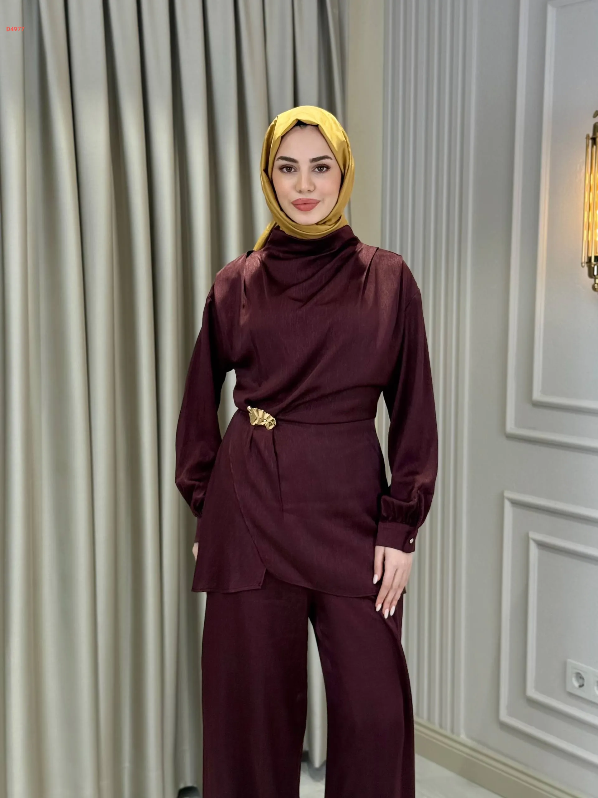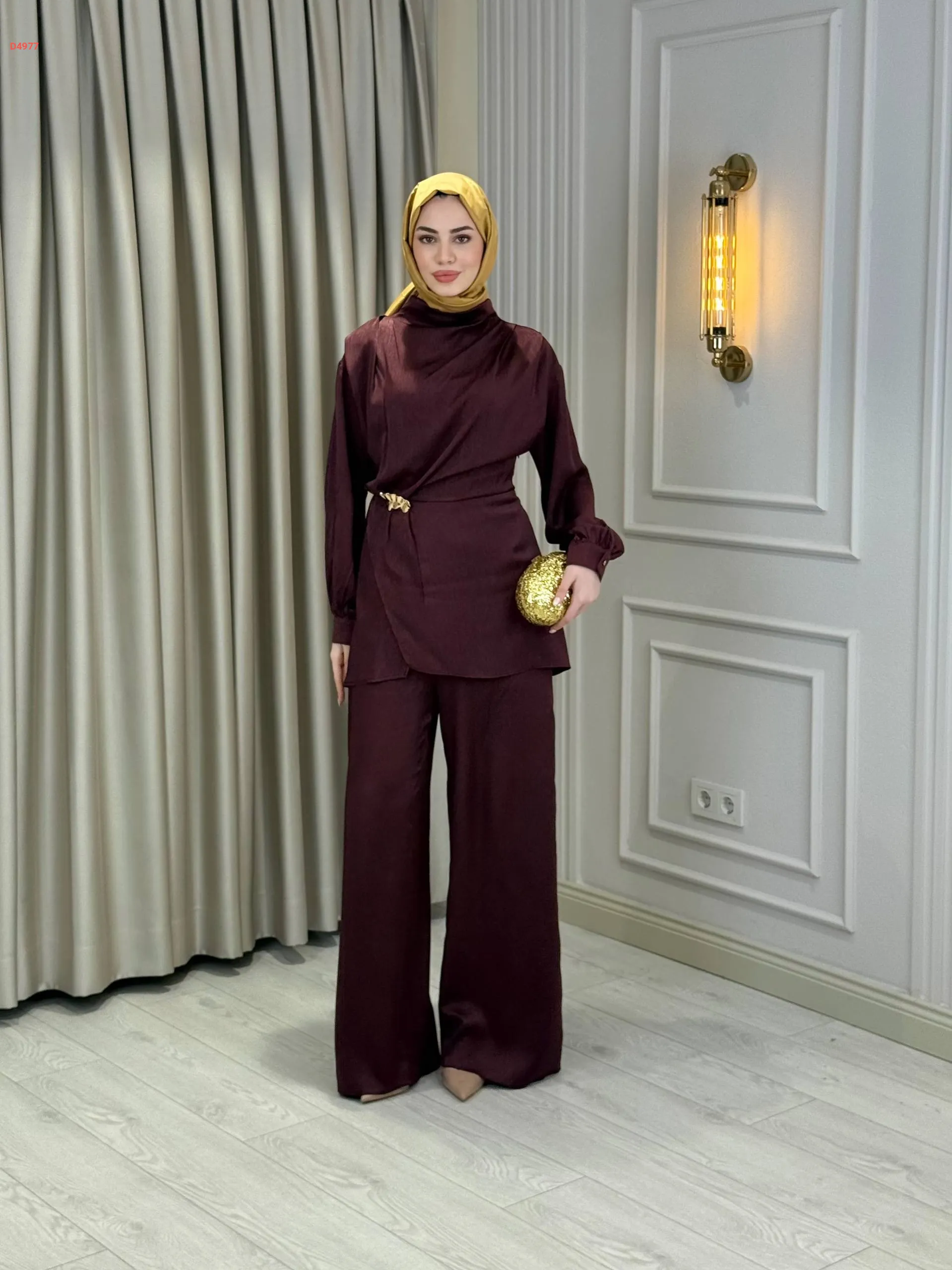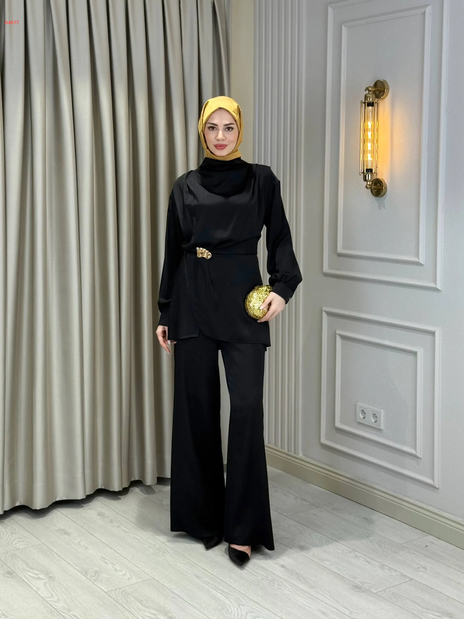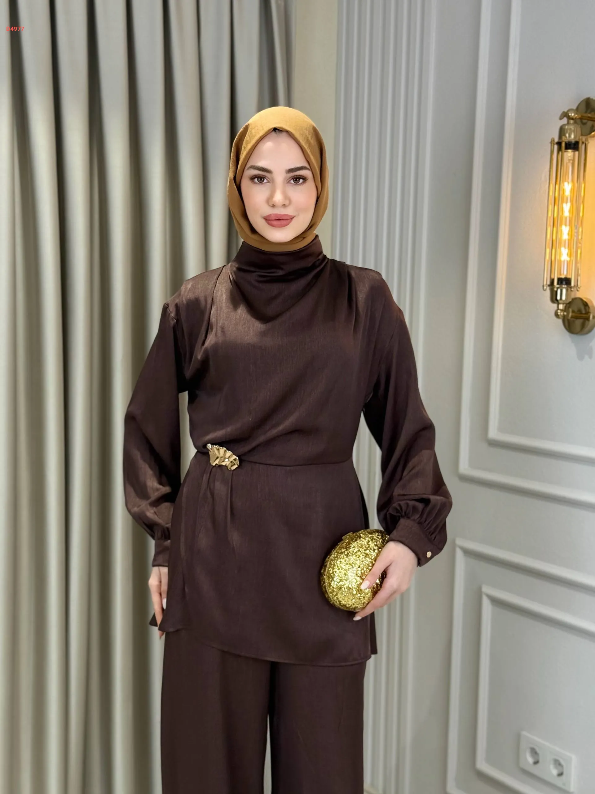طقم بنطال مع تونيك ببروش دهبي