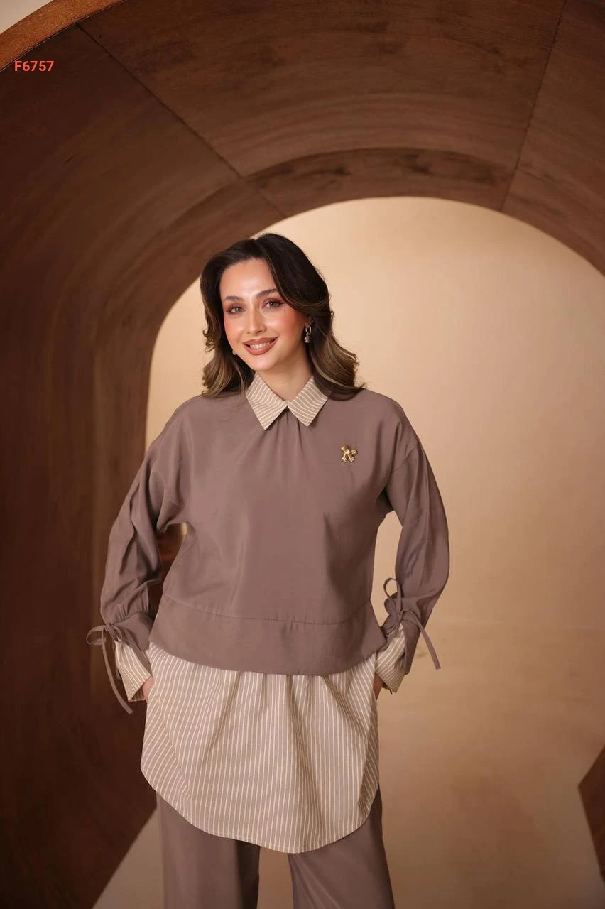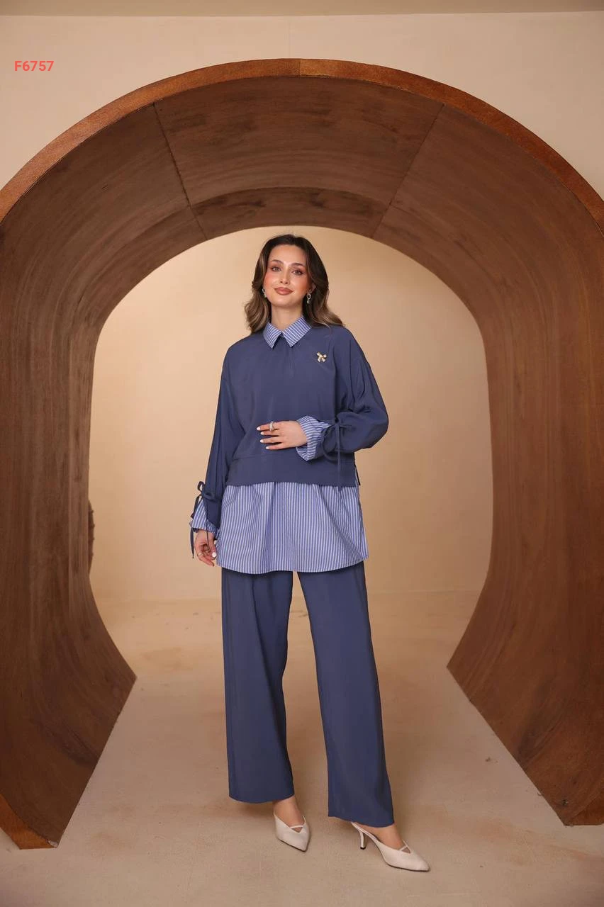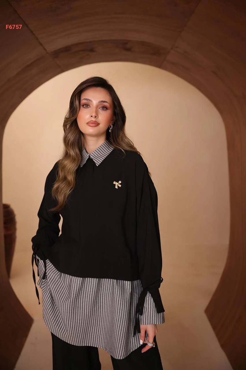 طقم بنطال مع تونيك بتفاصيل مقلمة