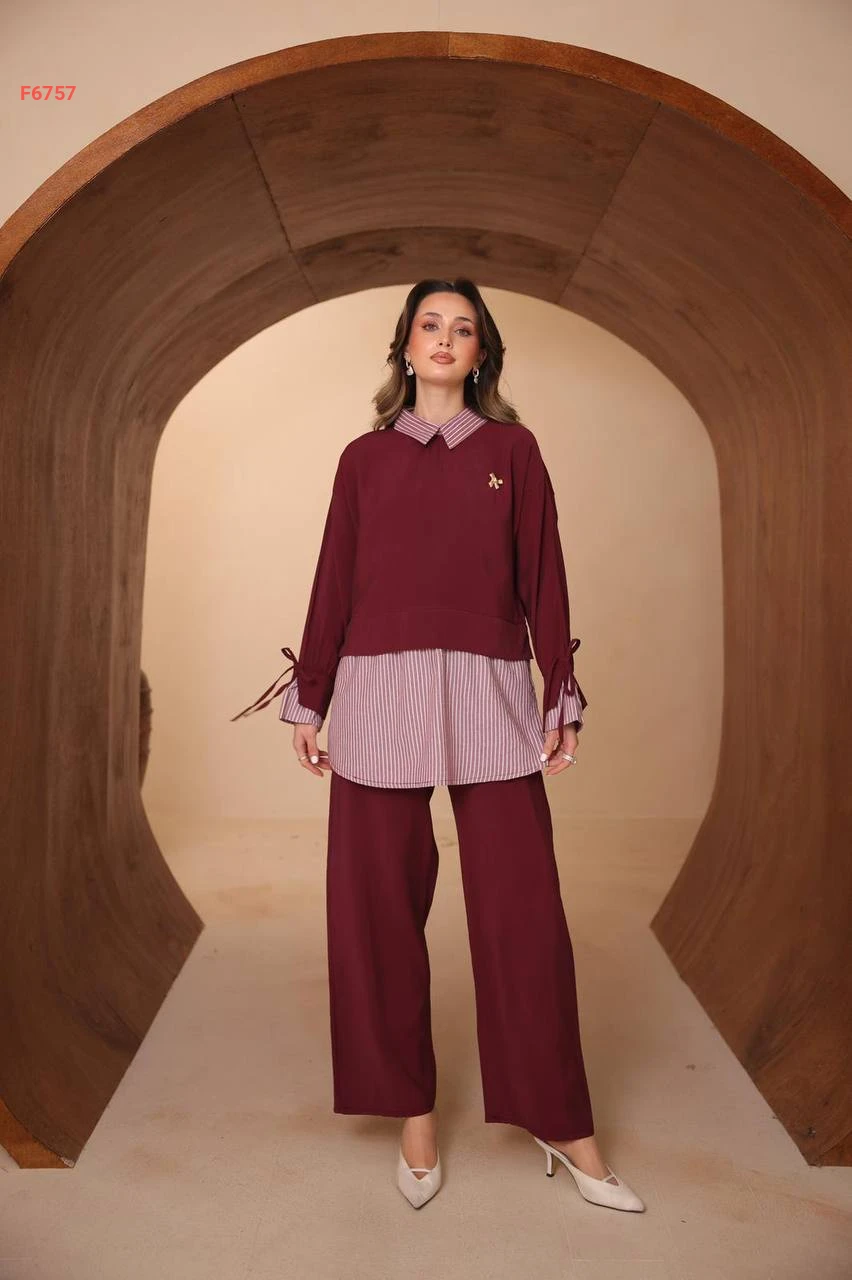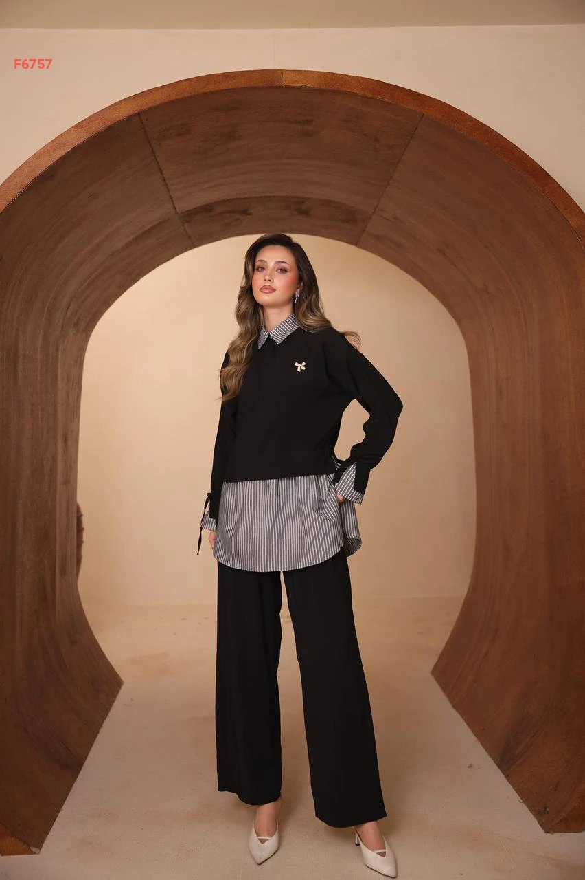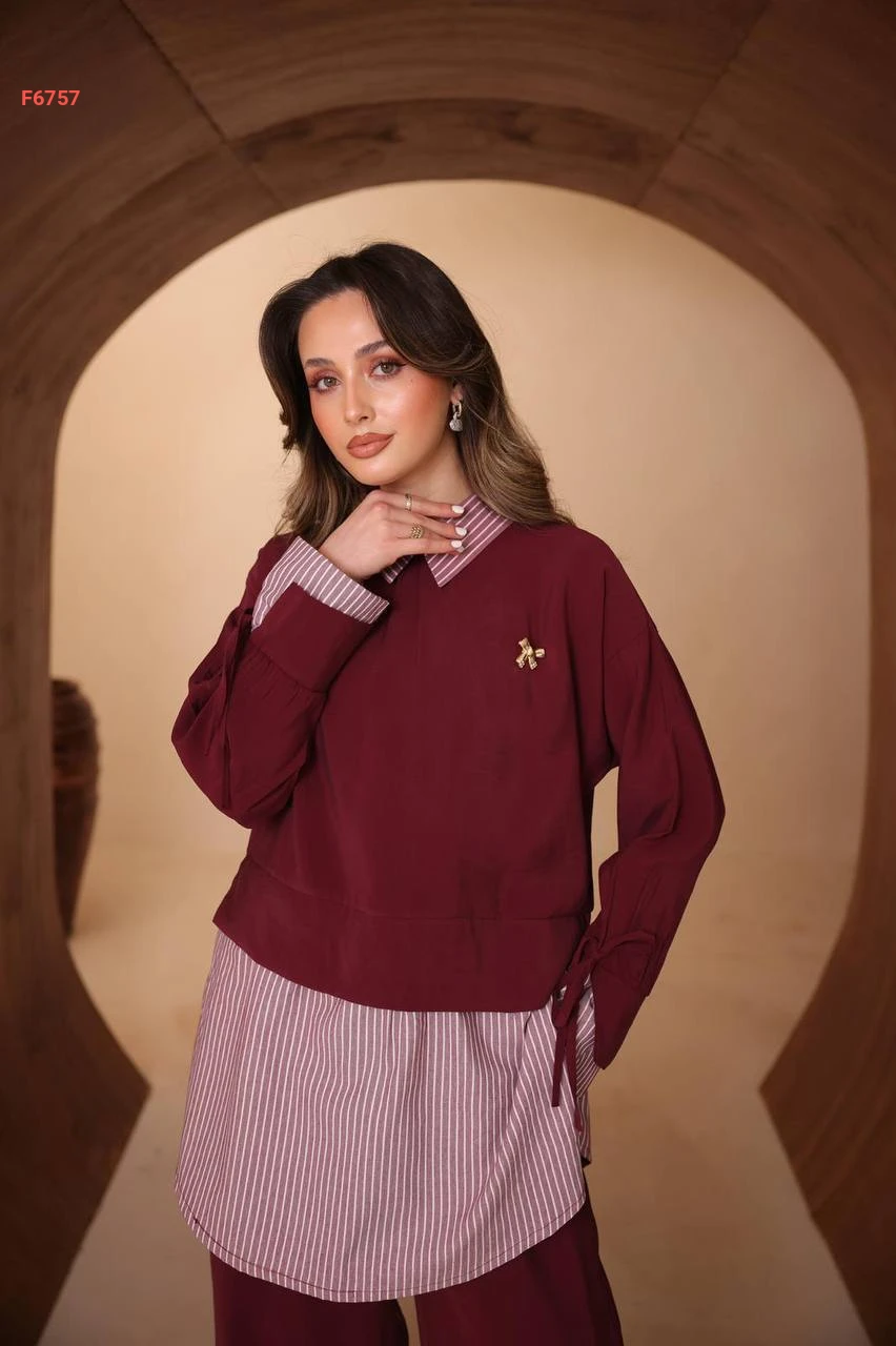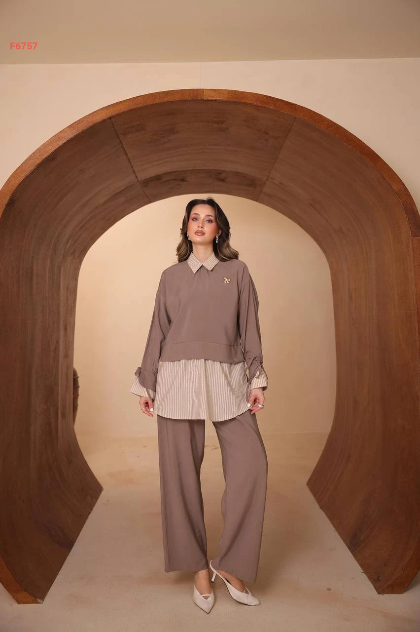 طقم بنطال مع تونيك بتفاصيل مقلمة