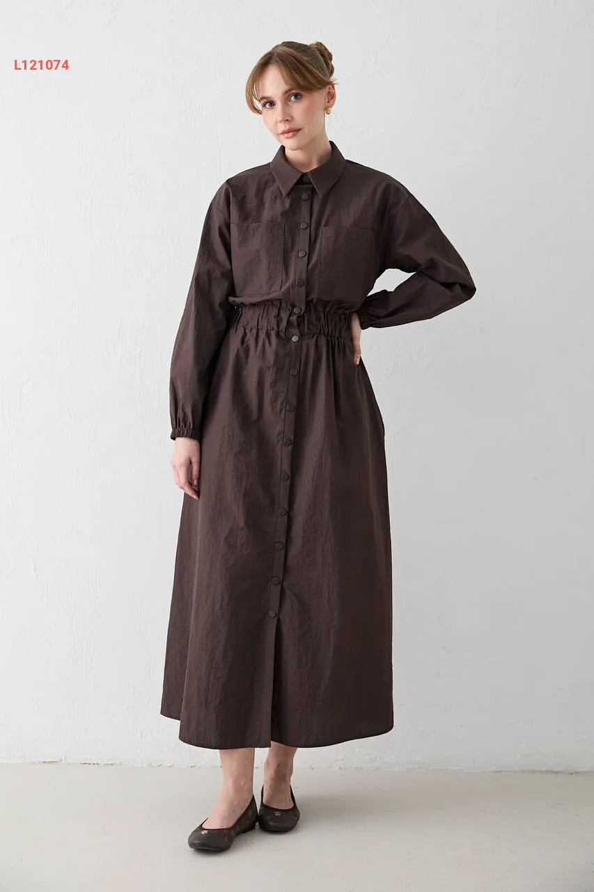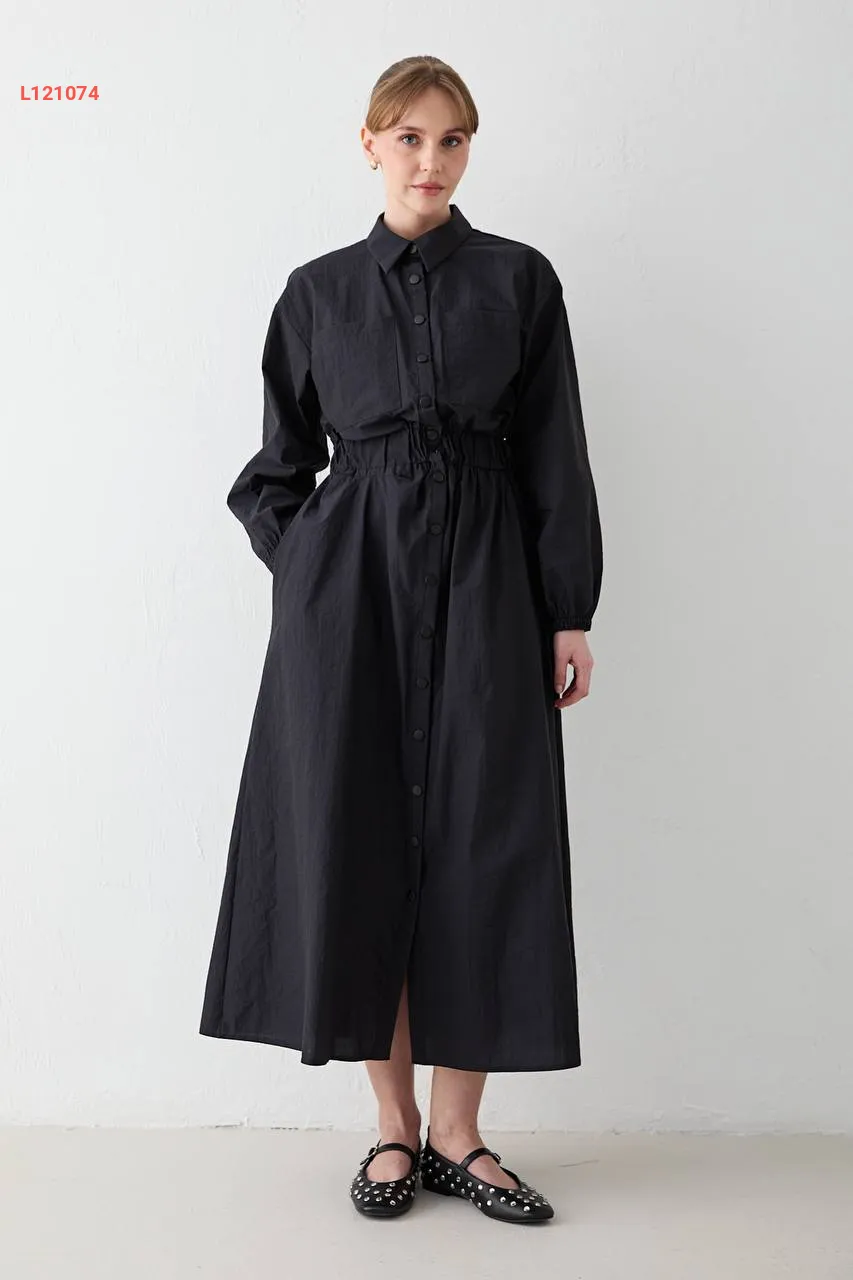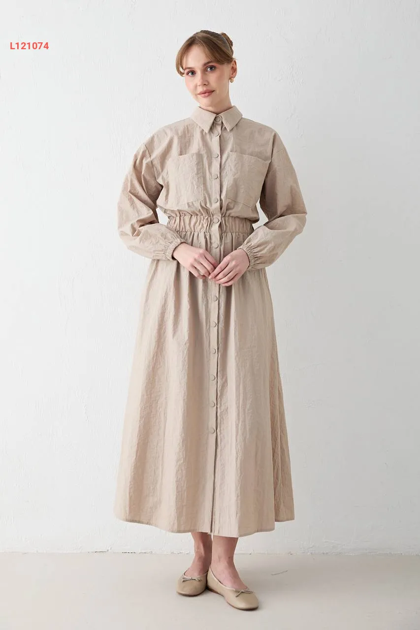 فستان باراشوت مطاط عالخصر بأزرار
